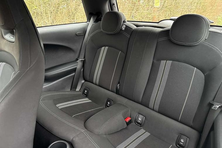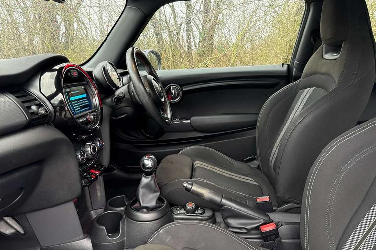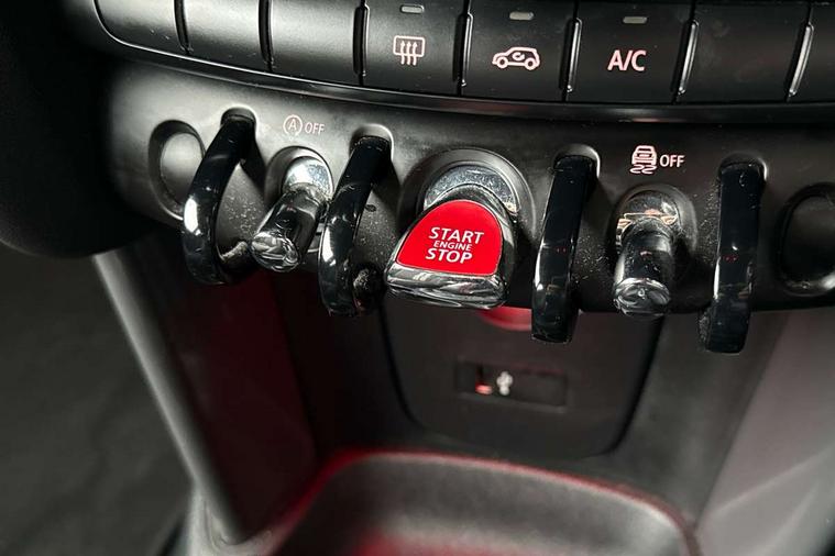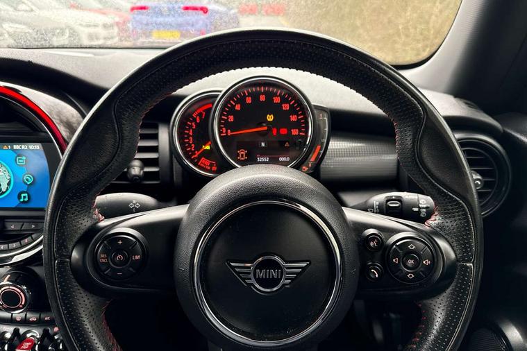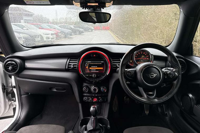 Automatic start/stop function with brake energy recuperation, Compatible mobile phone bluetooth with audio streaming, Electro-mechanical speed dependant steering assistance, Instrument cluster, Mini E-call, MINI TeleServices, On board computer, Service interval indicator, Double Vanos system, Fully variable valve control, High precision injection, Performance Control, 6.5" touchscreen with LED ring, FM tuner and DAB digital radio, Automatic headlight activation switch, Body colour fuel filler cap, Chrome border high gloss black slats radiator grille, Dynamic brake lights, Electric front+rear windows, Heated rear window, Heated windscreen washer jets, John Cooper Works - aerodynamic kit (front and rear apron, spoiler), front and rear sport bumpers and part-painted side sills with door sill finishers, John Cooper Works rear spoiler, LED headlight with closed ring and daytime driving lights, Left exhaust tailpipe with chrome finisher, Metal door sill strips with MINI imprint, Model logo Cooper on right of tailgate, Rain sensor window wipers, Rear fog lights, Rear LED lights with union jack design, Rear window wiper, Side scuttle panel with integrated indicator, Sun/heat protection glass, White indicator lenses, 12V Accessory socket in centre console, 4 lashing eyes in luggage compartment, 60/40 split folding rear seat, Anthracite headlining, Chrome interior highlights, Cupholders, Front and rear head restraints, Front and rear isofix with front passenger airbag deactivation, Glove compartment, Height and length steering column adjustment, Interior lighting with 12 basic colours selectable via toggle switch in roof, John Cooper Works leather steering wheel with contrasting stitching in Chilli Red with John Cooper Works logo, John Cooper Works Logo in seat, Leather gearshift lever and handbrake gaiters, LED reading lights, vanity mirror lights, front foot well light and spotlight on front seats, Manual air conditioning, Mechanical seat adjustment, driver seat height adjust, forward/back and front seats backrest, Mini logo projection on floor from drivers exterior mirror, Multifunction steering wheel, Storage compartments in doors, Sunvisors with vanity mirrors, 3 point seatbelts on all four seats, 6 Airbags - front, side, head and seat belt tensioners, Anti-lock braking system (ABS), DSC - Dynamic Stability Control, Front and rear disc brakes, Hill start assist, Single tone fanfare horn, Tyre pressure monitoring system, Alarm system with tilt sensor, monitoring doors, bonnet interior and tailgate, Electronic vehicle immobiliser, Start/stop toggle with keyless go, Tool kit,