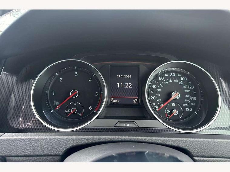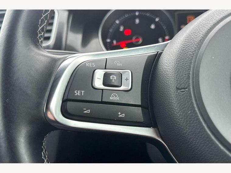 'Lights On' Reminder warning buzzer, ACC - Adaptive cruise control with front assist, forward collision warning, distance monitoring, city emergency brake and speed limiter, Bluetooth Telephone preparation, Brake pad wear indicator warning light, Driver alert system, Driver profile selection, Exterior temperature gauge, Flat tyre indicator, Instrument cluster in white, Low fuel level warning light, Multi function display colour screen, Multifunction computer, Oil level gauge, Progressive power assisted steering, Rev counter, Trip and service interval display, Ultrasonic front and rear optical and audible parking sensors, Warning buzzer and light for front seatbelts unfastened, Diesel particulate filter, Lowered sports suspension, XDS plus electronic differential lock, CD/MP3/WMA, USB and SD card reader, aux-in, Composition media system, DAB Digital radio, MDI with USB/iPod connection cables, Auto dimming rear view mirror, Automatic coming/leaving home lighting function, Automatic headlights, Bi-xenon headlights/wash + dynamic cornering lights + LED daytime running lights, Body colour bumpers, Body colour door handles, Body colour door mirrors with integral indicators, Cherry red rear light cluster, Chrome trimmed front air intake surrounds, Chrome trimmed radiator grille louvre inserts, Dusk sensor + auto driving lights, Electric folding door mirrors with puddle lamps, Electric front windows, Electric rear windows, Electrically adjustable and heated door mirrors, Flared body colour side sills, Heated rear windscreen, Honeycomb radiator grille - black, LED front fog lights, LED rear lights, Rain sensor, Range adjustable headlights, Rear diffuser, Rear roof spoiler, Rear windscreen washer and wiper with interval delay, Reverse activated kerb-view adjustment on passenger's door mirror, Twin chrome exhaust tailpipes, Windscreen wipers/ intermittent wipe + 4 position delay, 12V socket in luggage compartment, 3 rear headrests, 3 spoke steering wheel, 60/40 split folding rear seat, Adjustable dashboard illumination, Air conditioning - 2 zone electronic climate control, Ambient lighting, Bag hook in luggage compartment, Black headlining, Boot lashing points, Chrome-plated electric mirror adjustment switch surround, Chrome-plated electric window button surround, Courtesy light delay, Cover for storage compartment in centre, Driver/front passenger seat height adjustment, Dust/pollen filter, Front + rear carpet mats, Front centre armrest with storage box and rear air vents, Front footwell illumination, Front seat back storage pockets, Gearshift paddles, Grab handles, Height/reach adjust steering wheel, Illuminated door sills, Illuminated vanity mirrors, Isofix preparation for 2 rear child seats, LED reading lights, Load through provision with rear centre armrest and cupholders x2, Lockable, illuminated, cooled glovebox, Luggage compartment cover, Luggage compartment lighting, Multifunction leather steering wheel with leather gear knob/handbrake grip, Stainless steel pedals, Storage box in luggage compartment, Storage compartments in doors, Variable boot floor, height adjustable and removable, White adjustable panel illumination, Winter pack - Golf, 3 point height adj front seatbelts + pretensioners, 3 rear 3 point seatbelts, ABS, Automatic post collision braking, Child locks on rear doors, Door open warning reflectors, Driver/Front Passenger airbags, Driver/Passenger whiplash optimised head restraints, Drivers knee airbag, Electronic parking brake with auto hold, Electronic tyre pressure monitoring, ESP with EDL + ASR, Front and rear curtain airbags, Front passenger airbag deactivation, Front side airbags, Fuel cut off safety device, Hydraulic Brake Assist (HBA), Pre crash system, Warning triangle and first aid kit holder, Alarm with interior protection, Anti-theft wheel bolts, Electronic engine immobiliser, Keyless entry, Keyless start, Remote central locking with 2 remote folding keys, Chrome air vent surrounds, Chrome-plated light switch surround, Cyclone decorative inserts, Gloss black decorative inserts in centre console, Steel space saver spare wheel,