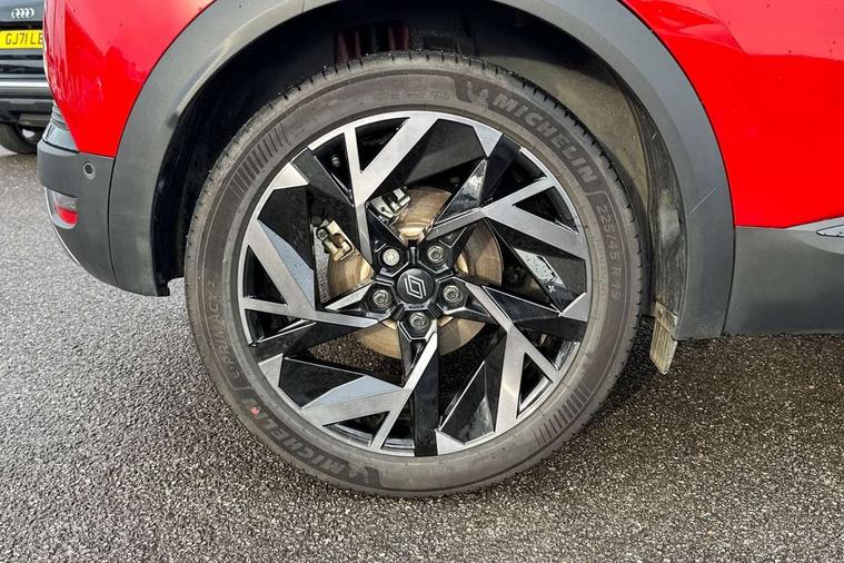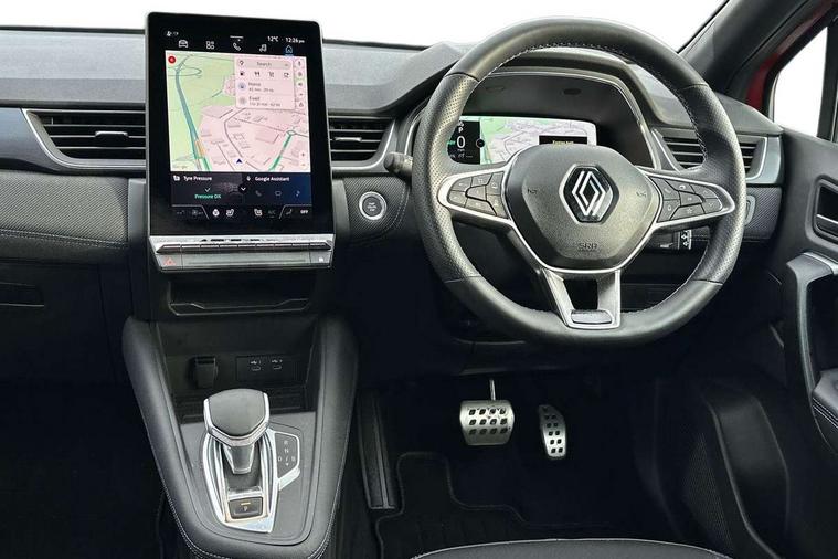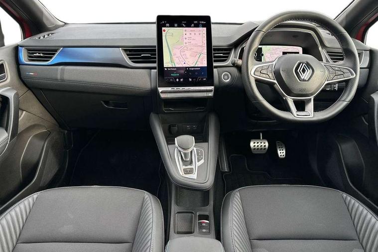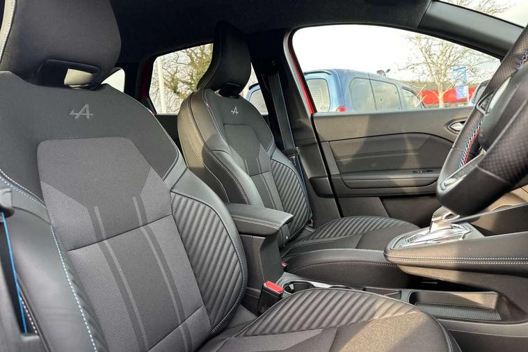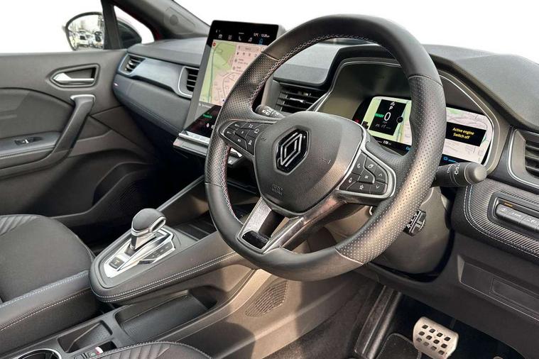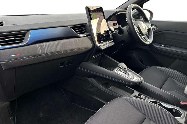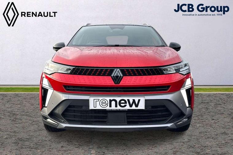 10.25" digital driver display, 10.4" OpenR link touchscreen with with built in Google Automotive Services and navigation, 2 front USB-C ports, 2 rear USB-C ports, Adaptive cruise control with speed limiter, Driver attention alert system, Driver drowsiness alert system, Eco mode, Emergency lane keep assist including solid line, oncoming traffic and road edge detection, Front and rear parking distance sensors, Gear change indicator, Lane departure warning system, Multisense with 3 driving modes + 8 ambient lighting colours, Rear view camera, Renault automatic emergency assist, Side parking sensors, Traffic sign recognition with over speed prevention, Trip computer, Variable assistance power steering, Wifi smartphone integration compatible with Apple CarPlay and Android Auto, Wireless phone charger, DAB radio with Bluetooth, Auto dimming rear view mirror with light and rain sensor - frameless, Automatic front wipers with rain sensors, Automatic headlights, Automatic high/low beam, Body colour door handles, Body coloured bumpers, Body coloured door mirrors, Chrome around front air deflectors, on front wing deco element and window lining, Dark tinted glass in rear windows and tailgate, Day time running light, Diamond black contrasting roof, Drivers one touch window with anti-pinch feature, Electrically folding door mirrors, Front and rear electric windows, Full LED front and rear lights, Gloss black window frame, Heated door mirrors, Heated rear windscreen, LED high level brake lights, LED turn indicators on door mirrors, Longitudinal roof bars, Rear fog lights, Rear side wing doors, Rear wiper, Shark fin antenna, 12V Accessory socket, 2 front roof LED lights and central rear roof light with 3 reading LED lights, 3 bench rear seats in 2nd row, Aluminium sports pedals, Automatic climate control with one touch demist function and air quality regulator, Driver and front passenger seat with electric height adjustment, esprit Alpine enveloping synthetic leather/cloth upholstery, Esprit alpine interior styling, Flying console for auto transmission, Front head restraints, Glovebox, Heated front seats, Heated steering wheel, Heating system with pollen filter, Height/reach adjust steering wheel, ISOFIX child seat fixing points on rear outermost seats, Middle console with armrest and storage, Modular boot floor, Rear air vents, Rear head restraints, Rear seats - 1/3:2/3 foldable sliding bench, Single front passenger seat, Sunvisor with mirror and light, Synthetic leather steering wheel, 3 rear seatbelts, ABS+EBA, AEBS - active emergency braking system, Approaching vehicle sound for pedestrians, Distance warning alert, Driver and front passenger and 3 rear passengers seatbelt reminder, Driver and front passenger, side, head and curtain airbags, Driver height adjustable seat belt, Electric parking brake with auto hold function, Electronic stability control, Front dash warning indicator in case of heavy braking, Front driver and passenger side airbag deactivation, Hill start assist, Manual passenger airbag deactivation function, Rear door and window child locking function for rear door, Tyre pressure warning light, Anti drill door locks and locking fuel cap, Central door locking, Deadlocking system, Hands free keycard with push button and start/stop function, RAID (Renault Anti-Intruder Device) automatic door locking, Black soft touch dashboard, 19" esprit Alpine Elixir alloy wheels,