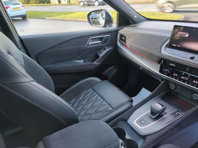 2 front USB-C ports, 2 rear USB-C ports, 360 degree Intelligent around view monitor with moving object detection, Advanced windscreen head up display, Blind spot intervention, Blind spot warning, Drive assist custom mode, Drive modes (sport, normal, eco), Driver drowsiness and attention warning, Electric speed sensitive power steering, Emergency and breakdown call, Emergency lane keep assist, Emergency Stop Signal (ESS), Engine start/stop button, Event data recorder, Front and rear parking sensors, Full Digital 12.3" TFT Digital Combimeter, Google virtual personal assistance, Hands free power tailgate, Idle stop/start system, In-car WIFI hotspot, Intelligent Cruise control (ICC), Intelligent forward collision warning, Intelligent speed assist, Lane departure warning system, Nissan connect 12.3 inch touchscreen infotainment system, Nissan connect navigation with google maps, Nissan connect services 2.0 (Google Automotive System), Outside temperature sensor, Rear cross traffic alert, Reversing detection, Traffic jam pilot, Wireless Apple CarPlay/Android Auto, Wireless charging pad, Limited slip differential, Multi link suspension, 10 Bose speakers - 2 tweeters, 6 high and medium frequency door speakers and 2 in subwoofer, AM/FM audio system with DAB, Bluetooth audio streaming, Bose acoustimass bass box, Auto dimming frameless rear view mirror, Auto rear wiper when reversing, Body colour mirror caps, Body coloured bumpers, Body coloured door handles, Bodyside mouldings, Chrome side window finisher, Electric auto folding door mirrors, Electrically adjustable and heated door mirrors with LED turn indicator, Follow me home headlights, Glossy black bumper inserts and fenders, High beam assist, Intelligent auto headlights, LED 3rd brake light, LED daytime running lights, LED headlights with adaptive driving beam, LED rear lights, LED sequential turn lights, One touch front and rear electric windows with remote opening and closing, One touch passenger window, Rear privacy glass, Rear roof spoiler, Rear side wing doors, Rear styling plate, Reverse tilting door mirrors, Shark fin antenna, Silver roof rails, Splash free rain sensing wipers, Super RED rear LED lights, Super UV and infrared cut glass, Thermaclear heated windscreen, 3 bench rear seats in 2nd row, 3 rear headrests, 60/40 split folding rear seat bench, Chrome interior door handles, Dark headlining, Driver seat back pocket, Dual zone automatic climate control with pollen filter, Fixed Glass roof with electric sunshade, Front door with bottle holders, Heated front seats, Heated steering wheel, Height adjustable front headrests, Luggage board system, Luggage space lighting, Multifunction steering wheel, Passenger seat back pocket, Quilted premium leather upholstery, Rear door bottle holders, RGB ambient light (Full area coverage), Single front passenger seat, Smooth leather steering wheel, Steering wheel gearshift paddles, Tilt/telescopic adjustable steering wheel, Two rear isofix child seat anchorage points with top tether, 3x3 point rear seatbelt pretensioners + load limiters, Autonomous emergency braking, Child locks on rear doors, Curtain and front side, far side airbags, Driver and passenger airbags, Driver, passenger and 2nd row rear seat belt reminder, Electric handbrake with auto hold function, Front seatbelt pretensioners + load limiters, Height adjustable front seatbelts, Hill start assist, intelligent front emergency braking, Rear automatic braking, Tyre pressure monitoring system, Vehicle dynamic control, Engine immobiliser, Intelligent key with walk away lock and approach unlock functions, Remote central door locking with deadlocking, Thatcham alarm, 20" Diamond cut alloy wheels, Tyre puncture repair kit,