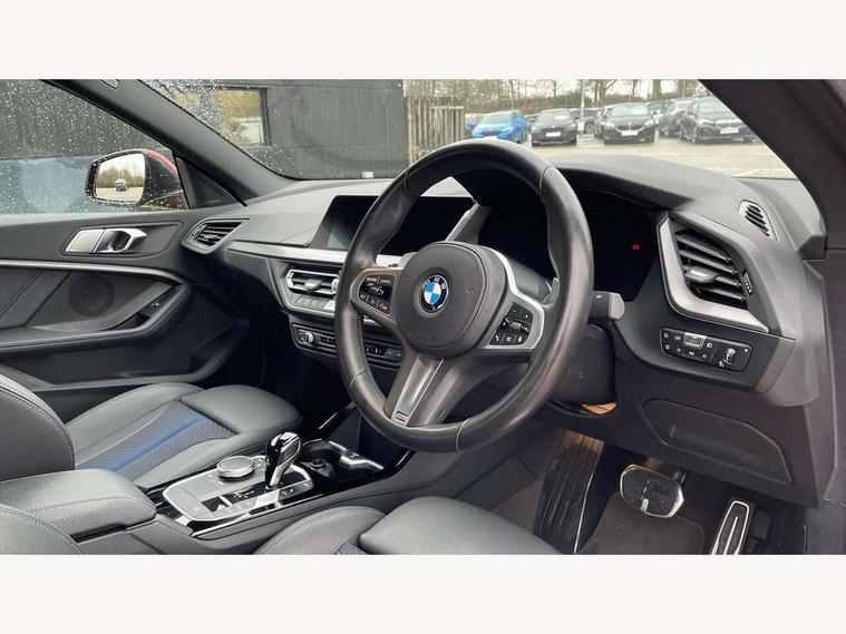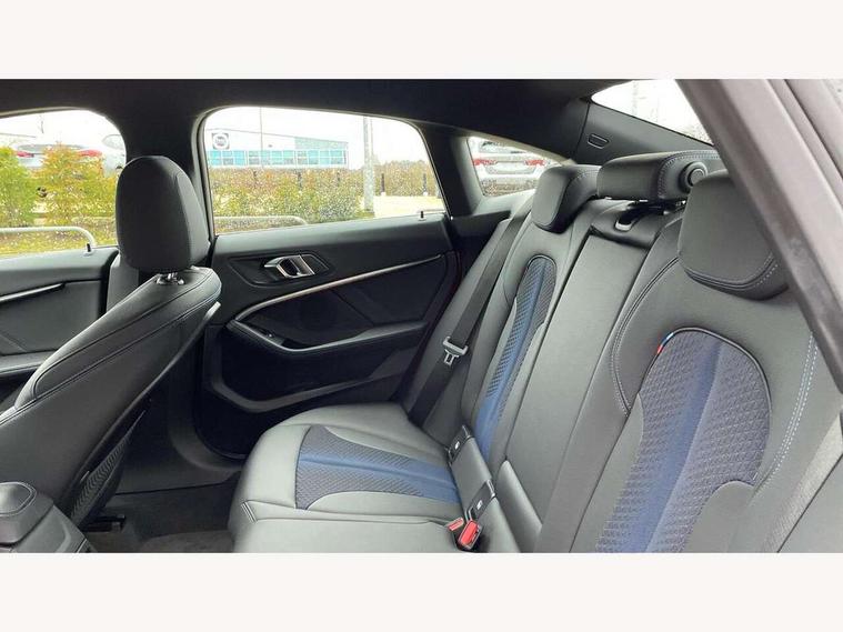Active guard plus, Attentiveness assist, Auto start-stop, BMW Intelligent Personal Assistant, BMW Live Cockpit Professional with 10.25" high resolution instrument and control display, BMW Online services, BMW operating system with 7.0 mid interface, BMW Teleservices, Characteristic map controlled oil pump system, Check Control warning system for monitoring of lights and door/luggage compartment open warning, Cruise control with braking function, iDrive controller with 7 short cut favourite buttons on centre console, Integrated navigation data with map data via USB +features such as 3D landmarks and micro city models, Integrated owners handbook, Intelligent voice assistant, Lane departure warning system, M Sports steering, On board computer - average speed+fuel consumption, service interval, clock/date, odometer/trip meter, outside temperature display and ice warning, Optimum shift indicator, Personal Profile, Pull away assistant, Speed limiting function, 2 balance shafts, 7 speed sport automatic transmission with double clutch technology and sportier application, Aluminium lightweight construction, BMW TwinPower twin-scroll Turbo four-cylinder petrol engine, Double VANOS, Drive performance control with ECO PRO comfort + sport mode, Electronic differential lock, High precision injection, Larger fuel tank capacity (50 litres), M Sport suspension with stiffer spring/damper set-up and vehicle lowered by 10mm + twin tube gasfilled shock absorbers and Anti roll bars, Performance Control, Petrol Particulate Filter, VALVETRONIC engine management, 2x USB Type C ports (for charging and data transfer), 4G LTE Connectivity with hard wied 4G network sim card, DAB digital radio, MP3 players and RDS double tuner, Auto wipers, Automatic headlight beam throw control, Automatically dimming rear view mirror, Body colour door handles, Body colour mirror caps, Chrome 'M' logo side designation, Chrome exhaust single tailpipe, round, Direction indicator side lights integrated exterior mirrors, Electric windows - front and rear, with open/close fingertip control and trap release, Exterior mirrors - electrically folding with anti-dazzle, Fading support, Follow me home headlights, Front and rear bumper system with replaceable deformation elements, Front door sill finishers in black plastic with M designation in metallic look, Heated, electrically adjustable exterior mirror aspheric on driver side, convex on passenger side, High gloss black B pillar finish, High gloss shadow line exterior trim, High level third brake light, LED daytime running lights, LED front fog lights, LED Headlights, Lightweight engineering, Model designation on right side of tailgate, Preparation for high beam assistant, Rain sensor with automatic headlight activation, Rear boot, Rear fog lights, Rear side wing doors, Reversing light in rear light cluster, Welcome lighting, 12V power socket in centre console, 2 cupholders in front centre console, 3 rear seat head restraints, 3 rear seats, 3 spoke M sports design leather steering wheel finished in nappa leather with specific M badge, Anthracite finished floor mats with contrasting surround, Anthracite headlining, Automatic two zone climate control air conditioning, Child seat ISOFIX attachment for two outer rear seats and front passenger seat with anchorage points, Conditioned based service, Driver and front passenger seat heating, Front and rear door pockets including bottle trays, Front and rear side armrests integrated into door trim, Front armrest foldable with integrated storage compartment, Front centre interior light over interior mirror and rear centre automatic interior light when door is opened/ignition switched off or via remote key, Front head restraints, Front passenger seat, Front sports seats with electric side bolster adjustment, Glove compartment, Glovebox with light, Luggage compartment lighting, Manually adjustment steering wheel column, Multi-function controls for steering wheel, Sun visors with vanity mirrors and insert tab, Through loading system with 40/20/40 split folding rear seat, Two lashing eyes, Additional interior lighting pack - 2 Series Gran Coupe, Extended storage pack - 2 Series Gran Coupe, M Sport exterior styling aerodynamics pack - 2 Series Gran Coupe, 2 tone horn, Airbag - Front driver and passenger, front and rear head, front side, curtain head protection, manual deactivation of front passenger airbag possible, Anti lock braking system (ABS) with cornering brake control, BMW emergency call, Brake drying, Braking readiness, City braking function, Crash sensor activating of airbags, Unlocking doors, hazard warning lights, interior light, safety battery terminal, Dynamic stability control + (DSC+), Dynamic Traction Control - DTC, Electrically operated hand brake, Rear brake discs, Rear child proof door locks, Seat belt security check for driver and front passenger, Seatbelt warning, Side impact protection, Three point seat belts on all seats including front belt stopper, pyrotechnic belt tensioners and belt force limiters, Trailer stability control, Tyre pressure monitoring system, Ventilated front disc brakes, Warning triangle and first aid kit, Central locking switch for all doors, fuel filler cap and luggage compartment, Deadlocking function system to all doors, Drive away locking system on all doors and luggage compartment, Locking wheel bolts, Start/Stop button (illuminated) in centre console with keyless engine start and Auto Start-Stop deactivation button, Thatcham Cat.1 alarm and immobiliser, Two remote control key with integrated key - open/close doors/fuel flap/tailgate +1 button for unlock compartment with M design high gloss black inlay, Contrast stitching on instrument panel, 18" Burnished M double spoke bi-colour alloy wheels finished in orbit grey - style 819M, Reduced rolling resistance tyres,