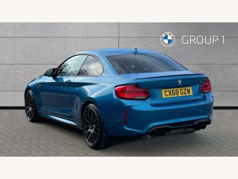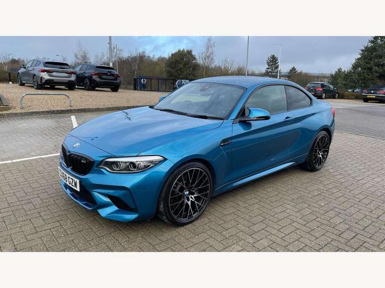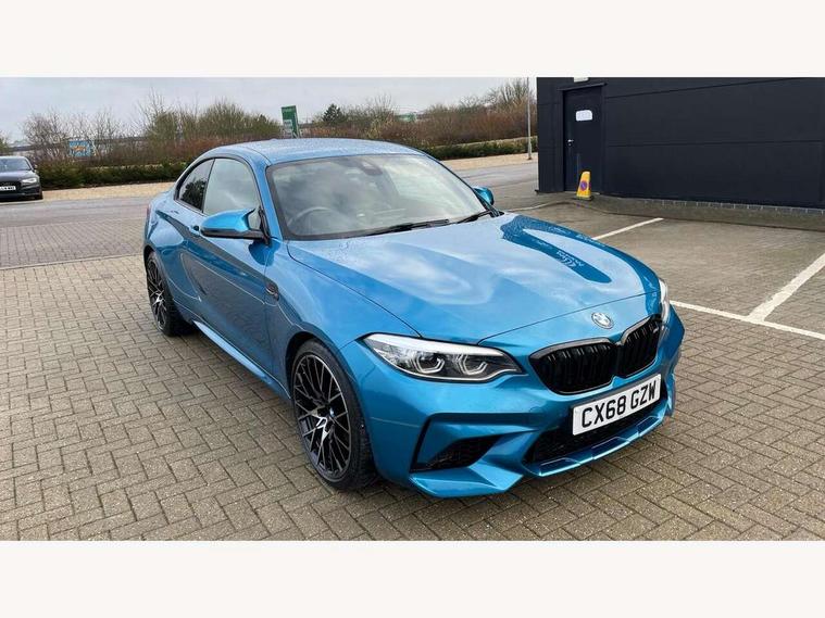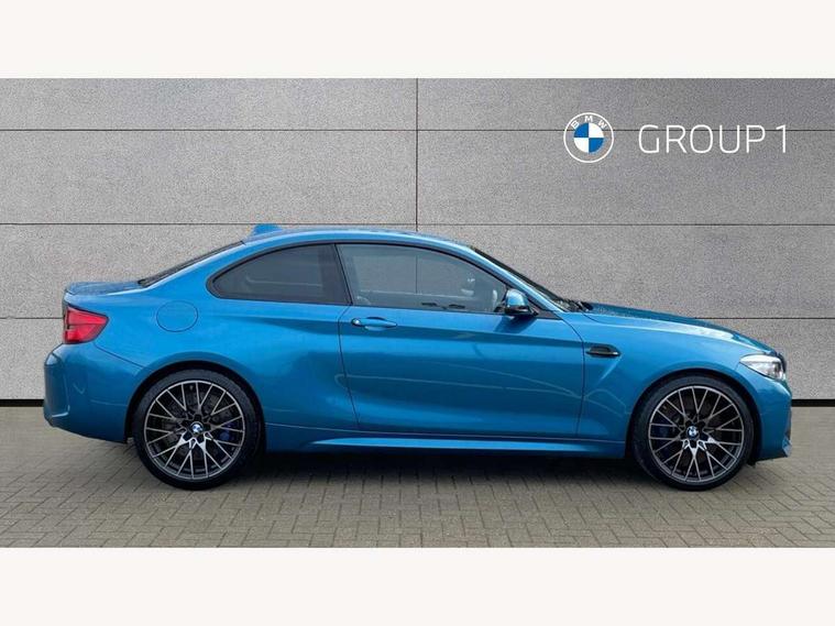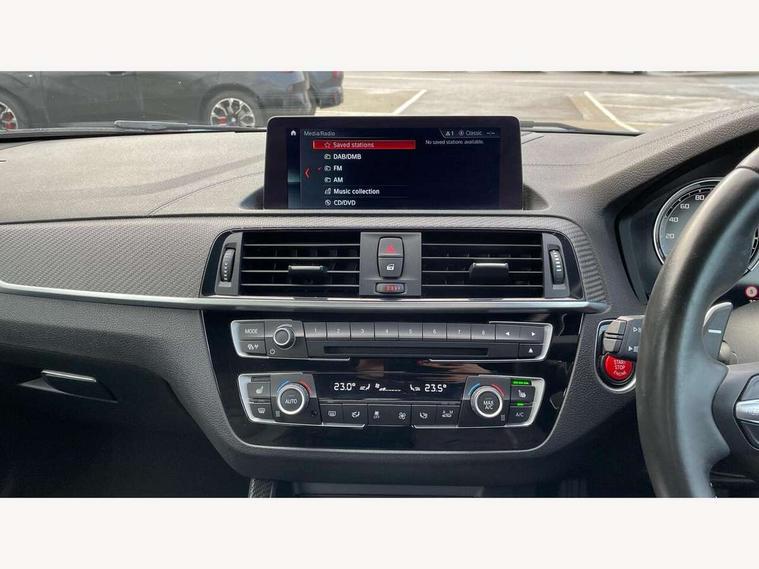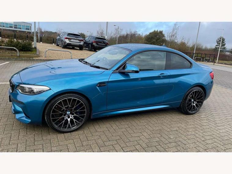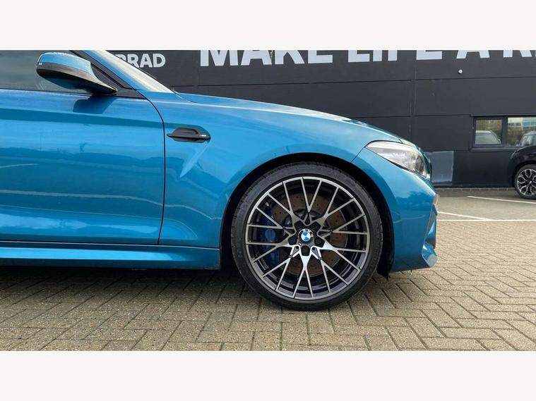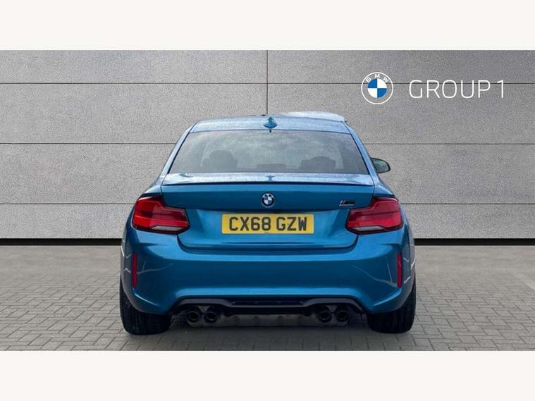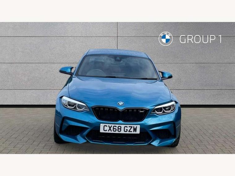 Auto start-stop, BMW Online services, BMW remote services, BMW Teleservices, Cruise control with braking function, Door/boot open warning, Front and rear Brake pad wear indicator, Front/rear Parking distance control, Instrument cluster with speedometer with miles per hour read out, tachometer and fuel gauge, Lights on warning by audio warning signal when ignition is switched off, M Servotronic power steering, Oil sensor for level and grade, warning by check control system, Oil temperature display via on board computer in instrument cluster, On board computer - average speed+fuel consumption, service interval, clock/date, odometer/trip meter, outside temperature display and ice warning, Optimum shift indicator, Personal Profile - automatic lock when driving away selectable, Real time traffic information, Speed limiter, Battery age recognition function, Drive performance control with ECO PRO comfort + sport mode, Engine cover with BMW roundel twin power turbo designation, M sport suspension, Oil dipstick, DAB Digital radio, 2 speed adjustable intermittent wipers with wash/wipe function, Automatic headlight beam throw control, Automatically dimming rear view mirror, Black chrome exhaust, Body colour bumpers, Body colour door handles, Body colour mirror caps, Body colour roof mouldings, Clear lenses direction indicator lights, Daytime driving lights, Direction indicator side lights integrated exterior mirrors, Dual dark chrome exhaust tailpipes, Dynamic brake lights, Electric windows - front and rear, with open/close fingertip control, anti-trap facility and comfort closing, Electrically adjustable and heated M specific exterior mirrors, Follow me home headlights, Front apron with large air inlets, Green tinted heat protection glazing, Headlight range control, Heated windscreen washer jets, High gloss black kidney grille with M double rod vertical slats and M2 badging, High gloss black M side strakes with M2 designation, High gloss shadow line, High level third brake light, LED rear lights, LED welcome home lights, M rear spoiler, M2 specific aerodynamic body styling with unique kidney grille, front bumper, rear bumper and side skirts, Rain sensor with automatic headlight activation, Rear bumper with high gloss black finish, Rear fog lights, Reversing light in rear light cluster, Shark fin roof aerial, Visible VIN plate, Welcome lighting, 12V power socket in centre console, 12V power socket in passenger footwell, 4 grab handles, Anthracite headlining, Anthracite Velour floor mats, Conditioned based service, Dakota leather upholstery, Driver and front passenger lumbar support, Folding rear seat head rests, Folding storage compartment with glasses holder + coin tray, Front and rear side armrests integrated into door trim, Front door sill finishers with M designation, Front door storage bins, Front head restraints, Front sliding armrest, Glove box handle with chrome surround, Isofix child seat for two outer rear seats, Leather gearknob, Leather handbrake lever, Luggage compartment access via BMW roundel, M multifunction nappa leather steering wheel, M Sports seats, Manually adjustment steering wheel column, Rear coat hooks, Rear folding head restraints, Storage compartment in rear centre console, Two cupholders with sliding cover and inlay mat, Two extra lashing eyes in luggage compartment, Interior comfort pack - 2 Series/M2, Media pack - Professional - 2 Series/M2, Active differential brake (ADB), electronic differential lock in DSC-OFF mode, Airbag - Front driver and passenger, front and rear head, front side, curtain head protection, manual deactivation of front passenger airbag possible, Anti lock braking system (ABS) with brake assist, Automatic Stability Control (ASC), Battery safety cut-off, BMW emergency call, Brake drying, Brake energy regeneration, Braking readiness, Cornering brake control (CBC), Crash sensor activating central locking release with hazard warning lights and interior lighting + battery safety cut-off, Dynamic brake control, Dynamic stability control + (DSC+), Dynamic Traction Control - DTC, Front pyrotechnic belt tensioners and belt force limiter, rear coaded belt buckles, Hill start assist, M dynamic mode, M Sport seatbelts, Seat belt security check for driver and front passenger, Side impact protection, Twin horns, Tyre pressure monitoring with 3 level warning strategy, Warning triangle and first aid kit, Central locking switch for all doors, fuel filler cap and luggage compartment, Check control system for monitoring of lights and door/luggage compartment open warning, Drive away door locking, Locking wheel bolts, Remote control including integrated key with blue insert, Thatcham category 1 alarm system with remote control and engine immobiliser, Carbon fibre interior trim with black high gloss finish, BMW mobility system, Reduced rolling resistance tyres,