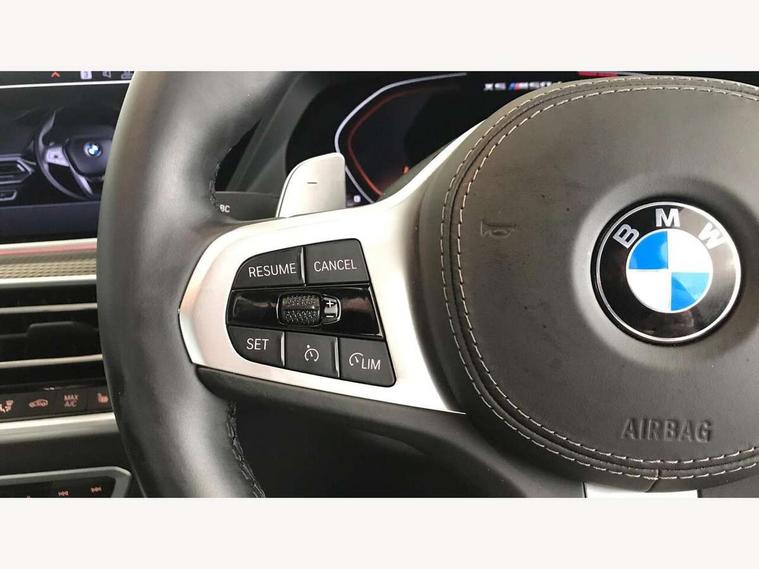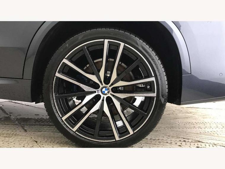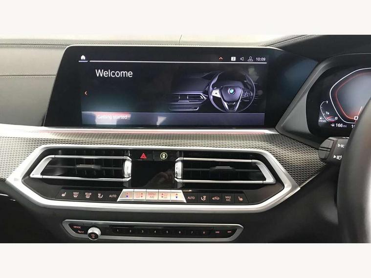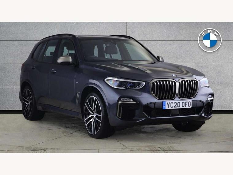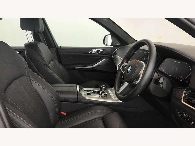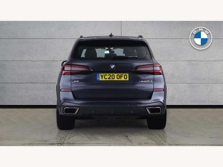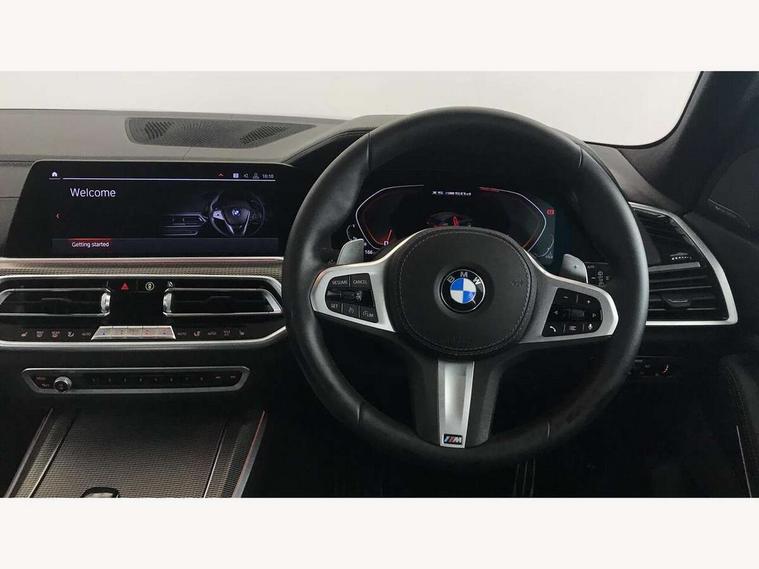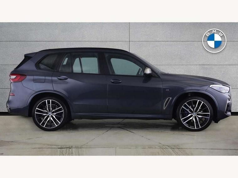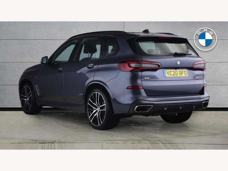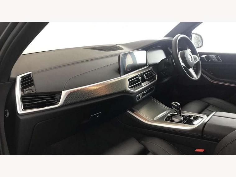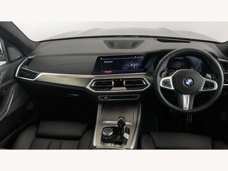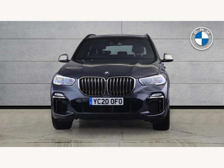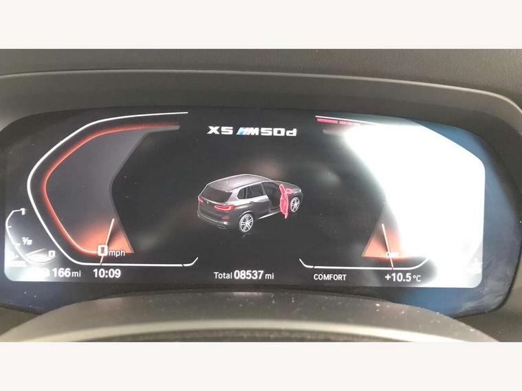 20GB hard disc drive (HDD) memory, Active guard plus, Attentiveness assist, Automatic tailgate with top hinged section open and manual bottom hinged section, BMW ConnectedDrive online services, BMW digital live cockpit professional - 12.3" digital instrument panel and 12.3" CID, with touch/voice command, BMW legal emergency call, BMW Teleservices, Brake force display, Brake pad wear indicator warning light, Enhanced bluetooth hands free facility with Telephony wireless charging, Front/rear park distance control, iDrive touch controller with shortcut buttons, Lights on warning, Oil sensor for level and grade, On board computer inc. average speed, fuel consumption, liquid crystal Info display, journey computer, outside temperature display, personal profile, Service interval indicator, Speed limit info display, Wi-Fi hotspot, Diesel particulate filter, Double wishbone front axle, Drive performance control with ECO PRO comfort + sport mode, Eight speed steptronic sport automatic transmission and gearshift paddles on the steering wheel, M Sport differential, Safety battery terminal clamp, Variable vane geometry, DAB Tuner enables digital radio reception, Favourite buttons, Gesture control for infotainment system, USB connection, USB type A 1.5A in cupholder, USB Type C 3A in centre armrest, Adaptive air flap control bar in high-gloss black, Automatically dimming rear view mirror, Body colour bumpers, Body colour door handles, Cerium grey exterior mirror housing, Cerium grey kidney grille, Cerium grey M badge on left and right side panels, Cerium grey M50d badge on right tailgate, Cerium grey side gill, Dynamic brake lights with LED technology, Exhaust tailpipes - single, left and right in Cerium Grey, Follow me home headlight function, Front and rear electric windows with open and close fingertip control, anti trap facility and comfort closing, Heated windscreen washer jets, High gloss black outer and central air intakes on front bumper with pearlescent chrome finish, High gloss black Side elements, LED daytime running lights, LED fog lights, LED rear lights, M aerodynamic body styling, M Sport exhaust system, Rain sensor with automatic headlight activation and windscreen wiper control, Satin aluminium side window graphic, Third brake light in rear spoiler, Variable intermittent rear wash/wipe, Welcome light carpet, X5 on left tailgate, xDrive designation on right tailgate, 12V - Power sockets with 2x centre console and 1x luggage compartment, 40:20:40 split folding rear seats, Ambient interior lighting with 6 pre-designed selectable lights including dynamic function, Centre and rear interior light, Child seat ISOFIX attachment with rear outer seats includes top tether, Compartment in front of cupholder, Electric front seat adjustment with driver memory, Electrical steering column with adjustable height and length with activation and control on the steering column, Foldable rear centre armrest with 2 cupholders and storage compartment, Front and rear cupholders x 2, Front and rear door pockets, Front and rear door sill finishers with illuminated M50i designation, Front and rear side armrest integrated into door trim, Front footwell lights, Front reading lights, Light inside glove compartment, Lockable glove compartment, Luggage compartment floor panel with integral storage tray, Luggage compartment lighting, M leather steering wheel, M specific key, M specific pedals, M specific steering wheel, M specific velour floor mats, Make-up mirror lights, Multifunction controls for leather steering wheel, Multifunctional hooks, Rear head restraints, Seat back with flap pocket, Securing rings in luggage compartment, Storage bins on all doors, Storage tray and compartment with cover in centre console, Sunvisors with illuminated vanity mirrors, Toolkit located in luggage compartment, Connected Package Professional - X5, Expanded exterior mirror pack - X5/X5 M, Non-smokers pack - X5, Active protection, Airbags - driver/front passenger, rear and side, first and second row seats head airbags, front passenger seat airbag deactivation + knee airbag, Anti-lock braking system (ABS), Automatic Stability Control (ASC), Brake drying, Brake energy regeneration, Brake fade compensation, Braking pre-tensioning, Cornering brake control (CBC), Crash sensor activating central locking release, hazard warning lights, fuel cut off, interior lighting + activation of safety battery terminal clamp, Deformation zones - front and rear with door reinforcements and bumpers up to 2.5 mph, DSC - Dynamic Stability Control, Dynamic brake control, Dynamic Traction Control - DTC, Electromechanical parking brake with automatic drive away release and auto hold function, Electronic brake force distribution, Front and rear seatbelts with seatbelt stopper, seatbelt tensioner for front and outer rear seats and belt force limiter, Front head restraints with anti-whiplash, Height adjustable front seatbelts, Hill start assistant, Integrated brake system, M Sport braking system in blue high gloss + blue painted brake calipers with M designation, M sport seatbelt, Mechanical child proof lock on rear doors, Passive protection for pedestrians, Seat occupancy detection for driver and passenger side, Side impact protection, Three 3 point inertia reel seatbelts, Two tone horn, Tyre pressure monitoring system, Ventilated front and rear disc brakes, Warning triangle and first aid kit, Closing system with central locking, Driver and front passenger door centre lock switch, Locking wheel bolts, Thatcham 1 alarm system with remote control and engine immobiliser, Sensatec instrument panel, Start/stop toggle diamond shaped trim finisher in pearl chrome, Tyre repair kit,