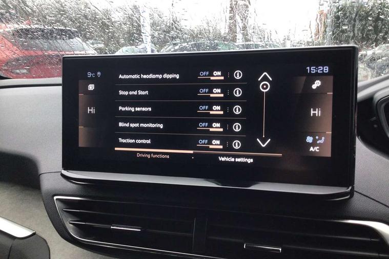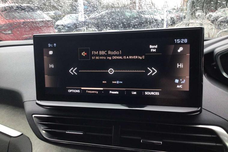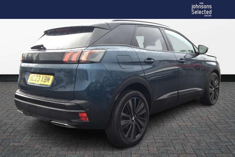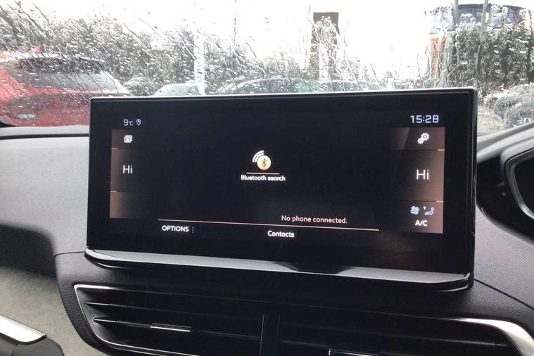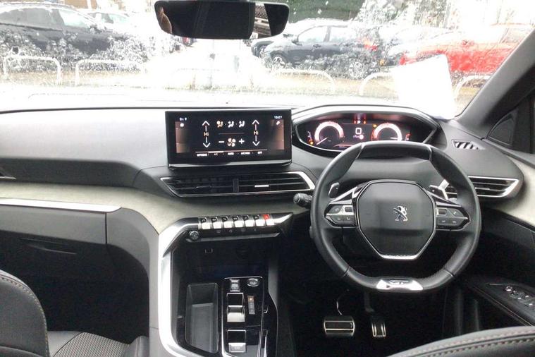 3D connected navigation with 10" HD touchscreen + voice recognition system, Apple car play and Android auto, Blind spot detection system, Bluetooth telephone facility, Drive modes select (Eco, normal and sport), Driver Attention Alert level 3, Driving Time Warning (DAA1), Emergency services call system, Extended traffic sign recognition, Exterior temperature indicator with ice warning, Front and rear parking sensors, Lane departure warning system, Lane Keeping Assistance (LKA) with road edge detection, Mirror screen with mirror link, apple carplay and android auto, Multi function trip computer, Peugeot i-cockpit with compact multi-function sports steering wheel, PEUGEOT i-Cockpit with configurable 12.3" Head-up digital instrument panel, PEUGEOT SOS and assistance, Rear passenger USB charging sockets (x2) (type A), Speed limit recognition and recommendation, Dynamic stability control and electronic anti-skid system, Stop/start function, DAB Digital radio, USB socket, Auto self levelling headlights, Automatic hazard light activation upon heavy brake application, Automatic triggered rear windscreen wiper in reverse gear, Black with chrome detailed front wing trim, Body colour door handles, Body colour rear roof spoiler with stainless steel edging trim, Body protectors (bottom of front and rear bumpers + wheel arches + protection at bottom of doors) in black, Dark tinted rear side windows + tailgate window, Diamond Black door mirror shells, Door mirror mounted LED courtesy floor lighting, Electric folding door mirrors with exterior courtesy LED lighting, Electric operated/heated door mirrors, Fog Mode, Front windscreen wiper with magic wash cleaning system, Full LED headlights with LED fog lights with static cornering function, Gloss black B and C pillar and aerodynamic deflector trim, Gloss black front bumper air scoops, Gloss black rear cluster connecting strip, Gloss black windscreen trim, GT emblem in satin copper (front wings and tailgate), Headlights left on audible warning, Heated rear windscreen with integrated antenna, High beam assist, LED daytime running lights, LED front indicator, LED rear number plate lighting, LED side indicator lights integrated into door mirrors, LED third brake light, One touch electric front/rear windows with pinch protection, Rear LED Peugeot signature 'Claw Effect' lights with clear lens and scrolling LED direction indicators, Rear side wing doors, Twin exhaust tailpipe, 1/3 to 2/3 split folding rear seats, 12V Sockets in dashboard, rear cabin and load area, 2 cupholders in front centre console, 2 cupholders in rear armrest, 2 x Rear reading spotlights, 2x Rear coat hooks, 3x Isofix child seat fittings in the front passenger and outer rear seats, 4 Grab handles retractable and damped, Aikinite stitching in armrest, gear lever and dashboard facia, Aluminium pedals, Blue ambient lighting for connecting zone, Blue ambient lighting to front door panels, central storage and cupholders, Blue ambient lighting to headup instrument panel, Centre front armrest with butterfly wing opening and illuminated storage compartment, Driver seat manual adjustment (longitudinal and back rest angle), Dual zone automatic climate control, e-Toggle compact gear selector, Electric power steering with reach and rake adjustable steering column, Flocked front door pocket interior with blue ambient lighting, Flocked glovebox interior, Foldable front passenger seat with picnic table, Footwell illumination, Front interior light with 2 reading spotlights and rear interior light with timer, Front passenger seat manual adjustment (longitudinal and back rest angle), Front seat back map pockets, Gear shift indicator, Illuminated glovebox, Individual left and right controls in boot for seat folding, LED interior lighting in storage spaces and load area, LED roof interior lighting, Mistral floor mats with Aikinite contrast stitching, Mistral full grain perforated leather steering wheel with aikinite stitch detail and satin chrome 'GT' emblem, Rear bench seat with central armrest and ski hatch, Rear centre console ventilation system, Roof lining - Mistral black, Satin chrome dashboard trim, Satin chrome digital instrument panel and touchscreen trim, Satin chrome front door panel recess trim, Satin chrome interior door handles, Satin chrome scorpion's tail and toggle switch trim, Seatbelt not fastened audible and visual alert for front seats, Seatbelt unfastened on the move audible and visual alert for front and rear seats, Sunvisors with illuminated vanity mirrors, Two position boot floor, Drive assist plus pack - 3008, Visibility pack - 3008 GT, 3x Rear three-point retractable seatbelts with force limiters in the outer rear seats, ABS (Anti-lock Braking System) with EBD (Electronic Brakeforce Distribution) and EBA (Emergency Braking Assistance), Adaptive driver and front passenger airbags with passenger airbag deactivation function, Driver and front passenger side airbags, Electric child locking functionality on rear windows and doors, Electric parking brake, Front and rear curtain airbags, Front optimised safety headrests and 3 x rear retractable headrests with height adjustable, Front three point retractable seatbelts with pre tensioners and force limiters, Front ventilated disc brakes and rear disc brakes, Hill start assist, Two tone horn, Automatic door locking when moving off, Electronic immobiliser, key operated exterior door lock from the left hand door, Perimetric and volumetric alarm with lift and tilt sensor, Peugeot Open and Go System, Remote control central locking with two plip keys, Puncture repair kit including compressor, sealant cartridge and towing eye,