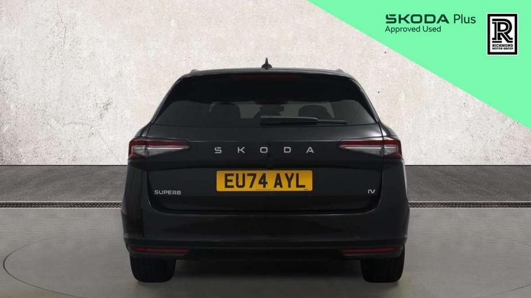 13" touchscreen display with satellite navigation, 4x USB-C ports (2x in front centre console and 2x in rear) (45W), Adaptive cruise control with speed assist, lane assist plus and traffic tram assist, Blind spot detection with door exit warning, Bluetooth system, CareConnect and Emergency Call, ChatGPT functionality, Drive mode selection, Driver fatigue sensor, Electrically operated boot with virtual pedal, Front assist with extended predictive pedestrian protection, Front cross traffic assist, PAS, Quick start all heating software functionality, Rear view camera with washer, Stop/start engine system, Traffic sign recognition, Turn assist with evasive assistance, Virtual Cockpit - 10.25" digital display, Voice control system, Wireless charging for one smartphone (15W) with cooling function, Wireless smartlink apple carplay, SmartLink+ android auto, DAB Digital radio, Display cleaner, FM radio connection, Web radio connection, Acoustic side windows and interior noise suppression, Backdrop lighting, Body colour door handles, Body coloured door mirrors, Chrome roof rails, Chrome window surround, Dynamic range control with poor weather light and integrated fog light, Electrically adjustable, heated, folding and driver side auto-dimming door mirrors with memory function, integrated indicators and logo projection, Frameless auto-dimming rear view mirror with USB-C, Front windscreen with heat-insulating glass, Ice scraper in fuel tank cap, LED 3rd brake light, Light assist with High beam control, Light assistant (coming/leaving home/tunnel light), Privacy glass, Rear fog lights (x2), Rear roof spoiler, Rear side wing doors, Rear windscreen wiper, Tow bar preparation, Unique dark chrome grille surround with dark chrome rib elements, Windscreen wipers with rain sensor, 12V socket 1x centre console 1x boot, 12V socket and 2x cargo elements in boot, 14-way electrically adjustable, memory, front seats with 4-way pneumatic lumbar support, and extendable thigh support with smart comfort entry aid, 2 spoke multifunction steering wheel with DSG paddles, 3 seat bench in 2nd row, 4x foldable bag hooks in boot, 60:40 Split folding rear seats, Advanced massage function for front seats, Bottle holders in the front doors 1.5 litre bottle and rear 1.5 litre bottle, Cup holder in front with easy open mat, Front and rear footwell illumination, Front armrest with storage box, Front sports comfort seats, Heated and ventilated front seats, Height adjustable front and rear head restraints, Height adjustable front passenger seat, Illuminated glovebox, Interior lights with control switches, Isofix child seat fittings in outer rear and front passenger seats, LED front and rear reading lights, Multi colour ambient lighting, Single front passenger seat, Storage pockets on back of front seats, Sun visors with illuminated vanity mirrors, Ticket holder on A Pillar, Tri zone climate control, Umbrella in driver's door, Light and view package - Superb, Transport package - Superb Estate, 3 rear seatbelts, 8 Airbags - Front driver and passenger, front side driver and passenger, centre, curtain front and rear, drivers knee, Crew protect assist, Driver and passenger seatbelts with warning light, Electronic parking brake, ESC including ABS, EBV, MSR, ASR, EDS, HBA, DSR, RBS, CBC, multi-collision brake (MKB) and Auto hold, Hill hold assist, Power operated child lock in rear doors, Alarm with interior monitoring tilt sensor and back up horn, Backrest remote release from trunk, Electronic engine immobiliser, Keyless start/stop, Remote central locking with SAFE system, Third key, Walk away locking, Decorative front door sills, Tyre repair kit,