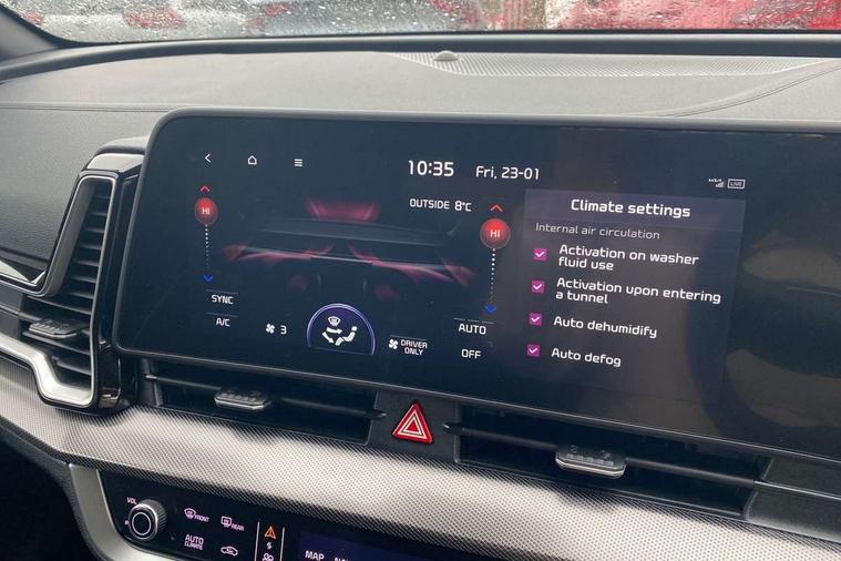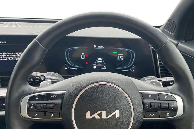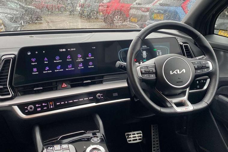 12.3" Display with navigation, 4.2" supervision colour cluster display, Apple car play/Android Auto with voice control, Drive mode selector, E-call, Forward collision avoidance assist (FCA) - city/pedestrian/cyclist/junction covering, Front and rear parking sensors, Highway Driving Assist (HDA), Intelligent speed limit assist, Kia Connect (UVO), Lane Following Assist (LFA), Lane keep assist, Low washer fluid warning, Rear view monitor, Reversing camera system integrated into centre fascia screen, Smart cruise control with stop and go functionality, Speed sensitive power steering, Trip computer, Windscreen washer level indicator, Intelligent Stop and Go, 6 speaker audio system, Bluetooth audio streaming, DAB Radio with MP3, Rear USB port, Steering wheel mounted audio controls, USB C type charging ports on centre console, USB C type charging ports on side of front seats, USB port for connection of a media device, All round electric windows with drivers and front passenger auto up/down function, Automatic headlight control system, Automatic window defogger, Backlite glass heated with timer, Body colour and black bumper with silver accents, Body colour exterior door handles, Body colour radiator upper garnish and door garnish, Electrically adjustable/heated/folding door mirrors with LED indicators, Front and rear chrome skid plates, Gloss black door mirrors, Gloss black radiator grille, Gloss black side sill and wheel arch body mouldings, Glossy black roof rack, High beam assist, Interior electrochromic mirror, LED daytime running lights, LED front fog lamps, LED headlamps (low and high beam - MFR type), LED High mounted stop light, LED rear combination lamp, Rain sensing wipers with aero blades, Rear fog lamp, Rear privacy glass, Rear side wing doors, Rear spoiler, Rear wiper, Satin finished beltline, Silver coloured inserts to bumpers, Tinted rear glass, Trailer stability assist, 12V power socket in front centre fascia and luggage compartment, 2nd row personal lamps, 3 seat bench in 2nd row, 3 x passenger assist grips, 40/20/40 split folding rear seat, All-round height adjustable headrests, Black headlining, Centre console storage box, Cupholders in rear armrest, D-Shaped sports leather steering wheel and perforated inserts with GT-Line logo, Door courtesy lamps, Drink holder at centre armrest, Driver and front passenger side sunvisors with illuminated vanity mirrors, Driver's seat manual height adjust, Drivers seat power lumbar support, Front and rear door storage, Front seat and rear pockets, Front/rear centre armrests, Gear shift indicator, Glovebox illumination, Heated front seats, Heated steering wheel, Interior door lock/unlock function, ISOFIX Child seat top tethers and anchor fixings outer rear seats, Luggage area light, Luggage area load cover, Luggage net with hooks, Metal paint interior door handles, Overhead console lamp, Paddle shift controls, Rear cabin light, Rear coat hooks, Single front passenger seat, Sports pedals, Suede leather upholstery, Three zone climate control, Tilt/telescopic adjustable steering wheel, Ventilation ducts to rear compartment, Active front headrests, All round 3-point seatbelts, Anti-lock braking system (ABS), Dual front side airbags, Dual horn, Electronic parking brake, Electronic stability control with downhill brake control, Front passenger airbag cut-off switch, Front seatbelt pretensioners + load limiters, Height adjustable front seatbelts, Hill start assist control (HAC), Impact sensing auto door unlocking, Multi collision brake assist, Rear door child safety locks, Rear seat alert system, Traction control, Twin curtain airbags, Twin front airbags, Tyre pressure monitoring system, Advanced anti-theft system including immobiliser and alarm, Door deadlocks, Engine Start/Stop Button with Smart Entry System, Locking wheel nuts, Speed sensitive auto door locking, Visible vehicle identification number, Aluminium pattern finish centre fascia and door garnish, 18" GT-Line alloy wheels, Tyre mobility kit,
