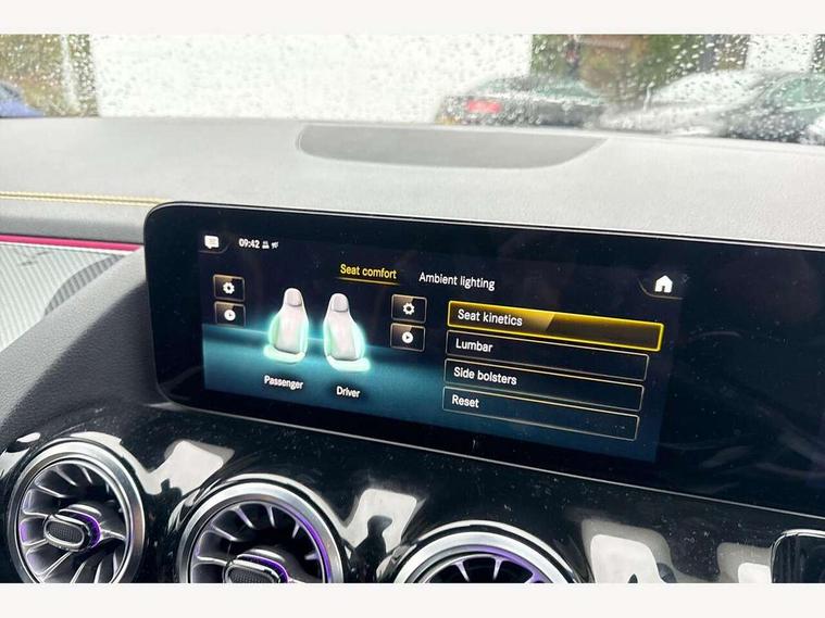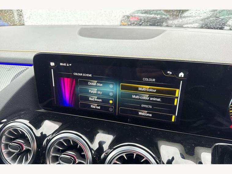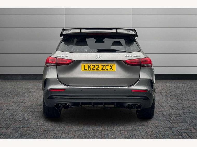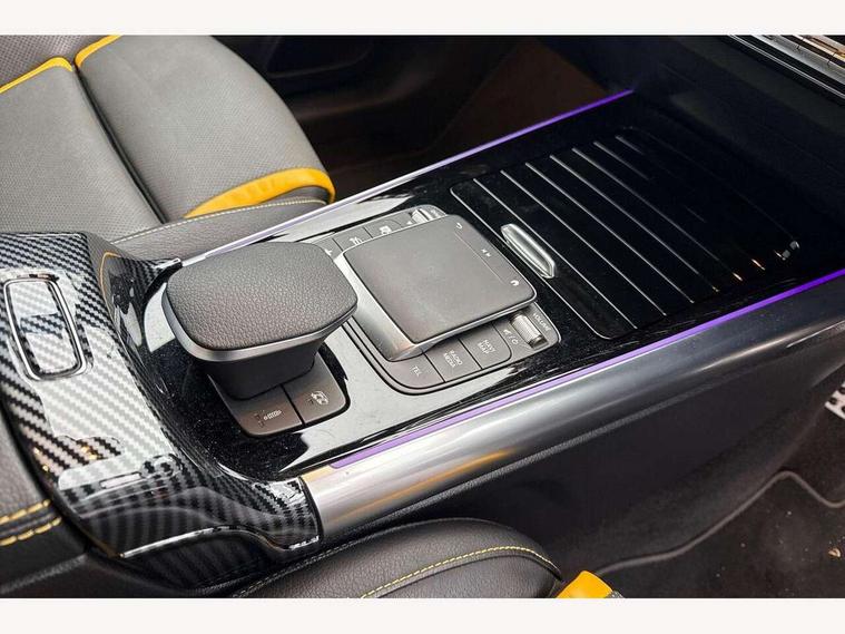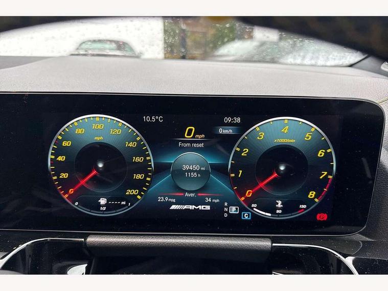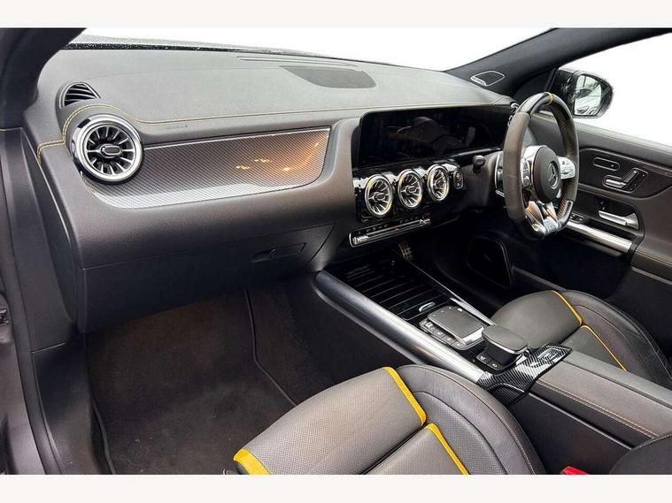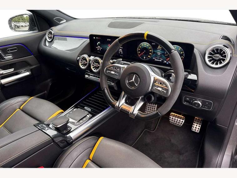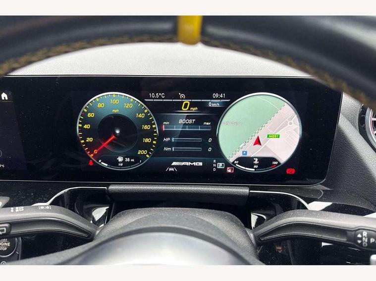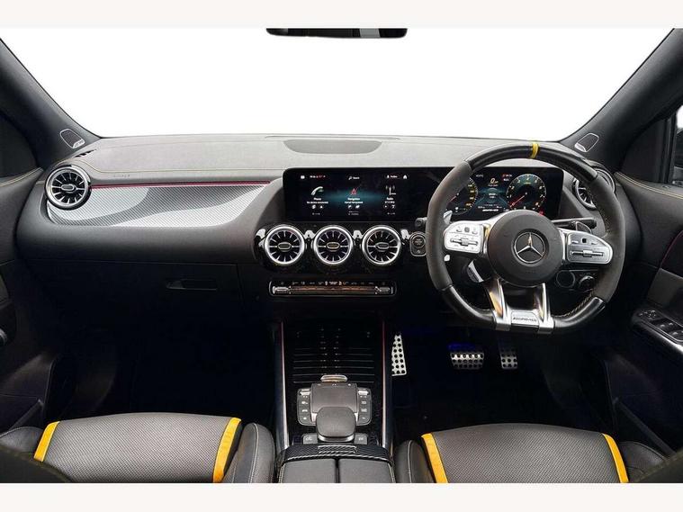10.25 inch touchscreen central media display, 10.25" Digital instrument cluster display screen, Active lane keeping assist, AMG DYNAMIC SELECT with driving programs (Slippery, Comfort, Sport, Sport+, Individual and Race) including drift mode via steering wheel shift paddles, AMG speed sensitive steering with two sets of steering characteristics, Attention assist, ECO start/stop function, Fluid level warning indicator for fuel, oil, coolant and washer fluid, Hard-disk navigation, Hey Mercedes Voice activation, Instrument cluster - AMG sporty menu with gear indicator, warm up menu, set up menu, plus G meter, Race timer and engine data, Lamp failure indicator, Mercedes me connect including emergency call system, accident recovery, breakdown and maintenance management, Mercedes me remote services, Multi function trip computer, Outside temperature gauge, Owners manual and service booklet in English, Pre-installation of private car share, Radio aerial integrated into front and rear windshields, Service indicator (ASSYST), Smartphone integration with Apple CarPlay and Android auto, Status display for rear seat belts in instrument cluster, Traffic sign assist, AMG performance 4MATIC+ with torque control, Rear axle multi-link, Suspension with adaptive damping system, 2 USB ports (type C) in rear stowage compartment and one in front of center console, Bluetooth connectivity including audio streaming, DAB Digital radio, MBUX multimedia system with AMG specific display designs, programs and engine data, Media interface, Mercedes-Benz sound system - 100W, Adaptive brake lights, Aerial for GPS, AMG body styling - Front apron with air deflectors on the outer air intakes, AMG body styling - larger air intake in black, AMG body styling - Rear air outtakes, AMG exhaust system with flap control dependent on drive program, AMG real performance exhaust sound system, AMG specific/dual flow exhaust pipes in chrome (non-functional), AMG wider side skirts, Automatic headlamp activation, Body colour bumpers, Body coloured door handles with chrome insert for keyless entry, Car wash function, Dark privacy glass from B-pillar backwards, Electric front windows, Electric rear windows, Electrically adjustable and heated door mirrors with integrated LED indicators, Heated glass rear windscreen + timer control, Heated windscreen wash system, Interior mirror with black reading lamps and frameless, LED third brake light, Multibeam LED headlamps with adaptive highbeam assist and cornering function, Panoramic sunroof, Rain sensor windscreen wipers, Rear fog lights, Rear side wing doors, Roof spoiler, Signature AMG radiator grille, Specific S labelling on the boot lid, 12V power socket in centre console, 3 seat bench in 2nd row, 3 spoke flat bottom AMG perform sports steering wheel in nappa leather/Dinamica microfibre, 12 o'clock with stitching and silver chrome AMG lettering, 40:20:40 split folding rear seat backrests, Adjustable head restraints, Air conditioning - Two zone thermotronic luxury automatic climate control with display, Ambient lighting in front headrests, AMG floor mats in black with AMG lettering and border in nubuck leather look finish, AMG illuminated door sills with changeable cover, AMG performance seats, AMG steering wheel buttons, Auto Mercedes-Benz child seat recognition sensor, Black roof lining, Centre console with AMG specific hand comforter and button to control manual transmission and 3 stage ESP, Courtesy light in boot, Electrically adjustable front seats with memory function, Front centre armrest with stowage, Galvanished gear shift paddles on steering wheel, Heated front seats, Illuminated glovebox, Interior lighting - 64 colour Ambient lighting, Leather trimmed gearknob, Luggage net on driver/front passenger seat backrest, Manually height and reach adjustable steering column, Multi-gesture touchpad control on center console, Single front passenger seat, Sports pedals in brushed stainless steel with black rubber studs, Stowage compartment in centre console, Stowage compartment with retractable cover, Sunvisors with illuminated vanity mirrors, Twin front cup holders, Two outer rear seat isofix and top tether child seat fixing points, AMG Aerodynamics package - GLA, AMG driver packaage - GLA, AMG Multi contour seat package - GLA, AMG Night package - GLA, AMG performance seat high end package - GLA, Interior lighting with light and sight pack - GLA, Load compartment pack - GLA, Mirror pack - GLA Class, Parking pack - GLA, 3 rear 3 point seatbelts, ABS with Brake Assist, Active bonnet pedestrain safety measure which detects an impact and raises bonnet by 65mm, Active brake assist includes forward collision warning system with autonomous braking, Adaptive brake assist with hold function and hill start assist, AMG high performance brake system with red painted brake callipers and black AMG lettering at the front, ventilated and perforated brake discs, Bonnet with power domes, Brake pad wear warning indicator, Childproof locks manually operated for rear doors and electrically operated for rear power windows, Crash responsive emergency lighting, Driver and passenger head and side airbags, Drivers knee airbag, Dual stage driver/passenger airbags, Electronic parking brake, ESP curve dynamic assist, ESP with ASR, Front and rear seatbelt reminder, Front passenger seat occupancy sensor, Tyre pressure monitoring system, Warning triangle and first aid kit, Window airbags, Alarm system with immobiliser and interior protection -Thatcham category 1, Keyless Go starting function, Remote central locking and crash sensor with emergency opening function, Urban guard vehicle protection, Vehicle key with decorative surround in chrome, Carbon structure trim, Chrome air vent surrounds, 21" AMG cross spoke light alloy wheels painted in matt black with high sheen rim flange, Summer tyres, Tirefit tyre sealant kit, Wheel arches with flared AMG wings with TURBO 4MATIC+ lettering,
