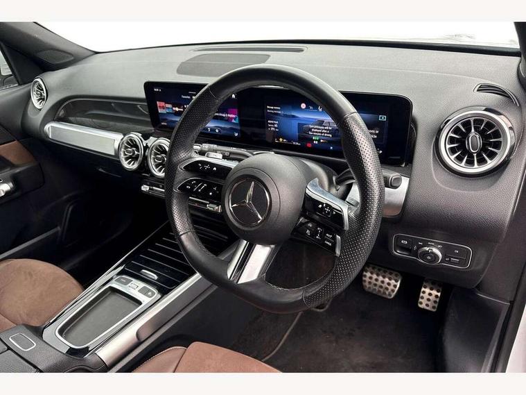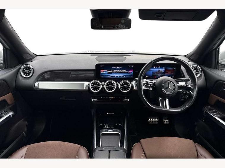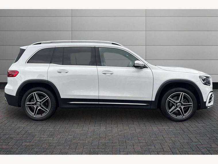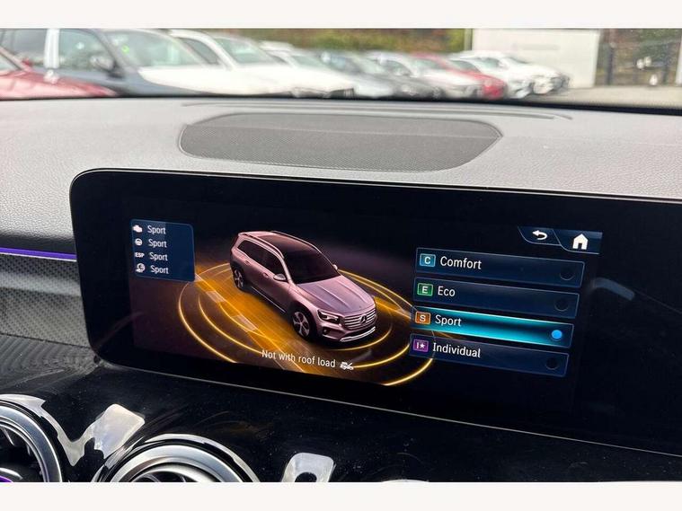 10.25 inch touchscreen central media display, 10.25" Digital instrument cluster display screen, 12 ultrasonic sensors in front and rear bumpers, 180 degree reversing camera with parking guidelines, Assisted parking: reversing backwards into perpendicular and parallel parking spaces, Attention assist - Monitors steering behaviour and long journey fatigue, Bluetooth connection, Brake pad wear indicator warning light, Car wash mode, Convenience opening and closing, Direct steering, DYNAMIC SELECT with a choice of driving modes (ECO, Comfort, Sport and Individual), ECO start/stop function, Engine start/stop button, Fluid level warning indicator for fuel, oil, coolant and washer fluid, Hard disk navigation, Hey Mercedes Voice activation, Lamp failure indicator, Lane keep assist, MBUX navigation premium, Mercedes me connect including emergency call system, accident recovery, breakdown and maintenance management, Mercedes me remote services, Outside temperature gauge, Owners manual and service booklet in English, Pre-installation of private car share, Preinstallation for parking damage notification, Radio aerial integrated into front and rear windshields, Remote boot closing, Service indicator (ASSYST), Smartphone integration with Apple CarPlay and Android auto, Speed limit assist, Tailgate, Trip computer in multifunction display with current consumption indicator, Ultrasound sensors - positioned in the handle of the tailgate, Wireless charging, Comfort suspension with ride height lowering, Rear axle multi-link, 1 USB-C port in the oddments compartment (Charge + Data transfer), 2 USB-C ports for the rear on the centre armrest (Charge only), 2 USB-C ports under the front centre armrest (Charge + Data transfer), DAB digital radio tuner, MBUX multimedia system, Mercedes Benz sound system (100 W) with 6 speakers, Pre installation for Mercedes Benz Link, Adaptive brake lights, Adaptive high beam assist, AMG front apron with front splitter in the colour of the vehicle with chrome trim element, AMG rear apron with visible tailpipe trim and chrome trim element, AMG specific/dual flow exhaust pipes in chrome (non-functional), Auto dimming rear view mirror, Beltline trim and window line trim strip in high gloss aluminium, Black grained side sill trim with chrome inlay, Body coloured door handles, Electric adjustable and heated door mirrors with integrated LED side indicators, Electric folding door mirrors, Front and rear electric windows, Headlamp assist automatic headlamp activation, Heat insulating dark-tinted glass starting from B-pillar, Heated glass rear windscreen + timer control, High level LED third brake light, Interior mirror with black reading lamps and frameless, LED high performance headlamps with integrated LED daytime running lights, LED tail lamp, Polished aluminium roof rails, Radiator grille as a diamond grille with chrome pins and central Mercedes star, Rain sensor windscreen wipers, Rear fog lamp, Rear side wing doors, Rear wiper, Single louvre in matt grey with chrome inserts and black highlights, Two visible tailpipe trim elements exhaust, Ultrasonic sensors - positioned in the front and rear bumpers, Wheel arch liners in the colour of the vehicle, 12V socket in the oddments compartment, 3 seat bench in 2nd row, 3 twin spoke flattened multifunction steering wheel in nappa leather - horizontal twin spoke in high gloss black, vertical twin spoke in silver chrome, 4 way adjustable lumbar support, 40:20:40 split folding rear seats, Air vents with silver chrome surrounds, AMG floor mats, AMG sports pedals with brushed stainless steel surfaces and black rubber studs, Automatic child seat recognition sensor, Black roof lining, Door handles with chrome inserts, Fluorescent jacket, Front and rear headrests, Front centre armrest with stowage, Galvanised steering wheel gearshift paddles in silver chrome, Handle recess lighting, Heated front seats, Height adjustable head restraints, Height/reach adjustable steering column, Interior lighting - 64 colour Ambient lighting, Luggage net on driver/front passenger seat backrest, Single front passenger seat, Sports seats, Stowage compartment with retractable cover, Sun visors with illuminated vanity mirrors, THERMATIC automatic climate control, Third row of seats for two people on rear seat, Twin front cup holders, Two outer rear seat isofix and top tether child seat fixing points, Easy pack tailgate, Interior lighting with light and sight pack - GLB, Seat comfort package - GLB, 3 rear 3 point seatbelts, Active bonnet pedestrain safety measure which detects an impact and raises bonnet by 65mm, Active brake assist includes forward collision warning system with autonomous braking, Adaptive brake assist with hold function and hill start assist, Airbags - kneebag for driver, Anti-lock braking system (ABS) with brake assist, Black seatbelts, Bonnet with power domes, Childproof locks manually operated for rear doors and electrically operated for rear power windows, Crash responsive emergency lighting, Curve dynamic assist, Driver and front passenger head and sidebags, Driver and front passenger windowbags, Dual stage driver and front passenger airbags, Electric parking brake, Electronic stability programme with acceleration skid control, Front and rear seatbelt reminder, Front brake callipers with Mercedes Benz lettering, Front passenger seat occupancy sensor, Perforated front brake discs, Tyre pressure monitoring system, Warning triangle and first aid kit, Guard 360 degree vehicle protection - Anti theft alarm system, tow away protection with visual, acoustic warning and alarm, Interior monitoring system, Keyless Go Access and drive authorisation system, KEYLESS-GO starting function, Remote central locking and crash sensor with emergency opening function, Thatcham category 1 alarm system with immobiliser and interior protection, Vehicle key with KEYLESS GO functionality, Carbon structure trim, 19" AMG 5 twin spoke light alloy wheels aerodynamically optimise