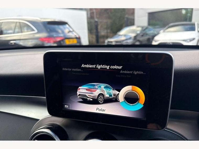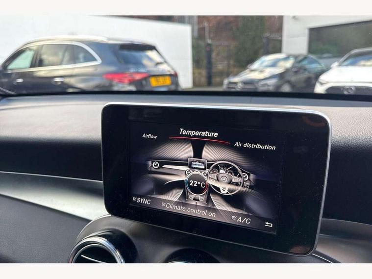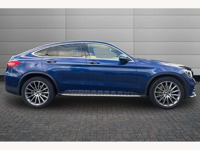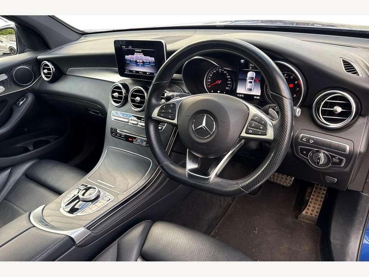 Active park assist with parktronic system, Attention assist, Bluetooth interface for hands free telephone, Collision prevention assist plus, Crosswind Assist, DYNAMIC SELECT with a choice of driving modes (ECO, Comfort, Sport, Sport+ and Individual), Garmin Map Pilot navigation system with SD card, touchpad and voice control, High resolution 7 inch multimedia colour display, Instrument cluster with 5.5-inch TFT multi-function display, Mercedes connect me with remote online services, Multi function trip computer, Outside temperature gauge, Power opening/closing tailgate, Remote boot release, Service indicator (ASSYST), 66 litre fuel tank, 5 speakers, DAB Digital radio, Frontbass loudspeakers, Mercedes Audio 20 radio/single CD + telephone keypad, USB connection, Adaptive brake lights, AMG bodystyling front and rear aprons, side skirts, Automatic headlights, Body coloured bumpers, Chrome exterior trim, Chrome pins diamond radiator grille with integrated stars, Electric sliding glass sunroof, Electric windows one touch open/close, Electrically adjustable and heated door mirrors, Exhaust tailpipe finisher, LED daytime running lights, LED rear lamps, Privacy glass (to rear of B post), Rain sensor windscreen wipers, Range adjustable headlights, Rear wiper, Tinted glass all round, 2 cupholders in front centre console, 2 way rear head restraints, 3 spoke flat bottom multi-function AMG steering wheel in black nappa leather with chrome inserts, 4 way adjustable front head restraints, 4 way electric lumbar support for driver and front passenger, 40:20:40 split folding rear seats, Ambient lighting, AMG floor mats, AMG sports seats, Auto Mercedes-Benz child seat recognition sensor, Automatic climate control, Black roof lining, Dividing net - rear, Electric front seat height adjustment, Front armrest with storage box, Front door sills with Mercedes Benz lettering, Gearshift paddles, Heated front seats, Height/reach adjustable steering column, Lockable/illuminated glovebox, Rear top tether child seat ISOFIX attachment, Sports pedals with stainless steel surfaces and rubber studs, Sunvisors with illuminated vanity mirrors, Easy-pack load compartment cover, Interior lighting pack - GLC, Memory pack - GLC, Mirror pack - GLC, Storage pack - GLC, 3 rear 3 point seatbelts, ABS with Brake Assist, Active bonnet, Adaptive brake system, ASR, Black seat belts, Brake calipers with Mercedes-Benz lettering + perforated brake discs, Child proof door locks, Drivers knee airbag, Dual stage driver/passenger airbags, Electronic parking brake, ESP curve dynamic assist, Front and rear seatbelt reminder, Front passenger seat occupancy sensor, Front side airbags, Hill hold function, Tyre pressure monitoring system, Warning triangle and first aid kit, Window airbags, Alarm system/interior protection/immobiliser, Automatic door locking, Keyless entry and keyless start, Remote central locking, Tyre inflation kit,