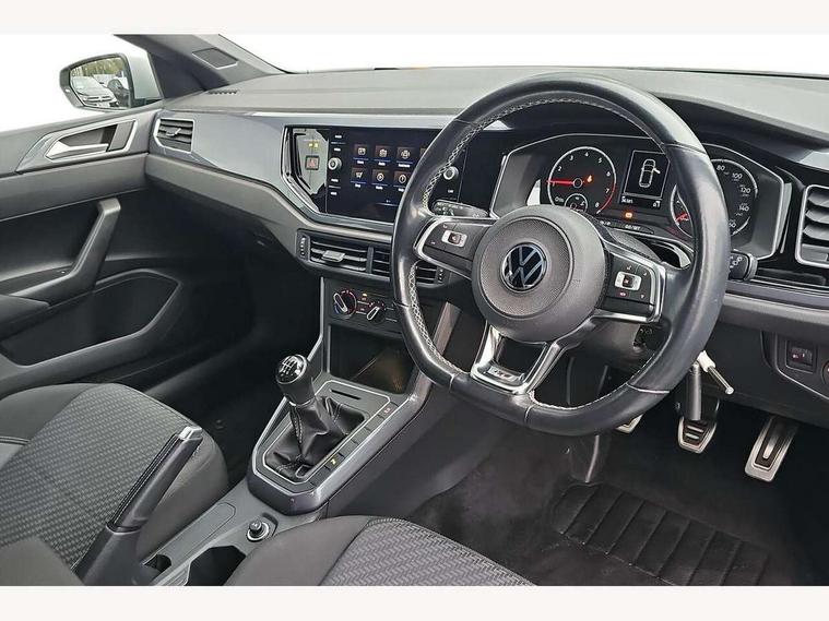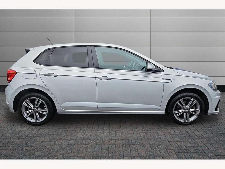 Digital clock, Driver alert system, Emergency call service, Lights on warning, Multifunction computer plus, Power assisted speed sensitive steering, Speedo and rev counter, electronic odometer, trip, service interval display and fuel gauge, Start/stop system, Volkswagen connect, Warning buzzer and light for front seatbelts unfastened, Wireless app connect, Battery regeneration during braking, Galvanished body, Diversity antenna for FM reception, Front and rear 6 speakers, Black grille with chrome surround, Body colour door handles, Body coloured side sills, Chrome trimmed strip on lower bumper, Electric front windows, Electrically adjustable and heated door mirrors with reverse activated kerb view adjustment on passenger's side, Front windscreen washers and wipers with 4 speed intermittent delay, Heated rear window with auto timer, High level 3rd brake light, LED darkened rear light clusters, LED daytime running lights, LED rear number plate lights, Left and right chrome effect trapezoid fascia exhaust tailpipe surrounds, Rear diffuser, Rear electric windows, Rear windscreen washer and wiper with interval delay, reverse activated, Unique R Line badging, 2 bag hooks in luggage compartment, 2 front cupholders and 12 V socket with cover, 3 rear head restraints, 60/40 split folding rear seat, Ambient lighting in front foorwell, front/rear door and dashboard light strips, Carbon flag cloth upholstery, Centre console storage with open storage compartment, Chrome-plated electric mirror adjustment switch surround, Chrome-plated electric window button surround, Driver and front passenger seat height adjustment, Driver and front passenger sunvisors with illuminated vanity mirrors, Dust/pollen filter, Folding rear seat backrest, Front + rear carpet mats, Front head restraints, Front seat backrest storage pockets, Front sport seats with lumbar adjustment and R line logo on seat backrest, Gear lever gaiter in black trim surround, Glovebox, Handbrake grip button in chrome effect, Height/reach adjustable steering column, Instrument lighting, adjustable panel illumination, Interior light with delay, Isofix Preparation 2 Rear child seats, Leather gear knob and handbrake grip, LED interior lighting - 2 reading lights front and rear with interior delay and dimming function, Luggage compartment cover, removable, Luggage compartment lighting, Luggage compartment with variable load floor, Stainless steel pedals, Storage compartment in front doors, Storage compartment in rear doors, Storage compartment under front seats, Three spoke leather trimmed multifunction steering wheel with aluminium inserts and R Line Logo, Titanium black roof lining and sun visors, Unique R Line door sill protectors, Light and sight pack - Polo, R Line styling pack - Polo, 3 point height adj front seatbelts + pretensioners, 3x3 point rear seatbelts, ABS, Automatic post collision braking, Driver/front passenger airbag, Drivers and front passengers safety optimised head restraints, ESP with EDL + ASR, Front and rear passenger curtain airbags, Front passenger airbag deactivation, Front seat side impact airbags, Front/rear disc brakes, Hill hold control, Hydraulic Brake Assist (HBA), Single tone horn, Tyre pressure monitoring system, Alarm with interior protection and deactivation via infotainment system, Electronic engine immobiliser, Remote central locking with 2 remote folding keys, Chrome plated air vent surround, Chrome plated instrument surrounds, Shadow steel decorative inserts,