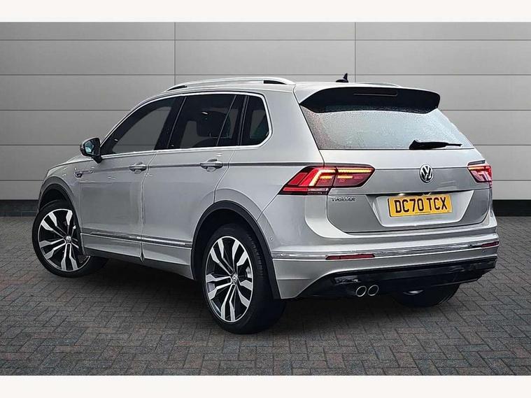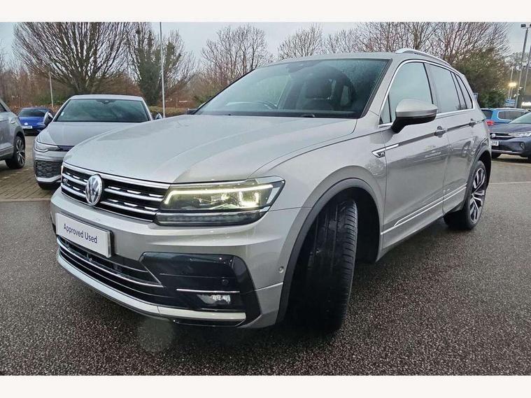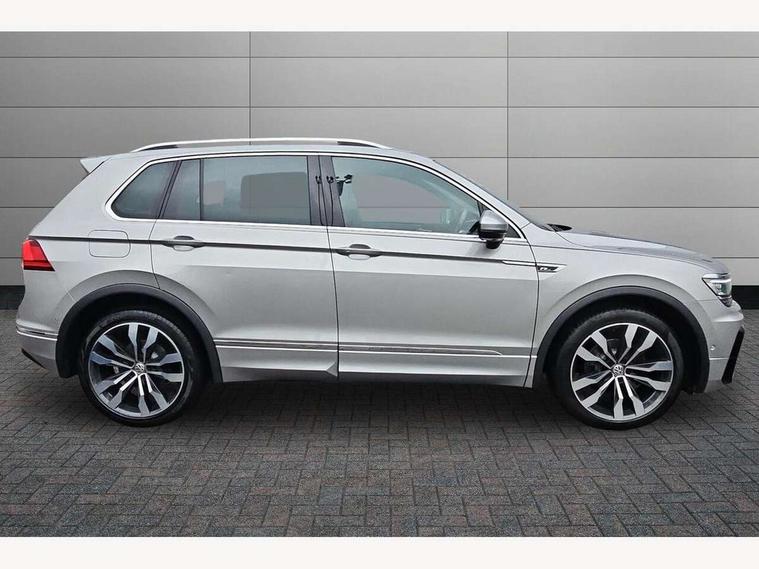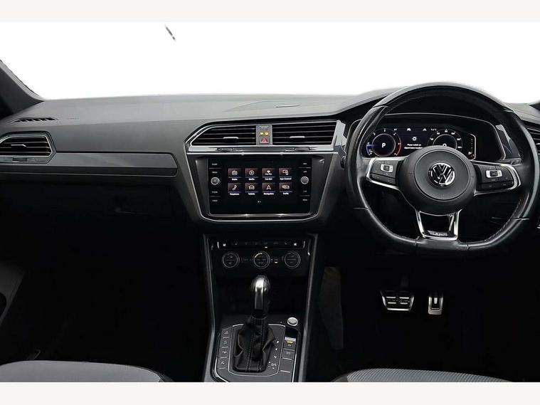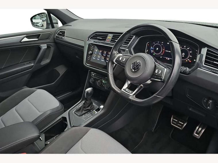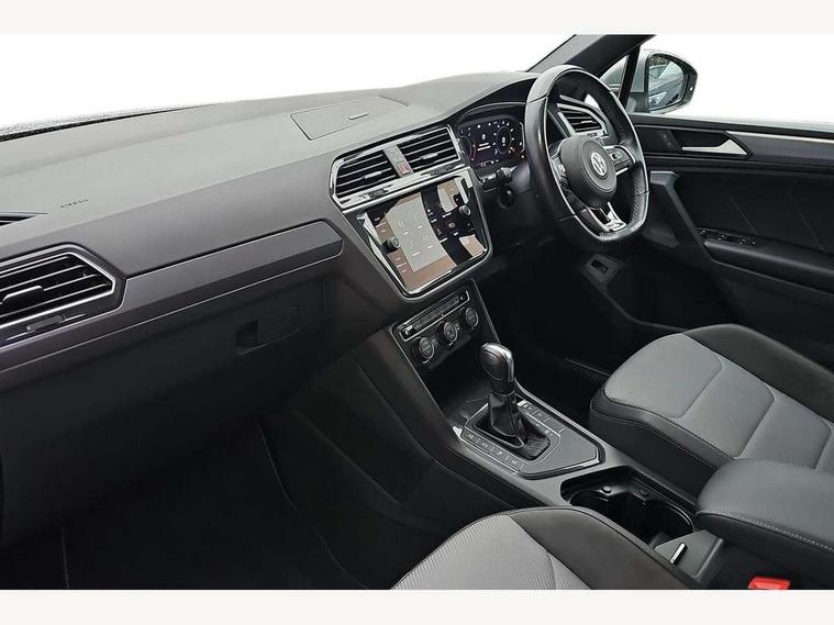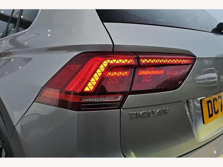 2D/3D map view, Active information display, Adaptive cruise control, App-Connect, Area view with park assist steering and front and rear parking sensors, Bluetooth phone integration system, Car information display, Distance control assist, Driver alert system with fatigue detection, Driver profile selection, Front assist, radar sensor controlled distance monitor, city emergency braking + predictive pedestrian protection, Fully electric tailgate + keyless entry and start, Instrument cluster, Lane assist, Lights on warning, Multifunction computer with visual gear change recommendation for fuel consumption, Outside temperature display, Progressive power assisted steering, Service interval indicator, Speed limiter, Start/Stop function, Warning sound and light for doors and tailgate open, Battery regeneration during braking, Diesel particulate filter, Misfuel prevention device for diesel engine, XDS electronic differential lock for improved traction and handling, 2 x USB connection + USB charging socket, 4 X 20 watt output, DAB Digital radio, SD card slot, Simultaneous pairing of 2 compatible mobile devices, SMS functionality - read, compose and send SMS messages using touch-screen display, Title and cover art display, 3D effect cherry red LED rear tail lights, Aluminium decorative inserts in dash and door panels, Auto dimming interior mirror, Automatic activation of hazard warning lights, Body colour door handles, Body colour door mirrors, Body colour rear spoiler, Body colour side skirt, Body coloured bumpers, Chrome side window surrounds, Chrome trimmed radiator grille, Coming/leaving home lighting function, Dusk sensor + auto driving lights, Electric panoramic sunroof with sunblind, Electrically heated and foldable door mirrors, door mirror puddle lights and reverse activated kerb view adjustment on passenger's door mirror, Front and rear electric windows, Heated rear window, High level 3rd brake light, LED headlights with dynamic light assist daytime running lights and cornering front fog lights, LED rear number plate lights, Piano black front air intake and rear diffuser, R Line body kit, R Line side sills, Rain sensor windscreen wipers, Rear tinted glass from B-pillar backwards approx 65% tinted, Rear windscreen washer and wiper with interval delay, Side skirts and rear bumper with chrome insert, Silver front underbody protection and rear diffuser, Silver roof rails, Trailer Stability Programme, Unique R Line badging, Windscreen wipers/ intermittent wipe + 4 position delay, 12V socket in centre console storage area, 2 cup holders in front, 3 rear headrests, 3 zone climate control, 4 load lashing points, 40:20:40 split folding rear seats, Bag hook in luggage compartment, Black headlining, Foldable front passenger seat backrest, Front + rear carpet mats, Front centre armrest with 12v socket, Front centre armrest with storage + rear 2 air vents, Front seat back storage pockets, Front seat R Line logo with rear seat backrest, Front seatback folding tables, Height/reach adjust steering wheel, Illuminated driver/passenger vanity mirrors, Illuminated scuff plates, Instrument lighting white adjustable panel illumination, Interior light with delay, Isofix Preparation 2 Rear child seats, Leather gear knob, Load through provision with 2 cupholders when folded, Lockable cooled glovebox, Luggage compartment lighting, Map pockets on front seats, Passenger seat height adjuster, Removable luggage cover, Sliding/reclining rear seats, Stainless steel pedals, Storage compartment in driver's door, Storage compartment in passenger's door, Storage compartment in rear doors, Storage compartments in luggage area left and right, Storage tray on dashboard, Sunglasses storage, Three spoke leather trimmed multifunction steering wheel with aluminium inserts and R Line Logo including paddle shift, Unique R Line door sill protectors, Variable boot floor, height adjustable and removable, Ambient lighting pack - Tiguan, R Line styling pack - Tiguan, 3 rear 3 point seatbelts, ABS+EBD+Brake assist, Active bonnet, Active pedestrian safety system, Curtain airbags, Driver/Front Passenger airbags, Driver/Passenger whiplash optimised head restraints, Drivers knee airbag, DTC - Drag torque control, Electronic parking brake with auto hold, ESC with EDL, ASR, EDTC and trailer stabilisation function, First aid kit, Front seat side impact airbags, Front side airbags, Front ventilated disc brakes and rear disc brakes, Head airbag system, Height adjustable front 3 point seatbelts + pretensioners, Hill hold control, Passenger airbag deactivate switch, Passenger knee airbag, Pre crash preventive occupant protection, Rear side airbags, Rigid safety cell with front and rear crumple zones, Two tone horn, Warning sound and light for front seat belts if unfastened, Warning triangle, Alarm with interior protection, Electronic engine immobiliser, Remote central locking with 2 remote folding keys, Chrome door trim inserts, Dark grey decorative inserts in dash and door panel, Piano black decorative inserts in centre console, 20" Suzuka alloy wheels with mobility self sealing tyres + anti theft wheel bolts, Steel space saver spare wheel,