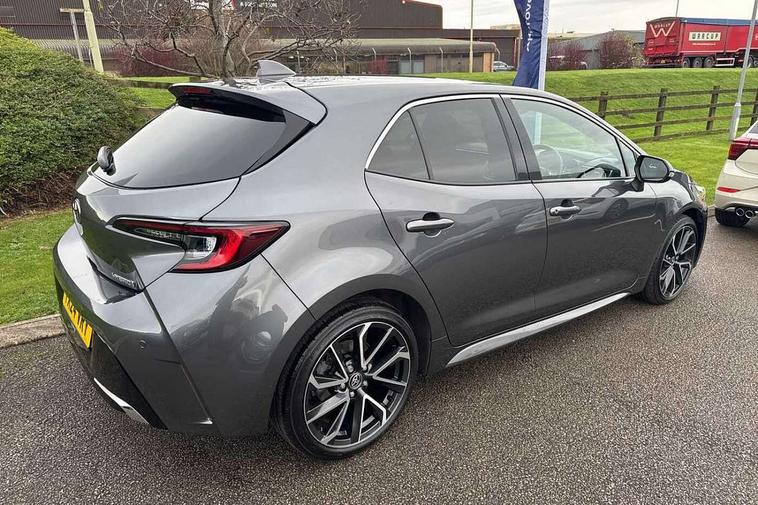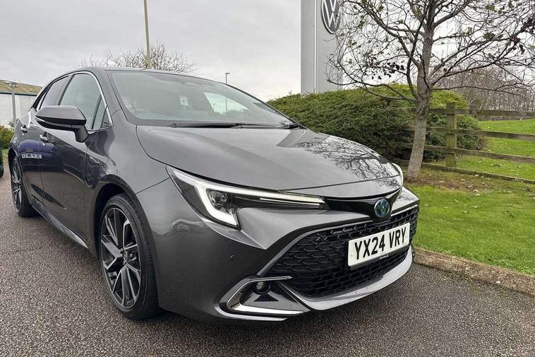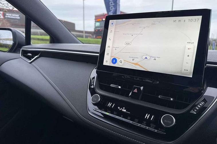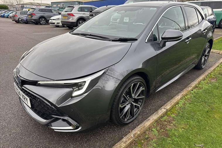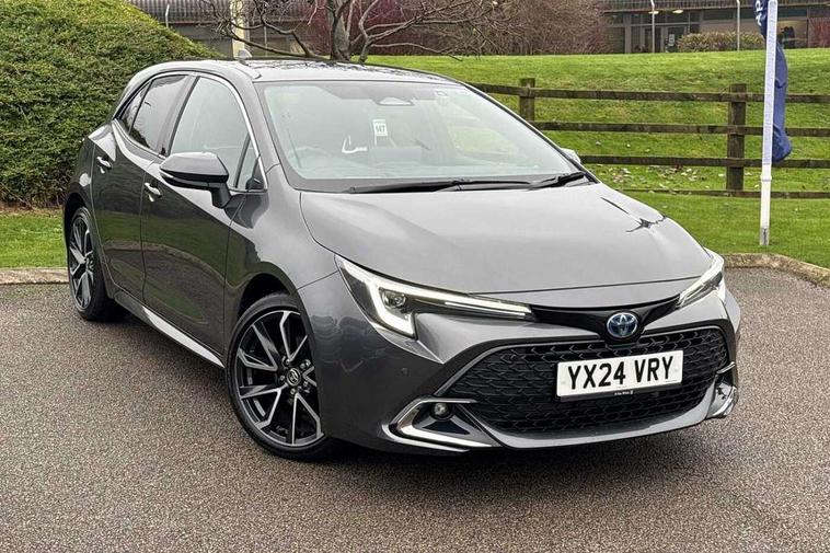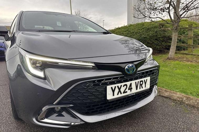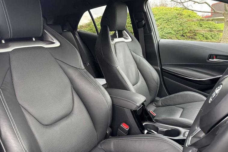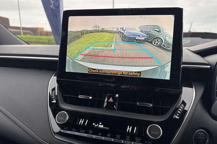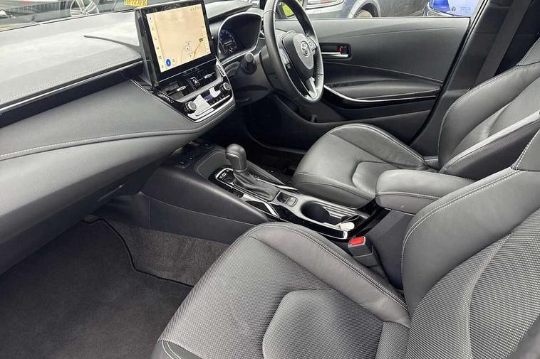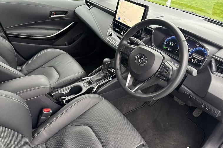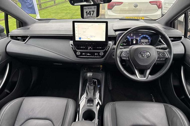 10.5" Multimedia display screen, Blind spot monitor and safe exit assist, Bluetooth telephone connectivity, Connected car functionality upgrade, tracker, remote status and e-care, Drive mode select (Eco, Normal), E-call, Electrically assisted power steering, EV drive indicator, Front and rear parking sensors with auto brake, Full Digital 12.3" TFT Digital Combimeter, Head up Display, Key reminder warning, Lane Departure Alert (LDA) switch on steering wheel, Memory on adjustable speed limiter, MyT connected services, Proactive driving assist (PDA), Rear cross traffic alert, Reversing camera, Smart entry and push button start, Smartphone integration with Apple CarPlay and wired android auto, Tailgate, Toyota remote services, Toyota smart connect navigation, Wireless charger, Gasoline particulate filter, Vehicle Stability Control (VSC), AM/FM radio, DAB Digital radio, Front USB-C in centre console, Front USB-C in dashboard, JBL Premium sound system with 8 speakers, Rear USB-C device charger, Smart voice assist/ Voice recognition, USB and Aux in connectors + 12V front outlet, Adaptive high beam system (AHS), Anti-jam protection on power windows, Auto headlight levelling system, Auto up and down function on all power windows, Automatic folding mirrors, Automatic headlights with high beam assist, Black centre and side air vents, Black metallic meshed front grille, Black toyota logo in front, Body coloured bumpers, Body coloured door mirrors, Body coloured front spoiler, Body coloured outside door handles, COROLLA alloy door scuff plates, Electrochromatic mirror, Follow me home headlights, LED daytime running lights, LED front fog lights, LED High mounted stop light, LED multi beam headlights, LED rear combi lights with LED lightguide, Noise reduction layer on windscreen, Piano black diffuser, Power adjustable heated door mirrors, Power front windows, Power rear windows, Privacy glass with UV filter, Rain sensing wipers, Rear bumper decoration with chrome plated inserts, Rear side wing doors, Rear under guard with chrome ornament, Rear window defogger, Rear window wiper, Reverse tilting door mirrors, Roof spoiler, Satin chrome insert on front air vents, Satin chrome insert on front door assist grips, Satin chrome inserts on rear passenger air vents, Shark fin antenna, Tailgate release with push button, Time adjustment on intermittent wiper, Turning signal integrated indicators in door mirrors, Unique grille pattern, Unique lower skirt, Unique side rocker with black insert, UV-filter on driver and passenger windows, 2 Shopping bag hooks in luggage compartment, 3 rear headrests, 3 seat bench in 2nd row, 3 spoke leather steering wheel with satin insert + gear knob, 4 tie down hooks in luggage compartment, 60/40 split folding rear seat, Adaptive cruise control (ACC) switch on steering wheel, Adjustable speed limiter switch on steering wheel, Audio, multimedia and telephone switches on steering wheel, Black armrest on centre console box, Black gear shift console, Boot light, Centre room light, Driver and front passenger personal light, Driver and passenger assist grip, Driver and passenger seatback pockets, Driver and passenger sun visor with mirror and light, Dual zone automatic air conditioning with ECO mode switch, Front and rear cup and bottle holders, Front door pockets, Front head restraints, Front passenger seat, Front sliding synthetic leather armrest, Heated seats, Illuminated entry system in room lamp, ISOFIX seat fixing (2 fixings on rear outer seats), Leather gear shift with satin chrome on gear shift console, Manual height adjustable for driver and front passenger seat, Manually tilt with sliding driver and front passenger seat, Nanoe-X air purifier, Parcel shelf, Perforated leather upholstery, Pollen filter, Power window switches with satin chrome inserts, Rear air conditioning, Rear armrest with 2 cupholders, Rear passenger coat hooks (2), Remote air conditioning, Satin chrome inside door handles, Satin chrome surround on heater control panel, Satin chrome surround on speedometer, Sliding armrest on centre console box, Slow opening glovebox with lights, Sports seats, Textile floor mats, Tilt/telescopic steering column, Voice recognition switch on steering wheel, Whiplash Injury Lessening (WIL) feature (active headrest) for seats, White ambient lighting on open tray and front cup holder, Toyota safety sense 3 pack - Corolla, 3x3 point rear seatbelts, Adjustable driver and front passenger seat belt extender to top anchor point, Anti lock braking system + Electronic brake force distribution, Brake assist function, Child locks on rear doors, Downhill Assist Control (DAC), Electronic parking brake, Emergency brake light signal (EBS), Front passenger airbag on/off switch, Front seatbelt reminder, HAC-Hill-start Assist Control, Rear seat belt reminder, Seatbelt pretensioners and force limiters, Supplemental restraint system (SRS) 7 airbags - dual driver, dual side curtain, side impact and driver knee airbags, Traction control, Tyre pressure warning system, Acoustic vehicle alert system (AVAS), Alarm with motion sensor and immobilizer, Power passenger window lock, Remote central locking + deadlocks, Satin chrome dash trim, Soft touch texture on upper dashboard, Stitching on lower dashboard, Stitching on upper dashboard, 18" Dark grey machined face 5 double spoke alloy wheels, Tyre repair kit, Unique wheel finish with red wheel cap,