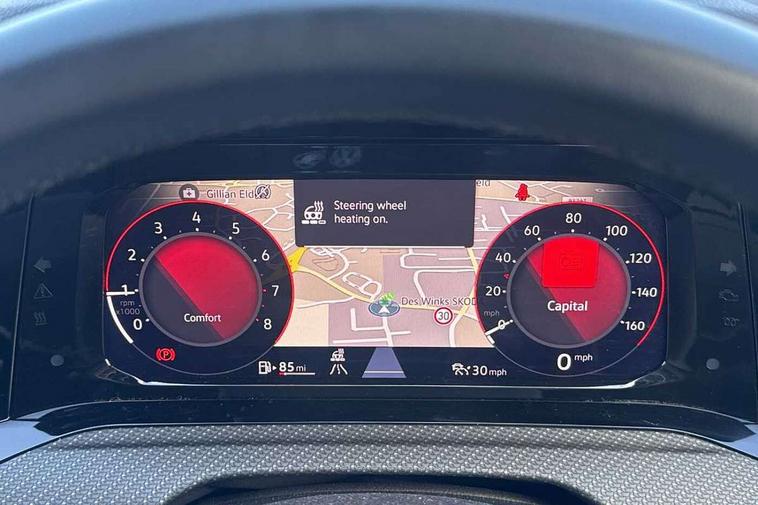 Adaptive cruise control (ACC) with speed limiter and front assist (reacting to vehicles pedestrians and cyclists), Car2X communication, Digital cockpit pro - 10.25" high resolution TFT dash display screen with customizable menus and information, Driver alert system, Dynamic road sign display, eCall - Emergency call service for SOS calls to emergency response, Lane assist, Mobile phone interface with wireless inductive charging function, Multifunction camera for distance control, PAS, Speedo, rev counter, electronic odometer, trip, service interval display, exterior temperature and fuel gauge, Start/Stop function, USB-C ports in the front and rear centre console with increased charging performance, Warning buzzer and light for front seatbelts unfastened, Wireless app connect, Petrol Particulate Filter, XDS electronic differential lock for improved traction and handling, Premium USB cable in choice of either Apple or Android smartphone compatibility, Ambient lighting, exterior illuminated styling elements at the sides, Auto dimming rear view mirror, Automatic headlamp activation with Coming home and Leaving home feature, Automatic headlights, Body colour door handles, Body colour door mirrors with integrated indicators, Body colour rear roof spoiler, Electrically heated and adjustable door mirrors with memory feature, Front and rear electric windows, Heat insulating glass windscreen, Heated rear windscreen, High level 3rd brake light, Highway light, LED License plate illumination, R Line body coloured bumpers, Rain sensor, Rear fog light on one side and reversing lights on both sides, Rear lights incorporating LED technology, Rear side wing doors, Rear tinted glass 65% light absorbing from B pillar backwards, Rear windscreen washer and wiper with interval delay, Welcome light, 12V socket in front centre console, 12V socket in luggage compartment, 3 rear head restraints, 3 seat bench in 2nd row, Ambient lighting - Customisable 30 colour ambient lighting, Black roof lining, Brushed stainless steel pedals, Chrome plated surround to electric mirror button, window switch and air vent surrounds, Drivers and front passengers sun visors with vanity mirrors, Front + rear carpet mats, Front centre armrest with storage compartment, Front cupholders x 2, Front passenger seat, Front reading lights x 2 incorporating LED technology, Front seat lumbar support adjuster, Front sports seats, Glovebox, Height adjustable front seats, Height and reach adjustable steering wheel, Isofix child seat preparation for 2 rear child seats and front passenger seat, Luggage compartment lighting, R Line door and side trim panel, R Line front seats integrated head restraints, R-Line leather wrapped multi function sports heated steering wheel, Removable luggage compartment cover, Sardegna cloth upholstery with front and outer rear seats Art Velour inner sides of bolsters, Split folding backrest with centre armrest and unsplit rear seat bench, Titanium black instrument panel, Woven fabric storage compartments in front and rear doors, 3 point height adj front seatbelts + pretensioners, 3 rear three point seatbelts, ABS, Child locks on rear doors, Driver and front passenger airbag with front passenger airbag deactivation, Drivers and front passengers safety optimised head restraints, Electronic parking brake with auto hold, ESC (Electronic Stability Control), Extended pedestrian protection measures, Front and rear passengers curtain airbag system including front side airbags, Front centre airbag, Front disc brakes, Front side airbags with curtain airbags, Rear disc brakes, Two tone horn, Tyre pressure monitoring system, Alarm with interior protection and deactivation via infotainment system, Electronic engine immobiliser, Carbon grey decorative inserts in dash and front door trim panels, High gloss black centre console, Space and weight saver spare wheel,