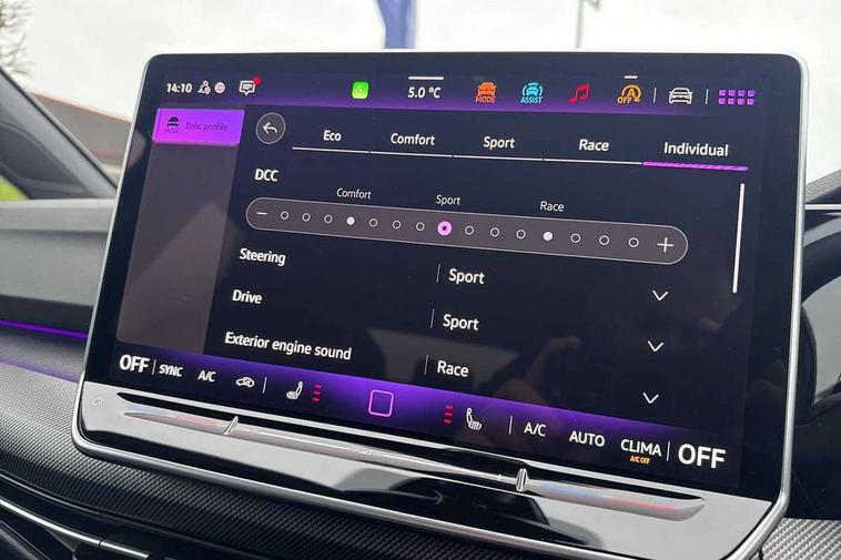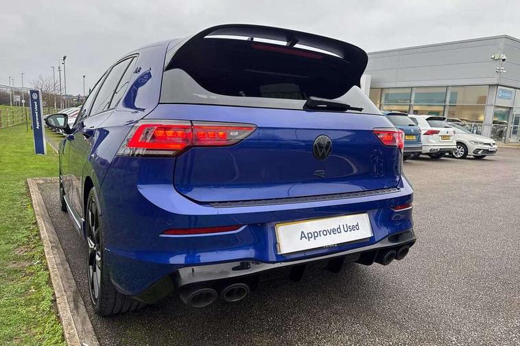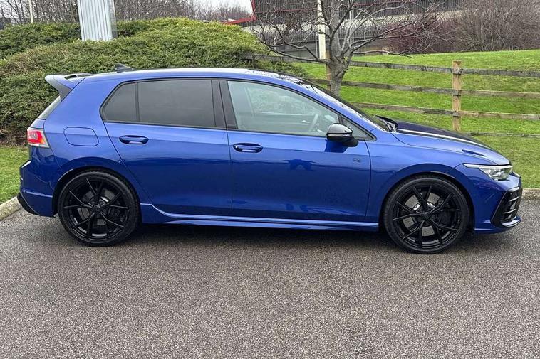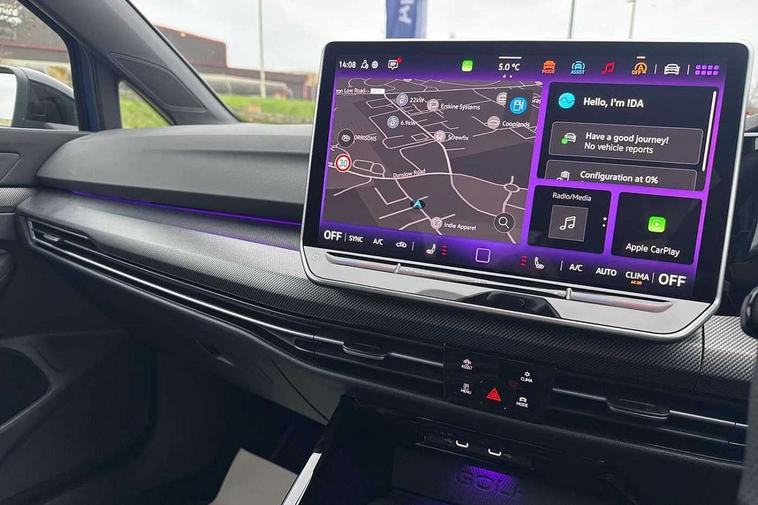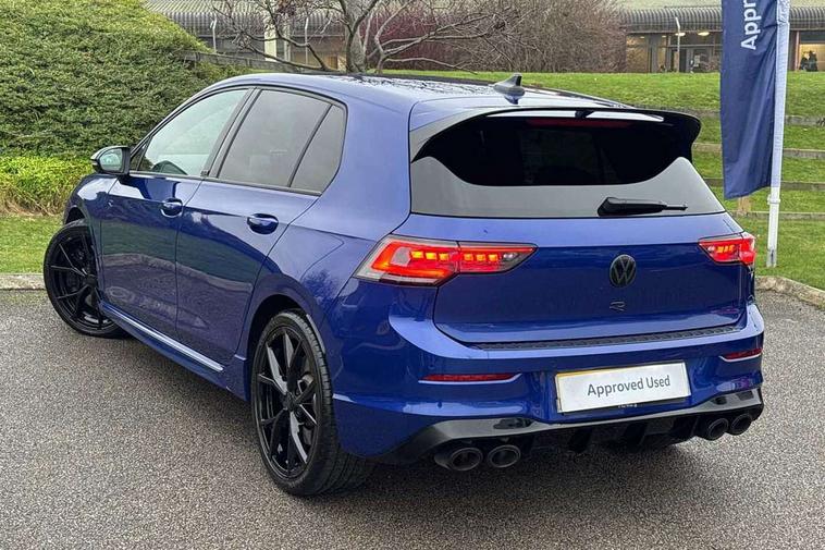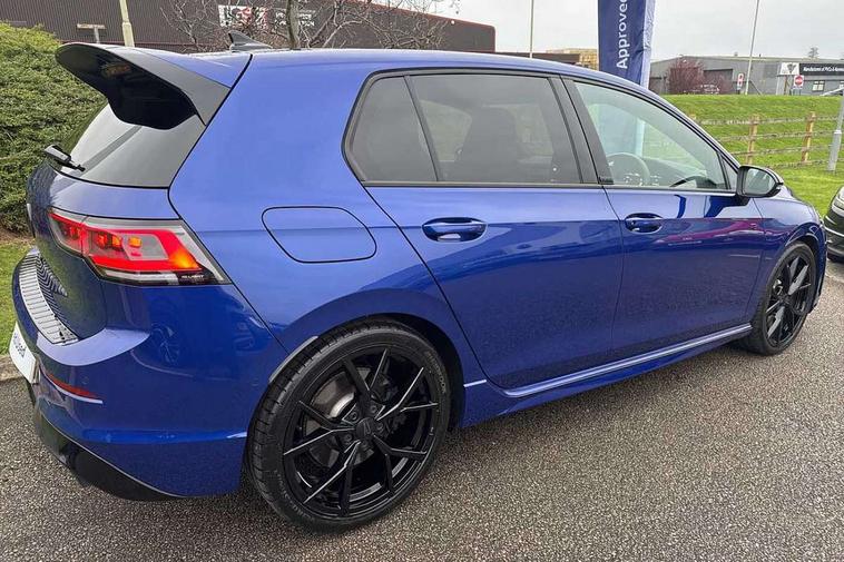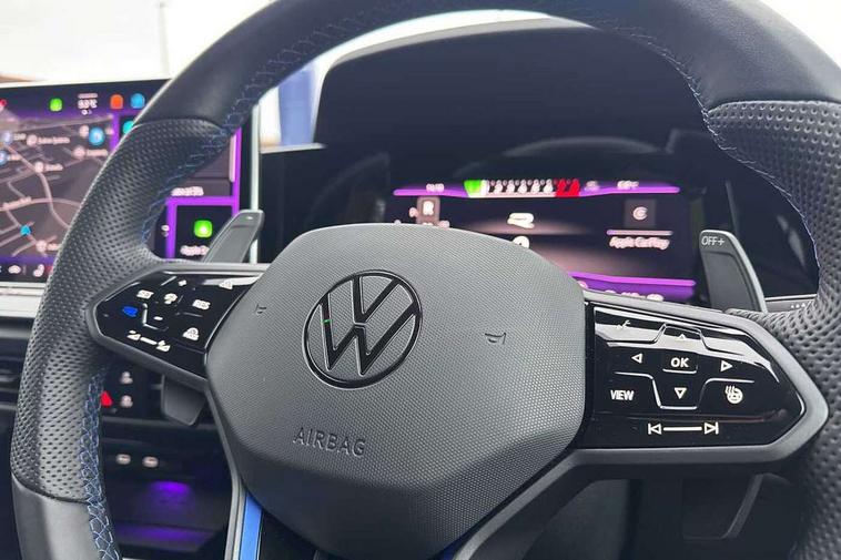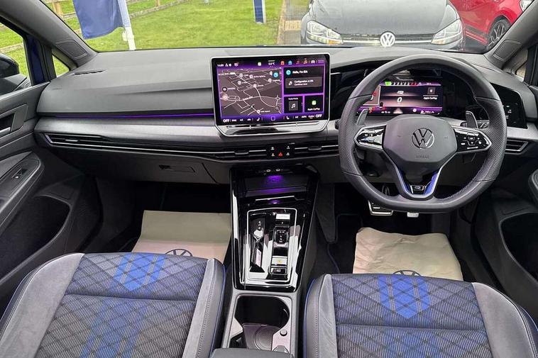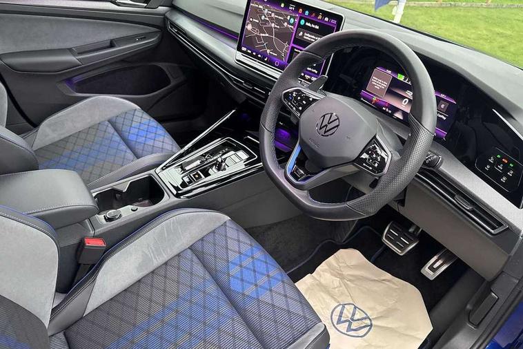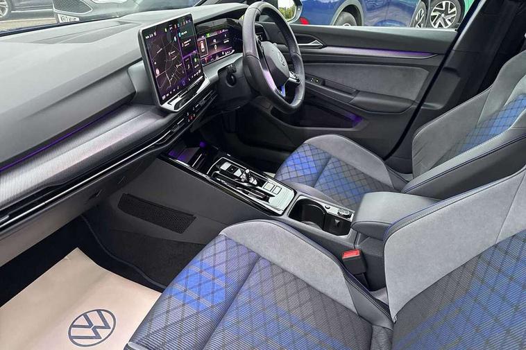 Activated carbon canister, Adaptive cruise control (ACC), Advanced driver attention and drowsiness monitor, Dynamic road sign display, E-Sim card for online connectivity, eCall emergency call system, Electronic maximum speed limit increased to 270 km/h, includes driving Modes 'drift' and 'special', larger roof spolier and GPS laptimer + G-Meter, Multi-color Digital cockpit pro, selection of different info profile possible, Multifunction front facing camera for distance control, Navigation system, Oncoming vehicle braking when turning including swerve support, Side assist blind spot lane change system, rear traffic alert and exit warning system, Speed limiter, Speedo, rev counter, electronic odometer, trip, service interval display, exterior temperature and fuel gauge, Traffic jam assist, Voice enhancer and voice control, Warning signal and warning light for front and rear seatbelts not fastened, We connect plus preparation, We connect preparation, Wireless app connect, All wheel drive - 4Motion, Petrol Particulate Filter, Start-stop system with battery regeneration (recuperation - energy recovery during braking), XDS electronic differential lock for improved traction and handling, 2 USB C ports in front, 2 USB charging sockets on the centre console in the rear charging capacity upto 45W, Digital radio reception (DAB), Diversity antenna for FM reception, Gaming platform via car app, Infotainment system with 12.9" display, Mobile phone interface with inductive charging feature, 3rd brake light, Auto dimming rear view mirror, Automatic headlamp activation with Coming home and Leaving home feature, Black badge on B-pillar, Black mirror caps, Black strips on radiator grille and headlights, Body colour door handles, Darkened headlights, Darkened R Logos and VW logos in front, rear and on fender, Exterior mirrors convex on the left and aspherical on the right, Front and rear electric windows, Front fog lamps and cornering light, Heat insulating windshield made of laminated glass, Illuminated lighting animation with wake up/goodbye scenario, LED matrix headlights with ambient light V2, advanced high beam, dynamic range contol with cornering, LED rear lamp with indicator, poor weather, LED separate daytime running light, R name plate, Rain sensor, Rear fog light on one side and reversing lights on both sides, Rear side wing doors, Rear tinted glass 65% light absorbing from B pillar backwards, Rear windscreen washer and wiper with interval delay, Remote electrically foldable door mirrors, puddle lights and reverse activated passenger's door mirror, Welcome light with surround lighting, 12V socket in front centre console, 12V socket in luggage compartment, 3 rear head restraints, 3 seat bench in 2nd row, 30 colour ambient lighting, illuminated center console storage compartment in front, Air care climatronic 3 Zone automatic climate control with rear air conditioning control panel, Aluminium gearshift handle, Brushed stainless steel pedals, Chrome plated radiator grille inserts, air vent surrounds and light switch surrounds, Entry lights, Front + rear black carpet mats, Front centre armrest, Integrated front head restraints, ISOFIX anchors for child seats on outer rear bench seats and on front passanger seat compatible for i-Size, Luggage compartment lighting, Rear cupholder and loadthough, Single front passenger seat, Soul black instrument panel, Soul black roof lining, Split folding backrest with centre armrest and unsplit rear seat bench, Sun visors with illuminated vanity mirrors, Driver assistance pack - Golf Estate/Hatchback Auto, R styling pack - Golf, Technology park and comfort pro package - Golf Hatchback, 3 point height adj front seatbelts + pretensioners, 3 rear three point seatbelts, ABS, Autonomous emergency braking front assist with pedestrian and cyclist monitoring, Child locks on rear doors, Driver and front passenger airbag with front passenger airbag deactivation, Electronic parking brake with auto hold, ESC (Electronic Stability Control), Extended pedestrian protection measures, Front and rear black brake calipers with darkened R-logo, Hill start assist, Rear disc brakes, Two tone horn, Tyre pressure loss indicator, Volkswagen roadside assistance, Anti theft wheel bolts, Preparation for alcohol interlock, 19" Estoril alloy wheels in black with progressive steering, Sporty vehicle dynamics, Tool kit for tyre mobility set, Tyre mobility kit Includes 12V compressor and tyre sealant, Wheel hub cover with darkened R-logo,