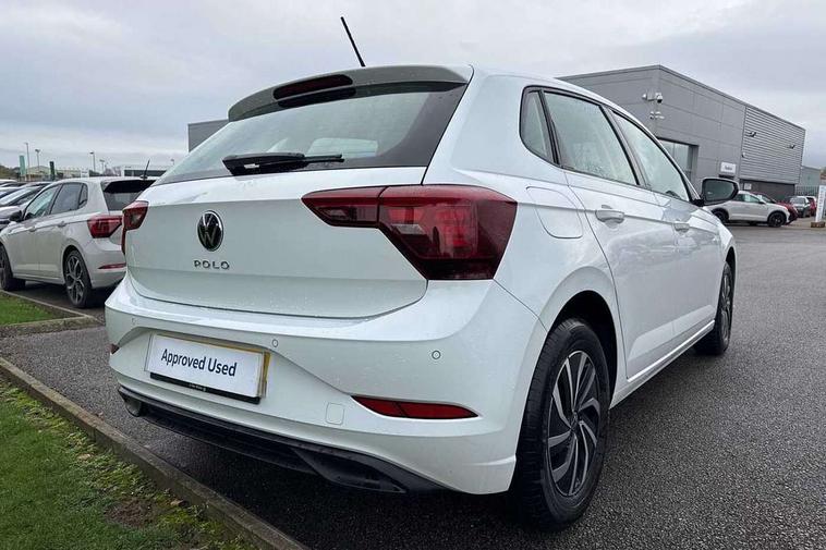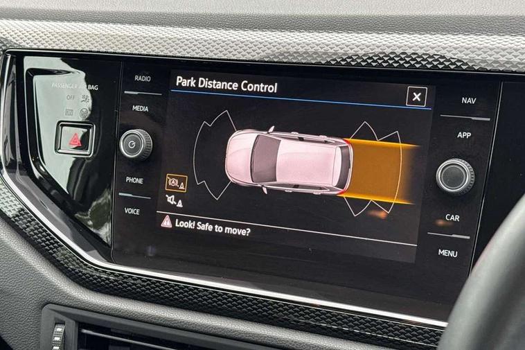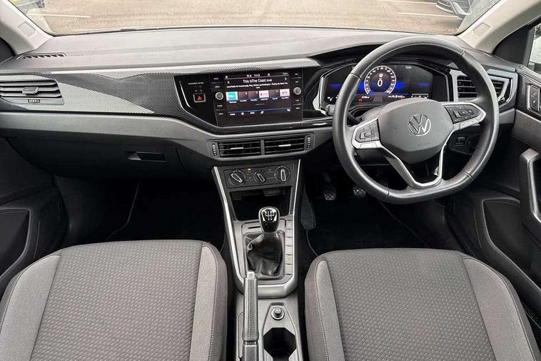 Advanced driver attention and drowsiness monitor, Bluetooth mobile phone interface, Cruise control + speed limiter, Dynamic road sign display, Emergency call service, Lane keeping system Lane Assist, Multifunction camera, Power assisted speed sensitive steering, Preparation for navigation system with media and internet package, Preparation for We connect and We connect plus, Speedo and rev counter, electronic odometer, trip, service interval display and exterior temperature gauge, Standard rear axle, Trip computer, Warning signal and warning light for front and rear seatbelts not fastened, Washer fluid level indicator, Wireless app connect, Front wheel drive, Rear shock absorpion, Start-stop system with battery regeneration (recuperation - energy recovery during braking), DAB Digital radio, Diversity antenna for FM reception, Front and rear 6 speakers, Automatic dimming interior rear view mirror, Automatic headlight control with LED separate daytime running lights with coming/leaving home function, Body colour bumpers with chrome inserts, Body colour door handles, Body colour door mirrors, Electric front windows, Engine badge deletion, Headlight range adjustment, Heat insulating and laminated safety glass windshield, Heat insulating darkened glass in side and rear windows, LED Headlights, LED rear combination lamps, Power folding adjustable/heated exterior mirrors and front passenger exterior mirror lowering function, Rain sensor, Rear electric windows, Rear fog light, Rear side wing doors, Rear windscreen washer and wiper with interval delay, Third brake light, 12V power socket in centre console, 2 front and 2 rear reading lights with switch off delay and dimmer, 2 USB-C ports in the front, 2 USB-C charging sockets on the center console in the rear, 3 rear head restraints, 60/40 split folding rear seat and rear seat bench not split, Ceramique roof lining, Chrome plated radiator grille inserts, air vent surrounds and light switch surrounds, Door and side trim panel, Driver and front passenger seat height adjustment, Driver/passenger sunvisors with illuminated vanity mirrors, Front centre armrest, Front seat backrest storage pockets, Front standard seats, Handbrake lever handle in leather, Hartley/Thomas cloth upholstery, Headliner in recycled material, Isofix child seat preparation easy-fit (for two outer rear seats, and front passenger seat) compatible with I-size, Leather trimmed gear knob, Luggage compartment cover, Luggage compartment lighting, Removable luggage compartment floor, Single front passenger seat, Standard climatic zones, Standard pedal cluster, Three spoke leather wrapped multifunction steering wheel, Light and vision pack - Polo, 3 point height adj front seatbelts + pretensioners, 3x3 point rear seatbelts, ABS, Driver and front passenger airbag with front passenger airbag deactivation, Drivers and front passengers safety optimised head restraints, ESC (Electronic stability control) + EDL (Electronic Differntial lock) and ASR (Traction control), Extended and predictive pedestrian/ cyclist protection, Front assist with autonomous emergency braking (for Adaptive Cruise Control ACC up to 130 mph), Front curtain and side airbags with center airbag, Front disc brakes, Hill hold control, Manual child lock in rear doors, Rear drum brakes, Single tone horn, Tyre pressure loss indicator, Alarm with interior protection, Anti-theft alarm system with interior monitoring, backup horn, and towing protection, Anti-theft wheel bolts, Electronic engine immobiliser, Lava stone black gloss/matt decorative inserts in dash and front door panels, Low rolling resistance tyres,