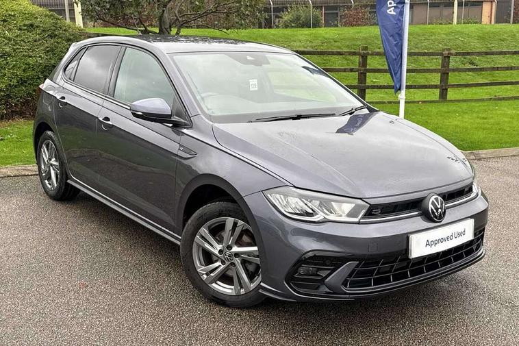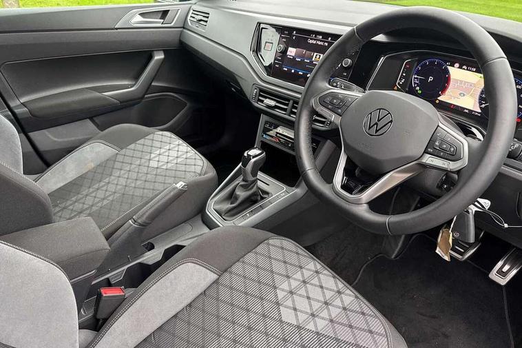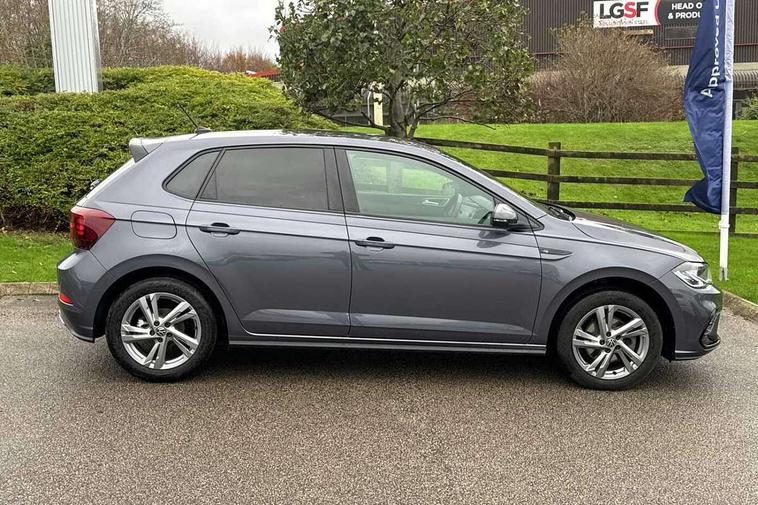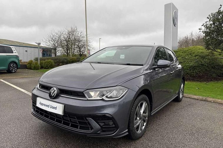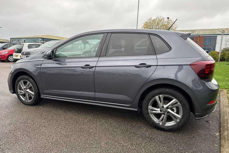 Adaptive cruise control with follow-to-stop and speed limiter, Advanced driver attention and drowsiness monitor, Bluetooth mobile phone interface, Digital Cockpit Pro with 10.25" Display, Dynamic road sign display, Emergency call service, Multifunction camera, Power assisted speed sensitive steering, Preparation for We connect and We connect plus, Speedo and rev counter, electronic odometer, trip, service interval display and fuel gauge, Standard rear axle, Travel Assist - Lane keeping system and traffic jam assist, Travel assist including emergency assist, Trip computer, Warning signal and warning light for front and rear seatbelts not fastened, Washer fluid level indicator, Wireless app connect, Front wheel drive, Rear shock absorpion, Start-stop system with battery regeneration (recuperation - energy recovery during braking), DAB Digital radio, Diversity antenna for FM reception, Front and rear 6 speakers, Body colour bumpers, Body colour door handles, Electric front windows, Front scuff plates with R-Line logo, Heat insulating glass windscreen, Power folding adjustable/heated exterior mirrors and front passenger exterior mirror lowering function, Rear electric windows, Rear fog light, Rear side wing doors, Rear windscreen washer and wiper with interval delay, Third brake light, 12V power socket in centre console, 2 USB-C ports in the front, 2 USB-C charging sockets on the center console in the rear, 3 rear head restraints, 60/40 split folding rear seat and rear seat bench not split, Air care climatronic air conditoning system with active combination filter and 2-zone temperature control, Black roof lining, Carpet mats, front and rear, Chrome plated radiator grille inserts, air vent surrounds and light switch surrounds, Door and side trim panel, Driver and front passenger seat height adjustment, Driver/passenger sunvisors with illuminated vanity mirrors, Front centre armrest, Front footwell illumination, Front seat backrest storage pockets, Front sports comfort seats, Handbrake lever handle in leather, Headliner in recycled material, Isofix child seat preparation easy-fit (for two outer rear seats, and front passenger seat) compatible with I-size, Karoso artvelours cloth upholstery, Leather trimmed gear knob, LED interior light with switch off delay and dimmer, 2 reading lights front and rear, Luggage compartment cover, Luggage compartment floor, Luggage compartment lighting, Lumbar adjustment for front seats, Single front passenger seat, Stainless steel pedals, Standard pedal cluster, Three spoke leather wrapped multifunction steering wheel with shifting paddles, Light and sight pack - Polo R-Line/Black Edition, 3 point height adj front seatbelts + pretensioners, 3x3 point rear seatbelts, ABS, Driver and front passenger airbag with front passenger airbag deactivation, Drivers and front passengers safety optimised head restraints, ESC (Electronic stability control) + EDL (Electronic Differntial lock) and ASR (Traction control), Extended and predictive pedestrian/ cyclist protection, Front curtain and side airbags with center airbag, Front/rear disc brakes, Hill hold control, Manual child lock in rear doors, Single tone horn, Tyre pressure loss indicator, Alarm with interior protection, Anti-theft alarm system with interior monitoring, backup horn, and towing protection, Anti-theft wheel bolts, Electronic engine immobiliser, Chrome applications on rotary light, mirror adjustment, window regulator switches, outlet with frame in black, Dark grey anodised matt decorative inserts in dash and front door panels, 16" Coventry alloy wheels, Low rolling resistance tyres,