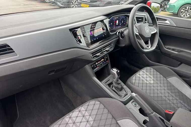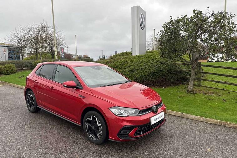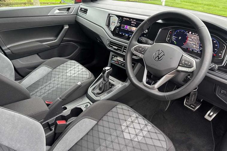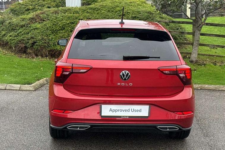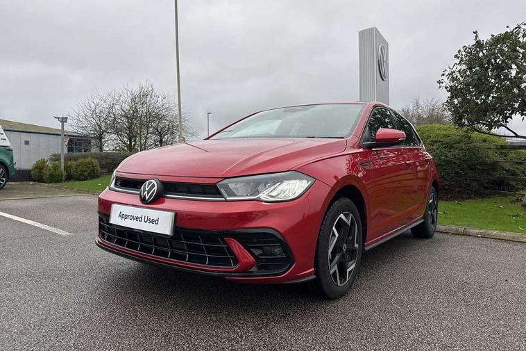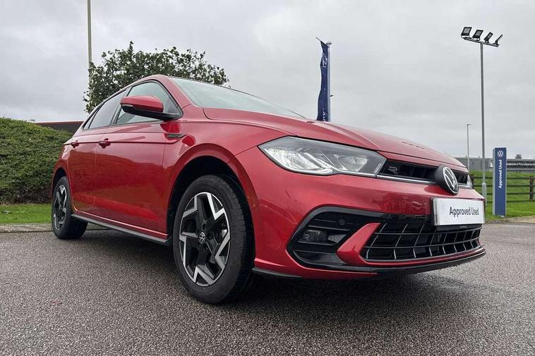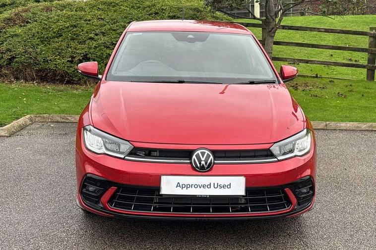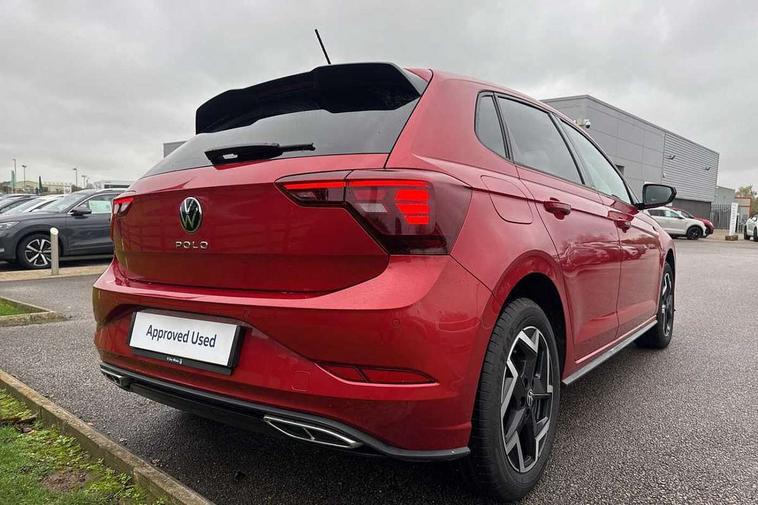 Adaptive cruise control with follow-to-stop and speed limiter, Advanced driver attention and drowsiness monitor, Bluetooth mobile phone interface, Digital Cockpit Pro with 10.25" Display, Dynamic road sign display, Emergency call service, Multifunction camera, Power assisted speed sensitive steering, Preparation for We connect and We connect plus, Speedo and rev counter, electronic odometer, trip, service interval display and fuel gauge, Standard rear axle, Travel Assist - Lane keeping system and traffic jam assist, Travel assist including emergency assist, Trip computer, Warning signal and warning light for front and rear seatbelts not fastened, Washer fluid level indicator, Wireless app connect, Front wheel drive, Rear shock absorpion, Start-stop system with battery regeneration (recuperation - energy recovery during braking), DAB Digital radio, Diversity antenna for FM reception, Front and rear 6 speakers, Body colour bumpers, Body colour door handles, Electric front windows, Front scuff plates with R-Line logo, Heat insulating glass windscreen, Power folding adjustable/heated exterior mirrors and front passenger exterior mirror lowering function, Rear electric windows, Rear fog light, Rear side wing doors, Rear windscreen washer and wiper with interval delay, Third brake light, 12V power socket in centre console, 2 USB-C ports in the front, 2 USB-C charging sockets on the center console in the rear, 3 rear head restraints, 60/40 split folding rear seat and rear seat bench not split, Air care climatronic air conditoning system with active combination filter and 2-zone temperature control, Black roof lining, Carpet mats, front and rear, Chrome plated radiator grille inserts, air vent surrounds and light switch surrounds, Door and side trim panel, Driver and front passenger seat height adjustment, Driver/passenger sunvisors with illuminated vanity mirrors, Front centre armrest, Front footwell illumination, Front seat backrest storage pockets, Front sports comfort seats, Handbrake lever handle in leather, Headliner in recycled material, Isofix child seat preparation easy-fit (for two outer rear seats, and front passenger seat) compatible with I-size, Karoso artvelours cloth upholstery, Leather trimmed gear knob, LED interior light with switch off delay and dimmer, 2 reading lights front and rear, Luggage compartment cover, Luggage compartment floor, Luggage compartment lighting, Lumbar adjustment for front seats, Single front passenger seat, Stainless steel pedals, Standard pedal cluster, Three spoke leather wrapped multifunction steering wheel with shifting paddles, Light and sight pack - Polo R-Line/Black Edition, 3 point height adj front seatbelts + pretensioners, 3x3 point rear seatbelts, ABS, Driver and front passenger airbag with front passenger airbag deactivation, Drivers and front passengers safety optimised head restraints, ESC (Electronic stability control) + EDL (Electronic Differntial lock) and ASR (Traction control), Extended and predictive pedestrian/ cyclist protection, Front curtain and side airbags with center airbag, Hill hold control, Manual child lock in rear doors, Single tone horn, Tyre pressure loss indicator, Alarm with interior protection, Anti-theft alarm system with interior monitoring, backup horn, and towing protection, Anti-theft wheel bolts, Electronic engine immobiliser, Chrome applications on rotary light, mirror adjustment, window regulator switches, outlet with frame in black, Dark grey anodised matt decorative inserts in dash and front door panels, 16" Coventry alloy wheels, Low rolling resistance tyres,
