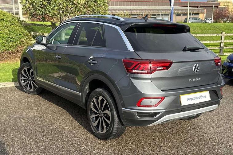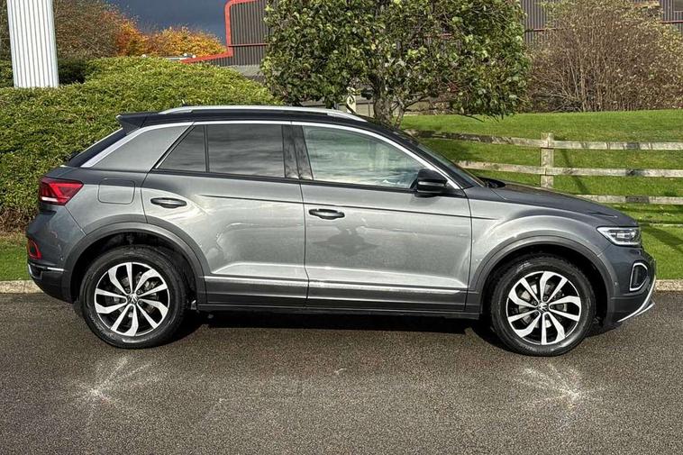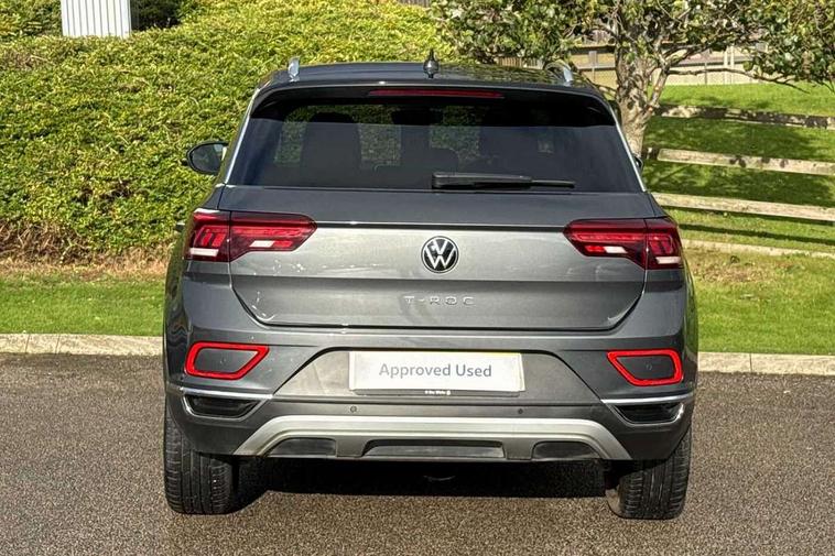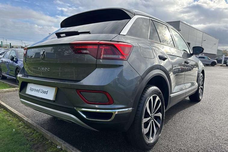 10.25" Digital cockpit pro, Bluetooth mobile phone interface, Driver alert system with fatigue detection, Driver tips and journey analysis, Emergency call service, Lane keeping system Lane Assist, Modified key software - reduce switch off time for key status change to Long no motion, Online services, Park assist including front and rear parking sensors, Service interval indicator, Tailgate/trunk lid release from outside, Think blue trainer driver tips and journey analysis, Warning sound and light for front seatbelts unfastened, Wireless app connect, Battery regeneration during braking, Start/stop function with battery regeneration, Diversity antenna for FM reception, Music playback - MP3, WMA and AAC files, Premium USB cable in choice of either Apple or Android smartphone compatibility, SD card slot, Simultaneous pairing of 2 compatible mobile devices, Title and cover art display, We Connect and We Connect Plus functionality, 3rd brake light, Auto dimming interior rear view mirror, Automatic hazard lights activation under emergency braking, Automatic headlight control with LED separate daytime running lights with coming/leaving home function, Body colour sports bumpers with silver metallic underbody fascia, Dynamic headlight range control with self adjusting whilst driving, Extended roof spoiler, Exterior mirrors aspherical on driver side, convex on front passenger side, External USB type C socket and charging sockets, Front windscreen wiper with intermittent wipe and 4 position delay, Heated rear window, LED rear combination lamps, LED rear number plate lights, LED tail lamp rear comination lamps, Light mode for poor weather, rain, fog or snow, Power windows with comfort operation and circuit breaker, Rain sensor, Rear exhaust tailpipe, Rear fog light on one side and reversing lights on both sides, Rear side wing doors, Rear wash/wipe with intermittent wipe setting, Remote electrically foldable door mirrors, puddle lights and reverse activated passenger's door mirror, 12V power socket in centre console, 3 rear head restraints, 3 seat bench in 2nd row, 4 load lashing points in luggage compartment, Air care climatronic air conditoning system with active combination filter and 2-zone temperature control, Chrome plated radiator grille inserts, air vent surrounds and light switch surrounds, Door and side trim panel with leatherette insert, Drawer under drivers seat, Front + rear carpet mats, Front centre armrest, Front comfort sports seats, Front cupholders x 2, Front footwell illumination, Instrument lighting, white adjustable panel illumination, Interior ambient lighting and surround lighting, Interior light delay, Isofix child seat preparation, Leather gearshift handle, LED interior light with switch off delay/dimmer and 2 front/rear LED reading lights, Load-through provision with cup holder when folded down ('Unsplit rear seat bench, split folding backrest, with centre armrest), Luggage compartment lighting, Non-folding front passenger seat backrest, Single front passenger seat, Storage compartment in left and right luggage area, Storage compartment in rear doors, Storage compartments in driver and front passenger doors, Sunvisors with illuminated vanity mirrors, Variable boot floor, height adjustable and removable, Driver assistance pack without proactive passenger protection - T-Roc, 3 point height adj front seatbelts + pretensioners, 3 point seatbelts in outer rear with ECE label, ABS, Child locks on rear doors, Driver and front passenger airbag with front passenger airbag deactivation, Driver and front passenger safety-optimised head restraints, Drivers seatbelt reminder, Electronic parking brake, Electronic Stability Control (ESC) inc EDL (Electronic Differential Lock) and ASR (Traction Control), Front and rear passengers curtain airbag system including front side airbags, Front assist with city emergency braking and pedestrian monitoring, Front seat side impact airbags, Predictive pedestrian protection, Rear disc brakes, Single tone horn, Tyre pressure loss indicator, Volkswagen roadside assistance, Anti-theft alarm system with interior monitoring, backup horn, and towing protection, Remote central locking with SAFELOCK, radio remote control with 2 remote control folding keys, Trims for alloy wheels,