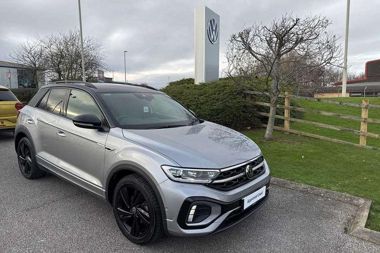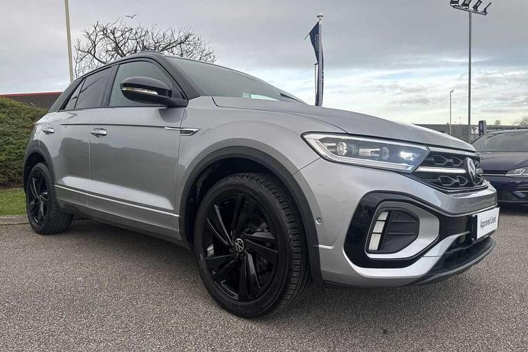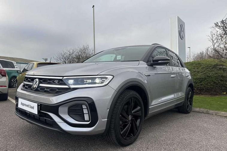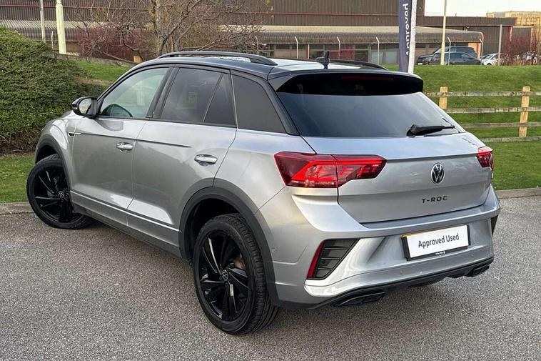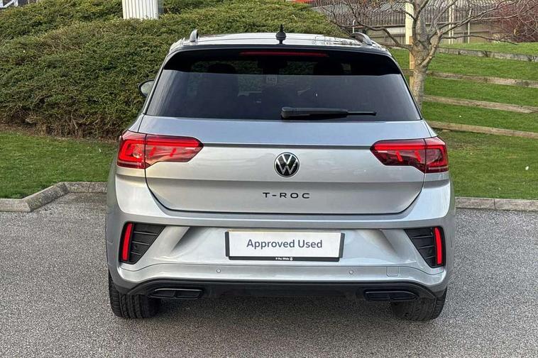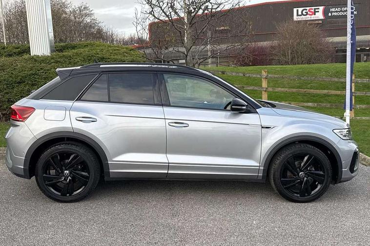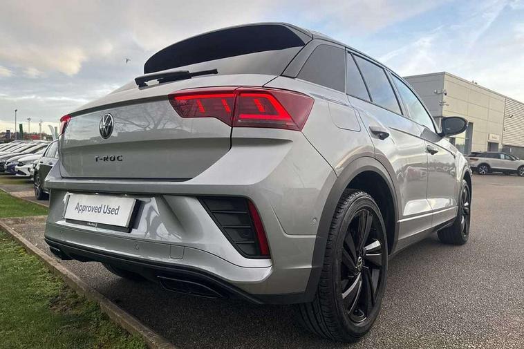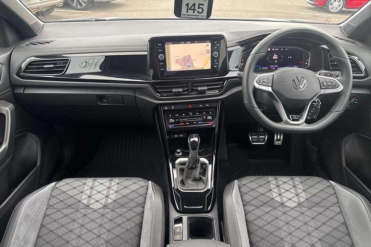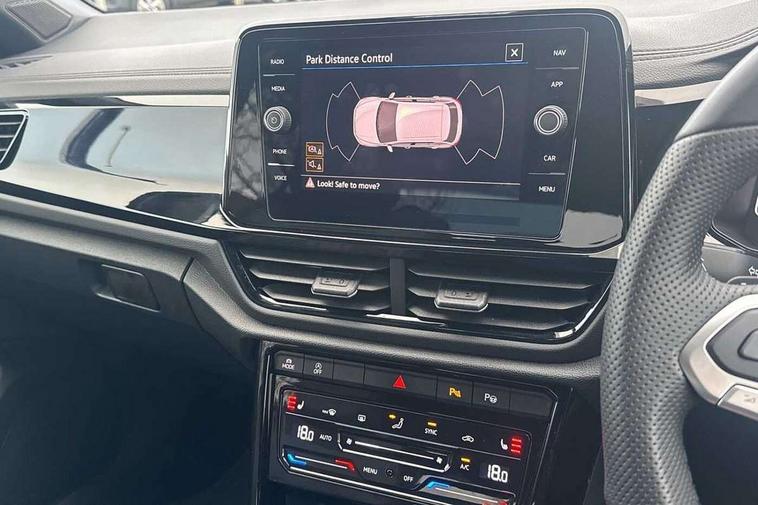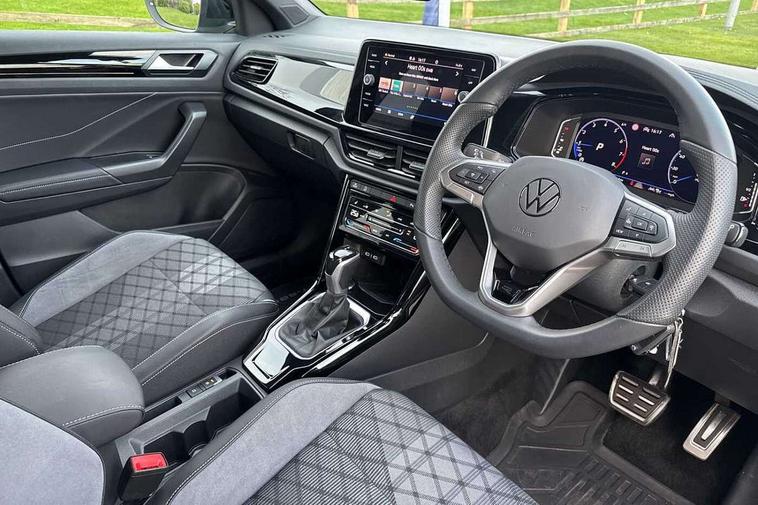 10.25" Digital cockpit pro, Advanced driver attention and drowsiness monitor, Emergency call service, Lane keeping system Lane Assist, Mobile phone interface, Modified key software - reduce switch off time for key status change to Long no motion, Online services, Park assist including front and rear parking sensors, Power assisted speed sensitive steering, Service interval indicator, Tailgate/trunk lid release from outside, Think blue trainer driver tips and journey analysis, Warning sound and light for front seatbelts unfastened, Wireless app connect, Battery regeneration during braking, Rear shock absorption chassis with increased ride height, Start/stop function with battery regeneration, DAB Digital radio, Diversity antenna for FM reception, Front and rear 6 speakers, Music playback - MP3, WMA and AAC files, Premium USB cable in choice of either Apple or Android smartphone compatibility, SD card slot, Simultaneous pairing of 2 compatible mobile devices, Title and cover art display, We Connect and We Connect Plus functionality, Auto dimming interior rear view mirror, Automatic hazard lights activation under emergency braking, Automatic headlight control with LED separate daytime running lights with coming/leaving home function, Dynamic cornering light, Electrically adjustable and heated door mirrors, Extended roof spoiler, Exterior mirrors aspherical on driver side, convex on front passenger side, External USB type C socket and charging sockets, Front windscreen wiper with intermittent wipe and 4 position delay, Heated rear window, Illuminated front grille, IQ LED matrix headlights, LED 3rd brake light, LED rear number plate lights, LED rear tail lights with dynamic turn signal, Light mode for poor weather, rain, fog or snow, Power windows with comfort operation and circuit breaker, R-Line design body coloured bumpers, Rain sensor, Rear exhaust tailpipe, Rear fog light on one side and reversing lights on both sides, Rear side wing doors, Rear wash/wipe with intermittent wipe setting, Remote electrically foldable door mirrors, puddle lights and reverse activated passenger's door mirror, 12V power socket in centre console, 3 rear head restraints, 3 seat bench in 2nd row, 4 load lashing points in luggage compartment, Air care climatronic air conditoning system with active combination filter and 2-zone temperature control, Artvelours cloth upholstery, Black roof lining, Chrome plated radiator grille inserts, air vent surrounds and light switch surrounds, Door and side trim panel with leatherette insert, Drawer under drivers seat, Driver seat height adjust, Driver's seat lumbar support, Front + rear carpet mats, Front centre armrest, Front comfort sports seats, Front cupholders x 2, Front footwell illumination, Front reading light, Front scuff plates with R Line logo, Front seat back storage pockets, Glove compartment door with light, Instrument lighting, white adjustable panel illumination, Interior ambient lighting and surround lighting, Interior light delay, Isofix child seat preparation, Leather gearshift handle, Leather wrapped multifunction steering wheel with paddle shift, Load-through provision with cup holder when folded down ('Unsplit rear seat bench, split folding backrest, with centre armrest), Luggage compartment lighting, Non-folding front passenger seat backrest, Passenger seat height adjuster, Passenger seat lumbar support, Single front passenger seat, Stainless steel pedals, Storage compartment in left and right luggage area, Storage compartment in rear doors, Storage compartments in driver and front passenger doors, Sunvisors with illuminated vanity mirrors, Variable boot floor, height adjustable and removable, Winter pack without heated windscreen washer jets - T-Roc, 3 point height adj front seatbelts + pretensioners, 3 point seatbelts in outer rear with ECE label, ABS, Child locks on rear doors, City emergency braking and pedestrian monitoring, Driver and front passenger airbag with front passenger airbag deactivation, Driver and front passenger safety-optimised head restraints, Drivers seatbelt reminder, Electronic parking brake, Electronic Stability Control (ESC) inc EDL (Electronic Differential Lock) and ASR (Traction Control), Front and rear passengers curtain airbag system including front side airbags, Front disc brakes, Hill start assist, Predictive pedestrian protection, Rear disc brakes, Two tone horn, Tyre pressure loss indicator, Volkswagen roadside assistance, Tool kit, Trims for alloy wheels, Tyre mobility kit including compressor and sealing foam,
