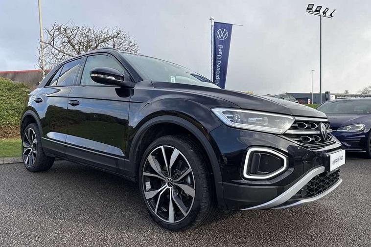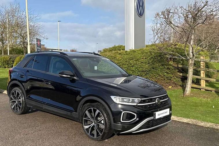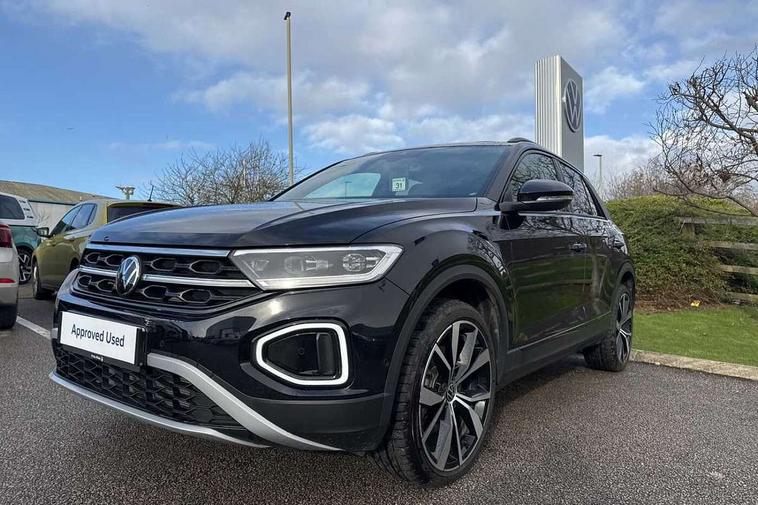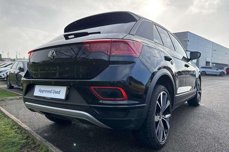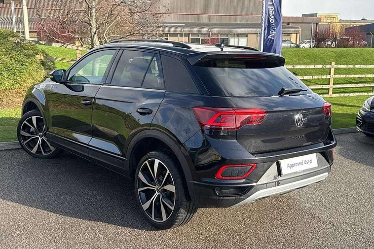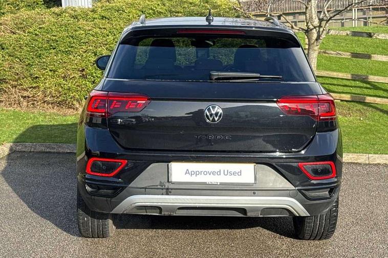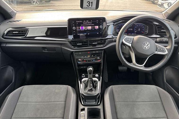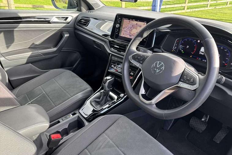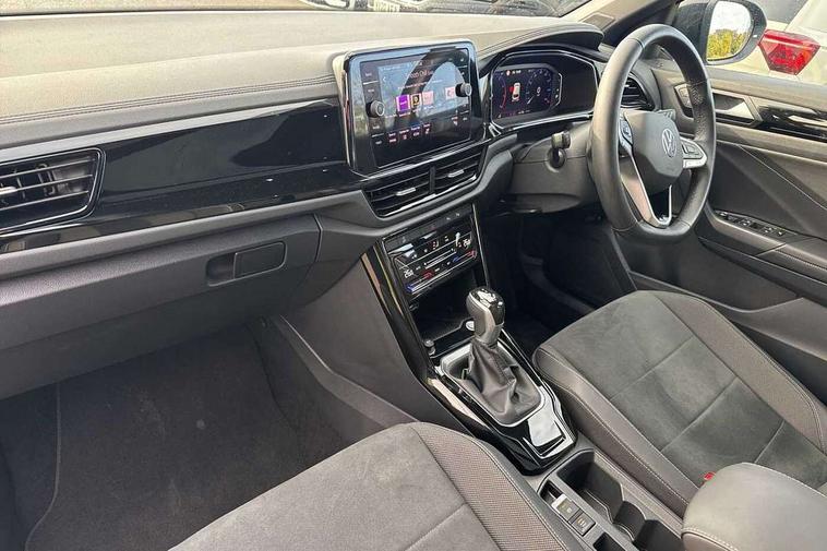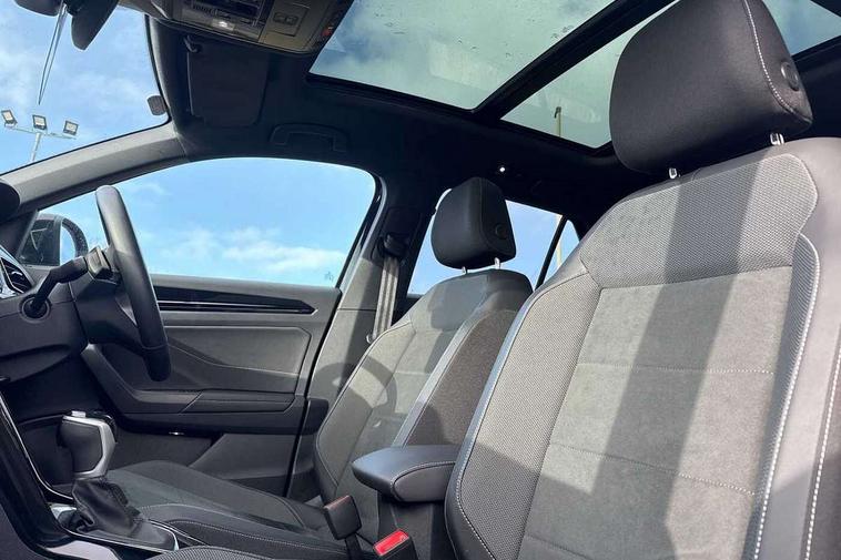 10.25" Digital cockpit pro, Advanced driver attention and drowsiness monitor, Dynamic road sign display, Emergency call service, Lane keeping system Lane Assist, Mobile phone interface, Modified key software - reduce switch off time for key status change to Long no motion, Online services, Park assist including front and rear parking sensors, Power assisted speed sensitive steering, Rear view camera, Service interval indicator, Tailgate/trunk lid release from outside, Think blue trainer driver tips and journey analysis, Warning sound and light for front seatbelts unfastened, Wireless app connect, Battery regeneration during braking, Start/stop function with battery regeneration, DAB Digital radio, Diversity antenna for FM reception, Music playback - MP3, WMA and AAC files, Premium USB cable in choice of either Apple or Android smartphone compatibility, SD card slot, Simultaneous pairing of 2 compatible mobile devices, Title and cover art display, We Connect and We Connect Plus functionality, Adhesive film in carbon look on the C-pillars, Advanced dynamic light assist for LED matrix headlights, Auto dimming interior rear view mirror, Automatic hazard lights activation under emergency braking, Black roof rails, Body colour sports bumpers with silver metallic underbody fascia, Body coloured exterior mirror housings and door handles, Dynamic cornering light, Dynamic headlight range control with self adjusting whilst driving, Electrically adjustable and heated door mirrors, Extended roof spoiler, Exterior ambient lighting, Exterior mirrors aspherical on driver side, convex on front passenger side, External USB type C socket and charging sockets, Front windscreen wiper with intermittent wipe and 4 position delay, Heated rear window, Illuminated front grille, IQ LED matrix headlights, LED 3rd brake light, LED rear number plate lights, LED rear tail lights with dynamic turn signal, LED separate daytime running light, Light mode for poor weather, rain, fog or snow, Power windows with comfort operation and circuit breaker, Privacy glass for rear side windows and rear window, Rain sensor, Rear exhaust tailpipe, Rear fog light on one side and reversing lights on both sides, Rear side wing doors, Rear wash/wipe with intermittent wipe setting, Remote electrically foldable door mirrors, puddle lights and reverse activated passenger's door mirror, Tilting and sliding panoramic sunroof with rear panoramic sunroof, 12V power socket in centre console, 3 rear head restraints, 3 seat bench in 2nd row, 4 load lashing points in luggage compartment, Air care climatronic air conditoning system with active combination filter and 2-zone temperature control, Black roof lining, Chrome plated radiator grille inserts, air vent surrounds and light switch surrounds, Door and side trim panel with leatherette insert, Drawer under drivers seat, Front + rear carpet mats, Front centre armrest, Front comfort sports seats, Front cupholders x 2, Front footwell illumination, Front seat back storage pockets, Glove compartment door with light, Instrument lighting, white adjustable panel illumination, Interior ambient lighting and surround lighting, Interior light delay, Isofix child seat preparation, Leather gearshift handle, LED interior light with switch off delay/dimmer and 2 front/rear LED reading lights, Load-through provision with cup holder when folded down ('Unsplit rear seat bench, split folding backrest, with centre armrest), Luggage compartment lighting, Non-folding front passenger seat backrest, Single front passenger seat, Storage compartment in left and right luggage area, Storage compartment in rear doors, Storage compartments in driver and front passenger doors, Sunvisors with illuminated vanity mirrors, Variable boot floor, height adjustable and removable, Black design pack - T-Roc style design, Driver assistance pack without proactive passenger protection - T-Roc, Easy open package with safelock - T-Roc, 3 point height adj front seatbelts + pretensioners, 3 point seatbelts in outer rear with ECE label, ABS, Child locks on rear doors, City emergency braking and pedestrian monitoring, Driver and front passenger airbag with front passenger airbag deactivation, Driver and front passenger safety-optimised head restraints, Drivers seatbelt reminder, Electronic parking brake, Electronic Stability Control (ESC) inc EDL (Electronic Differential Lock) and ASR (Traction Control), Front and rear passengers curtain airbag system including front side airbags, Predictive pedestrian protection, Rear disc brakes, Two tone horn, Tyre pressure loss indicator, Volkswagen roadside assistance, Black decorative trims, Piano black decorative inserts in dashboard and front door trim panels, Tool kit, Trims for alloy wheels, Tyre mobility kit including compressor and sealing foam,