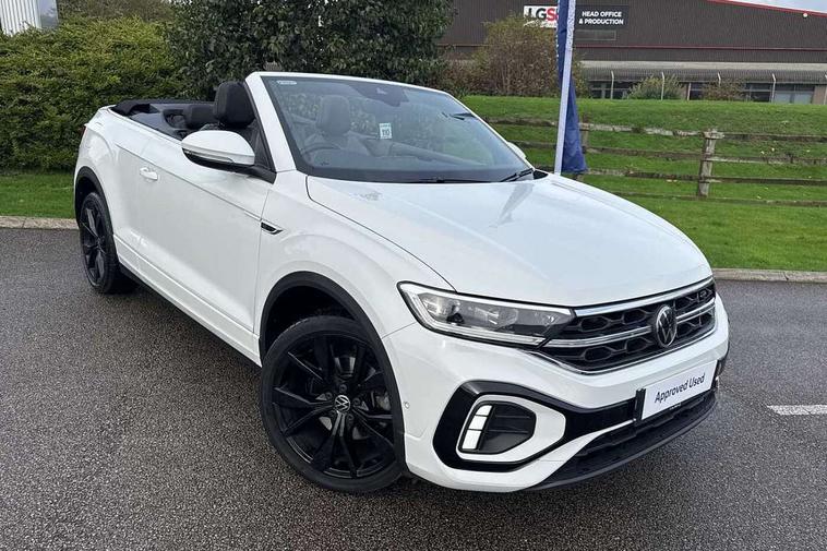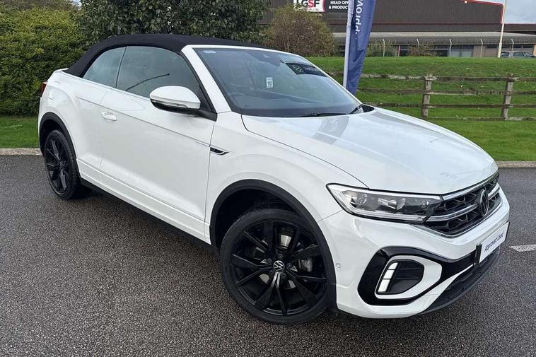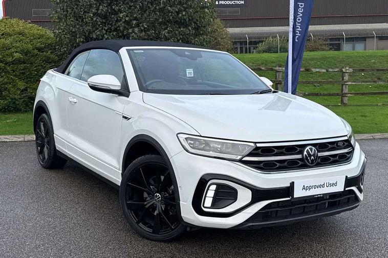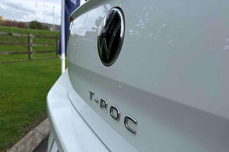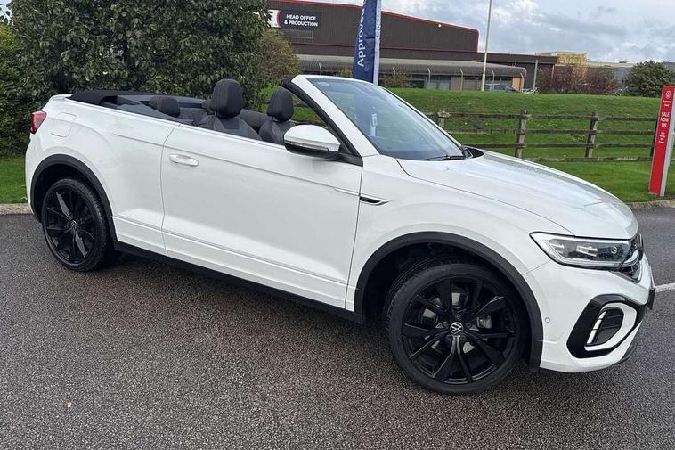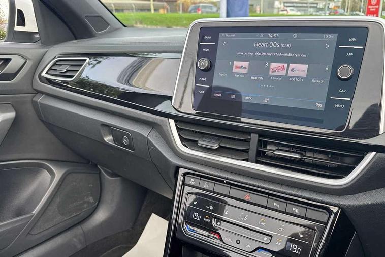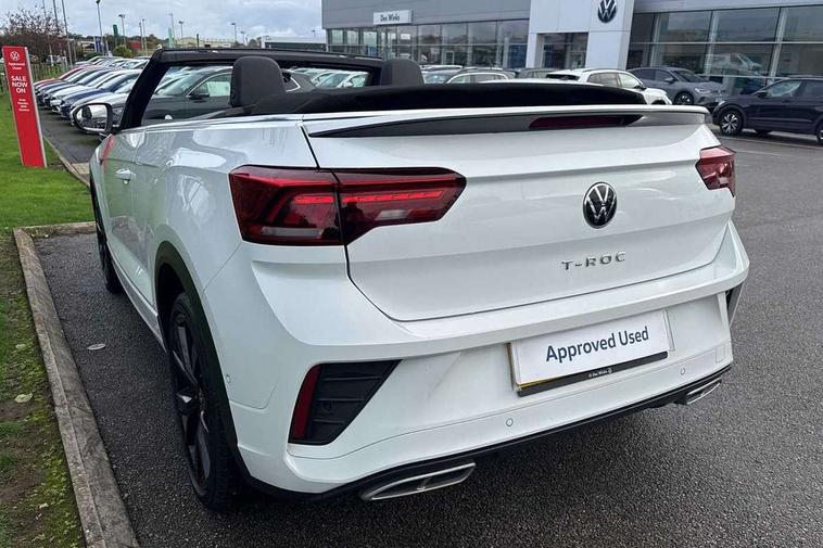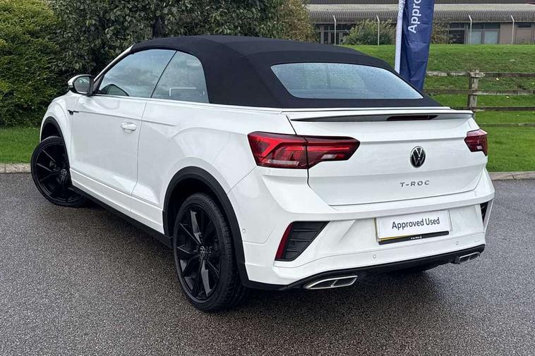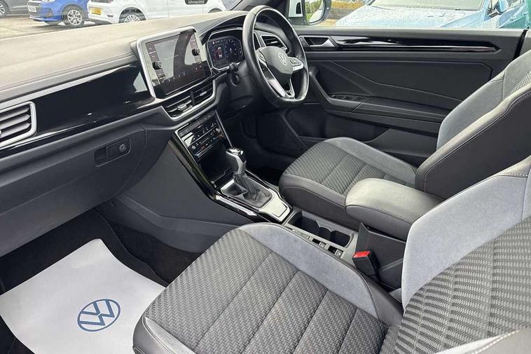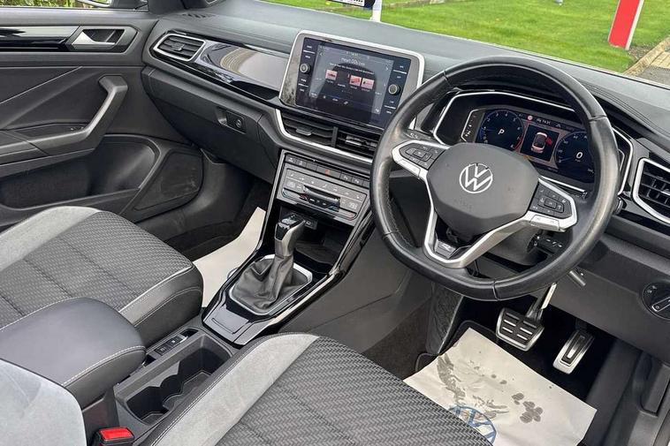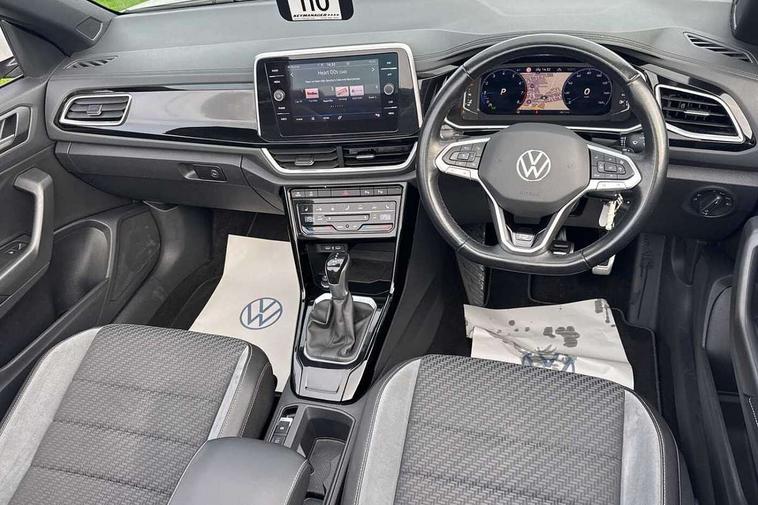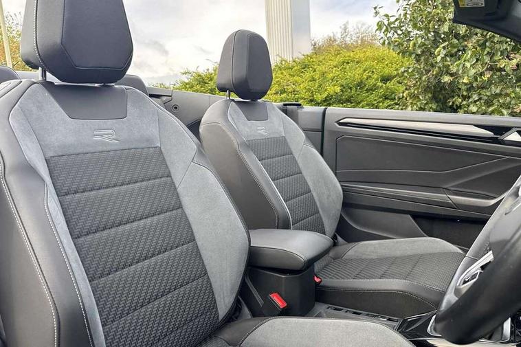 Adaptive cruise control and speed limiter, Advanced driver attention and drowsiness monitor, Bluetooth mobile phone interface, Brake pad wear indicator, Car information display, Digital Cockpit Pro with 10.25" Display, Driver tips and journey analysis, Emergency call service, Modified key software - reduce switch off time for key status change to Long no motion, Multifunction computer with visual gear change recommendation for fuel consumption, Multifunction front facing camera, Online services, Park assist including front and rear parking sensors, Speedo and rev counter, electronic odometer, trip, service interval display and exterior temperature gauge, Start/stop system with brake energy recovery, Tailgate/trunk lid release from outside, Warning sound and light for front seatbelts unfastened, Diversity antenna for FM reception, Music playback - MP3, WMA and AAC files, SMS functionality - read, compose and send SMS messages using touch-screen display, Title and cover art display, USB-C Interface and USB charging socket, We Connect and We Connect Plus functionality, Ambient lighting with logo projection, Auto dimming interior rear view mirror, Automatic hazard lights activation under emergency braking, Automatic headlight control with LED separate daytime running lights with coming/leaving home function, Black roof, Body colour door handles, Body colour rear spoiler, Chrome effect left and right trapezoid exhaust tailpipe fascia surround, Chrome trim on upper and lower radiator grille, Dark red rear combination lamps in LED technology, Dusk sensor, Exterior mirrors aspherical on driver side, convex on front passenger side, Heat insulating glass windscreen, High level 3rd brake light, LED rear number plate lights, Power operated canvas convertible top, Power windows with comfort operation and circuit breaker, R-Line design body coloured bumpers, Rain sensor, Rear boot, Rear exhaust tailpipe, Rear fog light on one side and reversing lights on both sides, Remote electrically foldable door mirrors, puddle lights and reverse activated passenger door mirror, Volkswagen roundel, Windscreen wiper with intermittent wipe light, Without exterior ambient lighting, 12V socket in centre console storage area, 2 LED front reading lights, 2 seat bench in 2nd row, 50:50 Split folding rear seat backrests with fixed rear seat bench, Air care climatronic air conditoning system with active combination filter and 2-zone temperature control, Black door lower parts with chrome trim, Chrome plated surround to light, mirror and window switch, Door and side trim panel with leatherette insert, Easy entry backrest release, Front and rear carpet mats with black stitching, Front centre armrest, Front cupholders x 2, Front door pockets, Front seat back storage pockets, Front sports comfort seats with manual height adjustment, Heated leather wrapped multi function sports steering wheel with tiptronic, Height/reach adjust steering wheel, Inserts of front seats and outer rear seats in ArtVelours titan black, Instrument lighting, white adjustable panel illumination, Interior light delay, Interior light in footwell, Interior lighting with switch off delay and contact switches on all doors, Interior white ambient lighting and surround lighting, Isofix child seat preparation, Lockable glove compartment with light, Luggage compartment lighting, Power adjustable lumbar support in front, Rear head restraints, Single front passenger seat, Stainless steel pedals, Sun visors with illuminated vanity mirrors, Unique R Line door sill protectors, Driver assistance pack without proactive passenger protection - T-Roc Cabriolet DSG, Sports pack - T-Roc cabriolet, 2 x 3-point seatbelts/outer rear seats with ECE label, Driver and front passenger airbag with front passenger airbag deactivation, Driver and front passenger safety-optimised head restraints, Drivers seatbelt reminder, Electronic parking brake, Electronic Stability Control (ESC) including ABS, ASR and EDL, Front and rear disc brakes, Front assist with autonomous emergency braking, Pedestrian monitoring, Predictive pedestrian protection, Rigid safety cell with front and rear crumple zones, Side airbag/thorax airbag system, for front passengers, Three point height adjust front seatbelts + pretensioners, Two tone horn, Tyre pressure loss indicator, Volkswagen roadside assistance, Anti-theft alarm system with interior protection and central locking system with SAFELOCK, radio remote control and 2 remote control folding keys, Electronic engine immobiliser, Trims for alloy wheels,