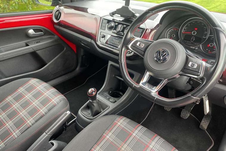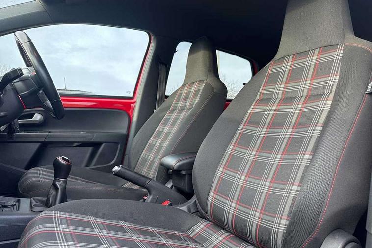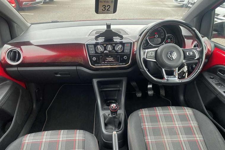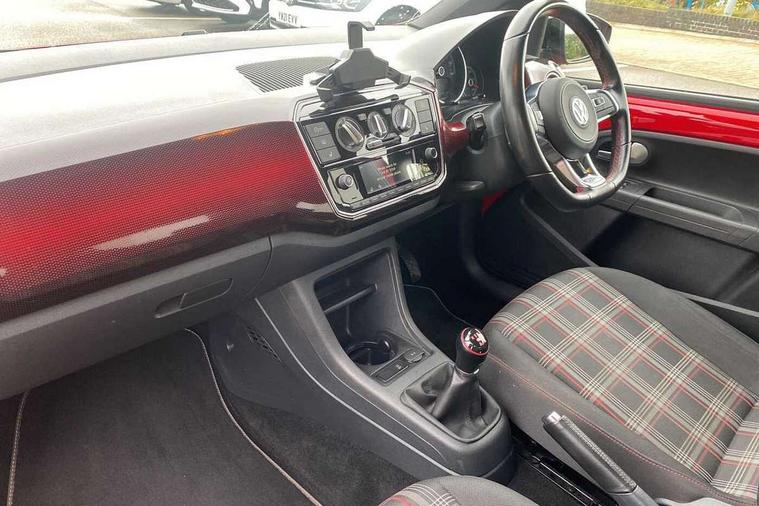 'Lights On' Reminder warning buzzer, Instrument cluster in chrome, Multi function computer, Rev counter, Service interval indicator, Speed sensitive power steering, Sports suspension, Aux input, Composition colour media system Radio/CD/MP3 + Bluetooth, DAB digital radio module, SD card slot, Smartphone interface navigation with USB Connection, Aspherical driver's exterior mirror, Body colour door handles, Body coloured bumpers, Chrome exhaust tailpipe, Chrome headlight surround, Cornering front fog lights, Electric adjustable heated door mirrors, Electric front windows, Front wash/wipe with interval delay, Gloss black door mirrors, GTI badging on front wings, rear tailgate and front radiator grille, Heat insulated tinted glass 65% light absorbing from B pillar back, Heat insulating tinted glass, Heated rear window, LED daytime running lights, Range adjustable headlights, Rear windscreen washer and wiper with interval delay, Red Stripe on lower tailgate, Red stripe with chrome detailing on lower radiator grille, Roof spoiler, Sports bumpers, Stainless steel door sill protection, 12V accessory power point in centre console, 2 cupholders, 60/40 split folding rear seat, Ambient lighting, Black headlining, Chrome interior door handles, Clark cloth upholstery, Delay courtesy light function, Driver seat height adjust, Dust/pollen filter, Easy entry slide seats (access to rear seats), Front head restraints, Front sports seats, Front/rear floor mats, Glovebox, Heated front seats, Height adjustable front seats, Height adjustable rear head restraints, Height adjustable steering wheel, Isofix Preparation 2 Rear child seats, Leather gearknob and handbrake lever, Luggage compartment cover, Luggage compartment lighting, Manual air conditioning, Multifunction sports leather steering wheel, Passenger sunvisor with illuminated vanity mirror, Storage compartment in front doors, Variable boot floor, GTI styling pack - Up, 3 point height adj front seatbelts + pretensioners, ABS, Driver and passenger airbags, Driver/front passenger side airbags, ESP with EDL + ASR, HBA (Hydraulic Brake Assist), Hill hold control, Red brake calipers, Seatbelt warning lamp and buzzer, Two 3 point rear seatbelts, Tyre pressure warning, Warning triangle and first aid kit, Anti-theft wheel bolts, Electronic engine immobiliser, Locking fuel filler cap, Remote central locking with 2 remote folding keys, 2D effect Pixel dash pad in Red, Chrome air vent surrounds, Chrome-plated light switch surround, 17" Oswald light alloy wheels in black with high sheen finish, Tyre mobility system,