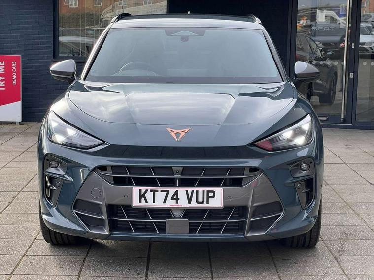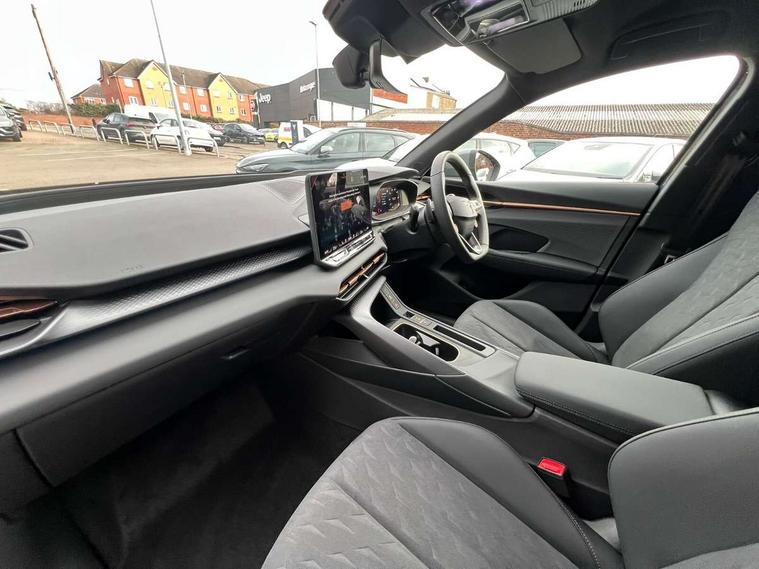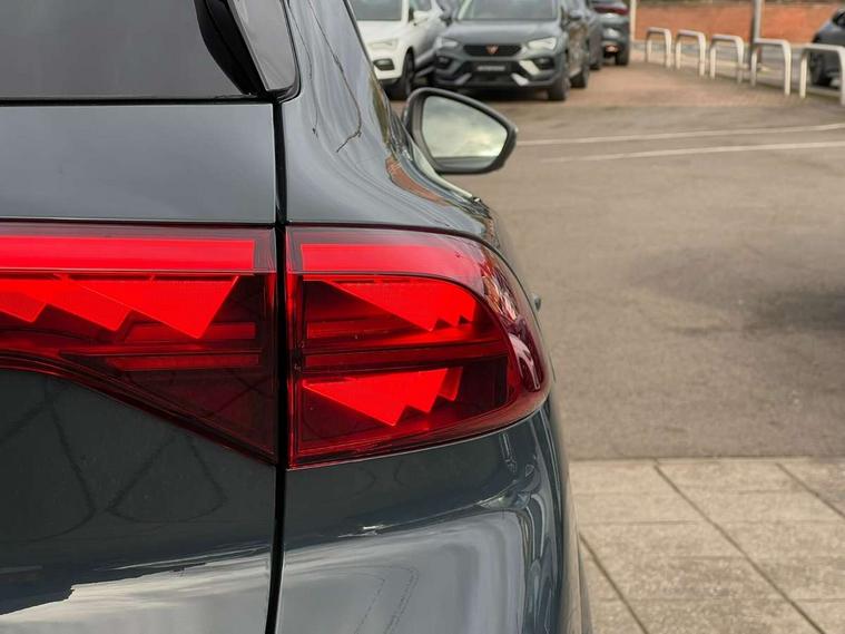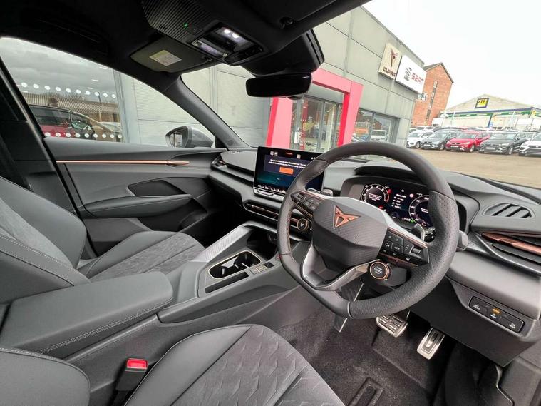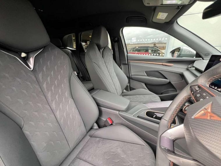10.25" digital cockpit and configurable dashboard, Adaptive cruise control with follow-to-stop and speed limiter, Advanced driver alert system, Advanced lane assist with semi-automatic vehicle control in a medical emergency and traffic jam assist, Driving profile selection and conventional shock absorber, Dynamic road sign display, E-call, Electric tailgate with virtual pedal, Emergency steering support with turn assist, Four x USB Type C ports (2 in front and 2 in rear), Front and rear parking sensors, Front assist (Forward collision warning with automatic braking) with multifunction camera and front cross traffic assist, Head up Display, Intelligent park assist, Media system with Nav - 12.9" touch display, voice control, full link phone (wired/wireless), DAB and Steering wheel mounted controls, Rear traffic assist, Side and exit assist, Speed sensitive power steering, Start/stop system with regenerative braking, Top view camera (front camera, rear camera, 2 side cameras), Wireless phone charger, Auto dimming rear view mirror, Black roof rails, CUPRA 3D rear lights with ceremony & swiping indicator and illuminated logo, Dark tinted rear windows, Daytime running lights with automatic headlight control and Coming and Leaving home function, Door mirrors with memory function and lowing function on passenger mirror, Dynamic headlight range control, Electric front/rear windows, Electrically adjustable, heated and folding door mirrors, Front fog lamps with cornering function, Heat reflecting windscreen, High beam assist, LED headlamps with signature "CUPRA LED", Rain sensing wipers, Rear fog light on one side, back up light on both sides, Rear side wing doors, Rear wash/wipe, Third brake light, Welcome lights (within exterior mirror housing), 3 seat bench in 2nd row, Black roof lining, Cupra sports pedals, Dinamica cloth upholstery, Driver seat memory function, Electrically adjustable front seats including lumbar support, Front and rear head restraints, Front and rear reading lights X 4, Front centre armrest, Heated front seats, Heated leather wrapped multi function sports steering wheel with tiptronic, Illuminated interior front door sills, Isofix, Operating voltage 12V, Single front passenger seat, Smart wraparound interior lighting, Sunvisors with illuminated mirror, Three zone climate control with control panel in rear, Unsplit rear seat bench, split folding backrest, with centre armrest, Variable luggage/load compartment floor, 3 point seatbelts in front with pretensioner and electric height adjustment, 3 point seatbelts on all rear seats, Brake control system - ESC and brake booster, Child proof door locks, Driver and front passenger airbags, Electronic parking brake, Front and rear disc brakes, Front interaction airbag, Front passenger airbag deactivation switch, Front side airbags with curtain airbags, Pre-crash front and rear seat belt tensioner, window closure and hazard lights, Tyre pressure monitoring system, Visual and acoustic seat belt reminder, electric contact in front and rear, Anti theft alarm, Keyless locking and starting system with keyless access, Locking wheel bolts, Black decorative trims, Chrome interior detailing, 19" Spectrum exclusive machine alloy wheels, Tool kit,