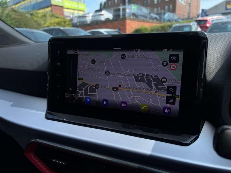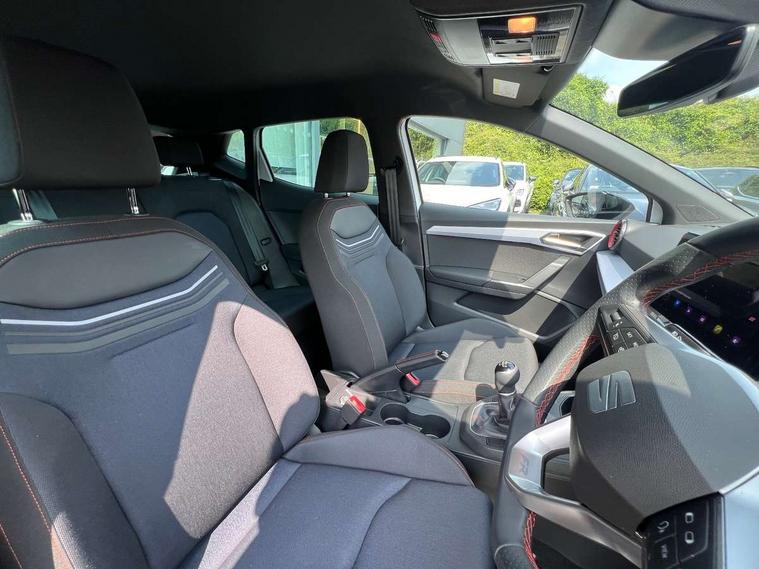 'Lights On' Reminder warning buzzer, 8" Digital cockpit, 9.2" touchscreen navigation system with type C USB socket, Voice control and DAB/AM/FM radio, Auto start and stop system, Bluetooth audio streaming with handsfree system, Digital clock, E-call, Full link smartphone integration with mirror link, wireless apple carplay, Google android auto + USB Type C cable for apple and android devices, Lane assist, Low fuel warning light, Outside temperature gauge, Power Steering, Rear parking sensor, Seat connect plus with safety, service, remote and online, SEAT logo boot release, Speed limiter, Traffic sign recognition, Trip computer, Sports suspension, Auxiliary input socket, Radio/MP3 player, SD card slot, Steering wheel mounted controls, Anti theft roof antenna, Auto dimming rear view mirror, Automatic rain sensing wipers, Black door mirror caps, Body colour bumpers, Body colour door handles, Brilliant black window surrounds, Dark tinted rear windows, Electric adjustable/heated/folding door mirrors, Electric front windows, Electric headlight adjustment, Electric rear windows, Front/rear fog lights, FULL LED automatic headlights with dynamic headlight range control, coming and leaving home, LED daytime running lights, LED tail lights, Rear roof spoiler with FR twin exhausts, Rear side wing doors, Rear wiper, Third brake light, 3 seat bench in 2nd row, 60/40 split folding rear seat, Ambient interior lighting, Chrome detailing and black headlining, Cloth upholstery, Dual zone climate control with combination filter, Front courtesy lights, Front cupholders x 2, Front reading lights, Gear shift indicator, Glovebox, Height adjustable front and rear headrests (five), Height adjustable front seats, Height/reach adjust steering wheel, Illuminated air vent surrounds, Illuminated boot, Instrument lighting with brightness control, Isofix, Leather multifunction flat bottomed sports steering wheel, Passenger sunvisor, Single front passenger seat, Sports seats, Sunvisors with mirror and driver side card holder, Safety and driving pack (S) - Ibiza, 3 point seatbelts on all 3 rear seats, ABS, Active front headrests, Child locks on rear doors, Electronic stability control, Energy recovery system, Front driver and passenger side airbags with curtain airbag and front passenger airbag deactivation, Hill hold control, Multi-Collision braking, Seat belt reminder for front and rear seats, Tiredness recognition system, Tyre pressure monitoring system, Electronic engine immobiliser, Locking wheel bolts, Perimeter alarm and interior monitoring inc.backup horn, tow away protection and electronic engine immobiliser, Remote central locking + deadlocks, 17" Alloy wheels in Brilliant silver,