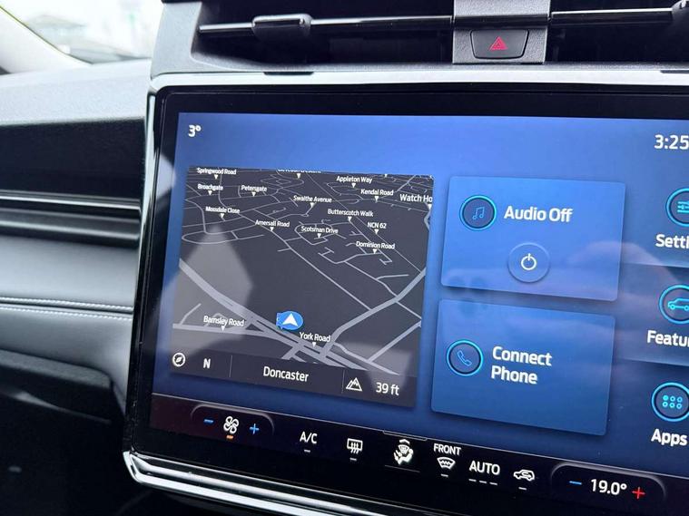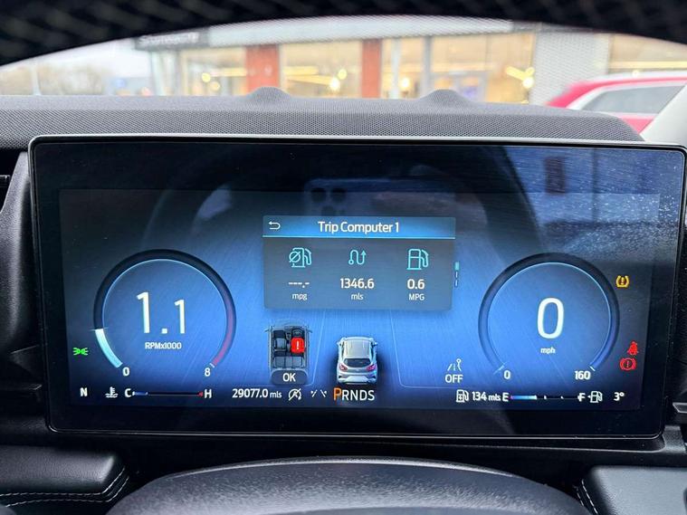 Driver impairment monitor, Emergency call service, Ford easy fuel, Full digital 12.8" instrument cluster, Lane keeping aid with lane departure warning, Power assist steering, Selectable drive modes(Normal, Eco, Sport, Slippery and Trail), Speed sign recognition, Standard suspension, 12" landscape touchscreen display with wireless apple car play and android auto 6 speaker audio system, Ford pass connect and emergency assistance, Ford SYNC4 with connected navigation, Automatic headlights with rain sensing wipers and auto high beam, Front fog lamps, LED daytime running lights, LED rear lamps, LED third brake light, Quickclear heated windscreen, Rear privacy glass, Rear side wing doors, Rear wiper, 3 seat bench in 2nd row, Centre console with armrest and stowage, Electronic automatic temperature control (EATC), Ford megabox extended bootspace, Front and rear head restraints, Front floor mats, Manual 4 way driver seat adjust with lumbar adjustment, Single front passenger seat, Titanium cloth upholstery, 3 rear seatbelts, Child safety lock, Electronic stability control (ESC) and hill start assist, Pre-collision assist with autonomous emergency braking, pedestrian/cyclist detection & post-collision braking, Tyre pressure monitoring system (TPMS), Thatcham alarm, 17" Absolute black machined finish alloy wheel,