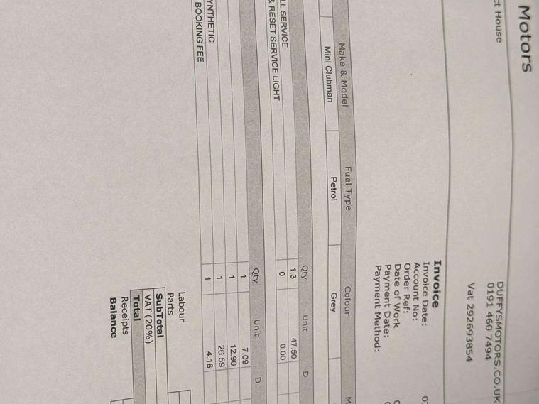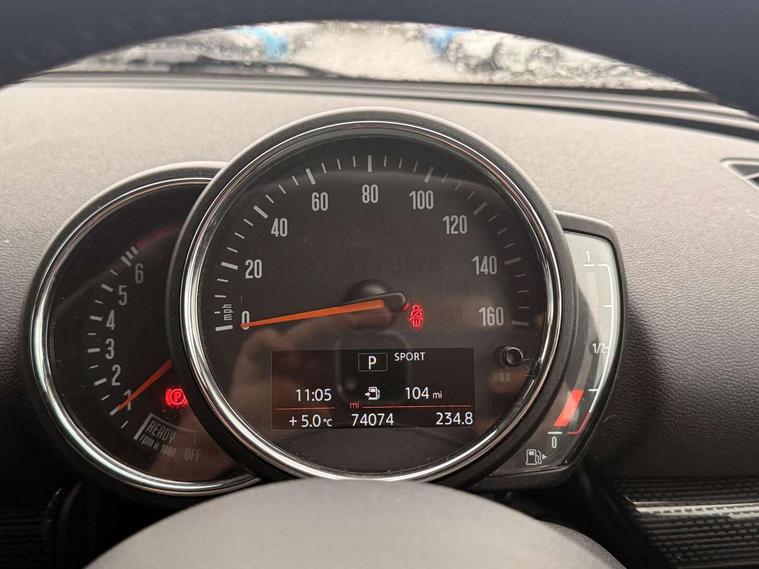 Brake pad wear indicator warning light, DTC - Dynamic traction control, Exterior temperature gauge, Intelligent emergency call, Mini Ecall, MINI TeleServices, Navigation system, On board computer, Personal Profile, Service interval indicator, Servotronic speed sensitive power steering, Electronic differential lock, Auxiliary input socket, DAB digital radio module, MINI Connected, MP3 compatible radio/single CD player, Radio visual boost, Anti dazzle rear view mirror, Body coloured bumpers, Bonnet Stripes - Black, Chrome door handles, Chrome exhaust tailpipe, Chrome headlight surround, Chrome plated radiator grille, Electric front windows + one touch + anti-pinch, Electrically adjustable door mirrors, Follow me home headlights, Front intermittent wipers, Heated door mirrors/heated windscreen washers, Heated rear window with timer, Metal look door sill finishers, Rain sensor including auto headlights activation, Rear wiper, Roof spoiler, White indicator lights, 12V power point front, 4 lashing points to secure luggage, 60/40 split folding rear seat, Centre console storage box, Chrome interior door handles, Driver/passenger sunvisors, Easy entry seats, Front and rear cupholders, Front and rear Isofix child seat preparation, Front and rear velour floor mats, Front centre armrest with storage compartment, Front headrests, Front interior light, Front passenger grab handle, Front seat backrest storage nets, Heater with recirculation function, Height/reach adjust steering wheel, Luggage compartment lighting, Multifunction steering wheel, Outer passenger rear headrests, Rear armrest with storage, Rear grab handles, Storage compartments in doors, Toolkit in luggage compartment, Interior lights pack - Mini Clubman, 3 point automatic seatbelts, 3 point seatbelts on all rear seats, ABS, Automatic Stability Control (ASC), Cornering brake control (CBC), Crash Sensor - activates hazard/interior lighting + unlocks doors, Driver and passenger airbags, Driver and passenger side airbags, DSC - Dynamic Stability Control, Electronic brake force distribution, Electronic parking brake, Front curtain airbags, Front passenger airbag deactivation, Fuel cut off safety device, Hill start assist, Pyrotechnically pre-tensioned front seatbelts, Traction control, Twin horns, Tyre pressure warning, Drive away door locking, Keyless start, Locking wheel bolts, RF remote control central locking, Second remote key, Thatcham category 1 alarm + immobiliser,