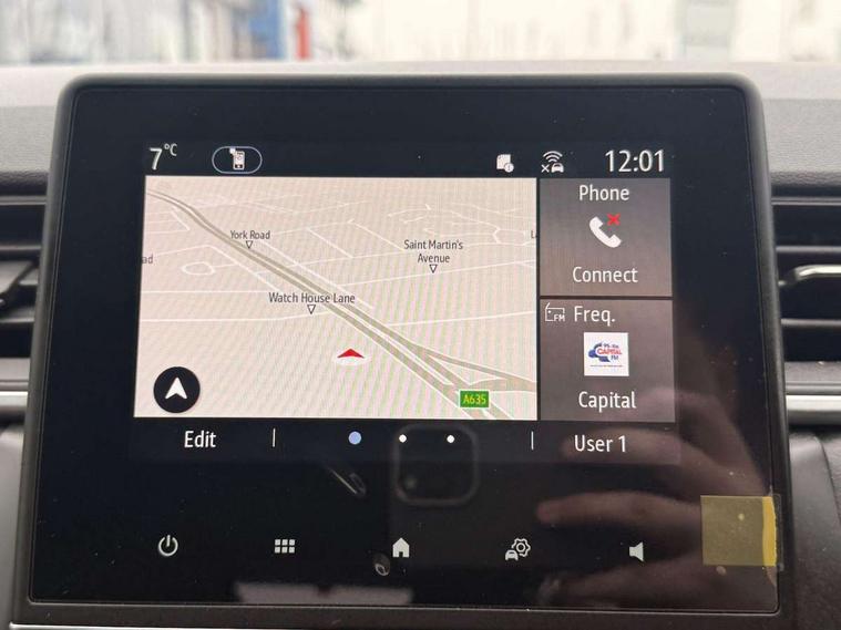4.2" TFT Driver information display, Cruise control + speed limiter, EasyLink 7" touchscreen with navigation, google search and traffic information, Eco mode, Gear change indicator, Lane departure warning system, Lane keep assist, Rear parking sensor, Renault automatic emergency assist, Smartphone integration compatible with Apple CarPlay and Android Auto, Traffic sign recognition with over speed prevention, Trip computer, Variable assistance power steering, DAB Radio with Bluetooth and USB, 2 reverse gear LED lamps and 1 rear LED fog lamp in the bumper, Automatic front wipers with rain sensors, Automatic headlights, Black side door protection, Body colour door handles, Body coloured bumpers, Body coloured door mirrors, Day time running light, Drivers one touch window with anti-pinch feature, Extra tinted glass in rear windows and tailgate, Front and rear electric windows, Full LED headlights, Grey front and rear skid plate, LED front fog lights, LED high level brake lights, LED turn indicators on door mirrors, Rear side wing doors, Rear wiper, 12V Accessory socket, 3 rear headrests, 60/40 split and fixed base rear seat bench, Automatic climate control with one touch demist function and air quality regulator, Centre console storage tray, Cloth upholstery, Front head restraints, Glovebox, Heating system with pollen filter, Height adjustable driver's seat, Height/reach adjust steering wheel, ISOFIX child seat fixing points on rear outermost seats, Middle console with armrest and storage, Rear air vents, Single front passenger seat, Sliding rear bench, Standard bulb in front roof lights, Synthetic leather steering wheel, 3 rear seatbelts, ABS+EBA, Distance warning alert, Driver and front passenger, side, head and curtain airbags, Driver height adjustable seat belt, Electric parking brake, Electronic stability control, Front and rear no seatbelt warning sound, Front dash warning indicator in case of heavy braking, Front driver and passenger side airbag deactivation, Hill start assist, Rear door and window child locking function for rear door, Tyre pressure warning light, Anti drill door locks and locking fuel cap, Central door locking, Deadlocking system, Hands free keycard with push button and start/stop function, RAID (Renault Anti-Intruder Device) automatic door locking, Black soft touch dashboard, 17" Ediris diamond cut alloy wheels,