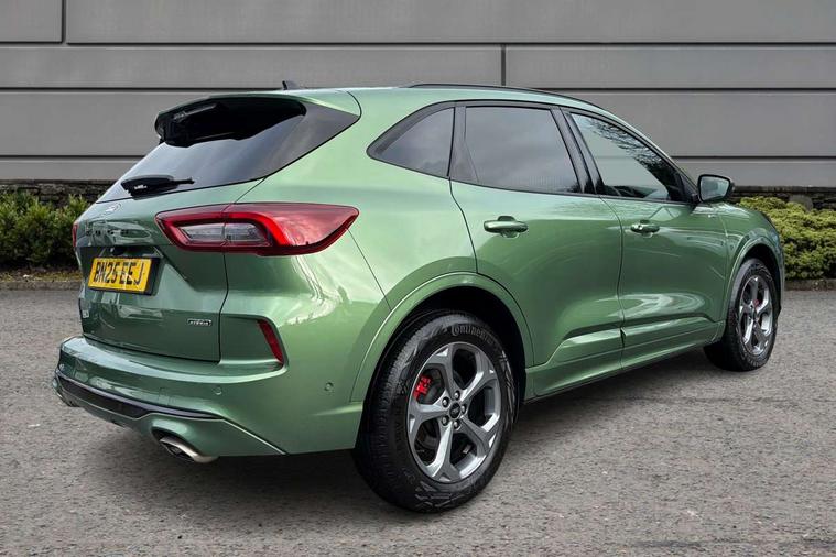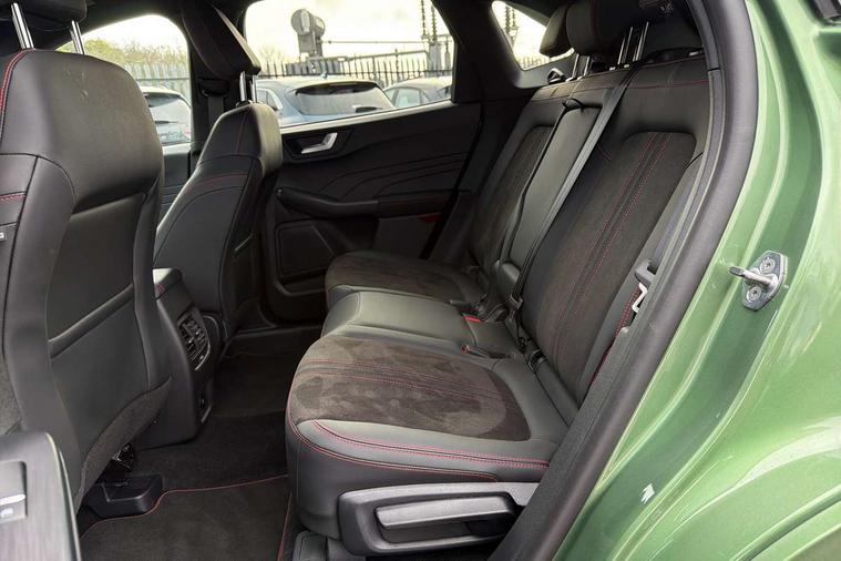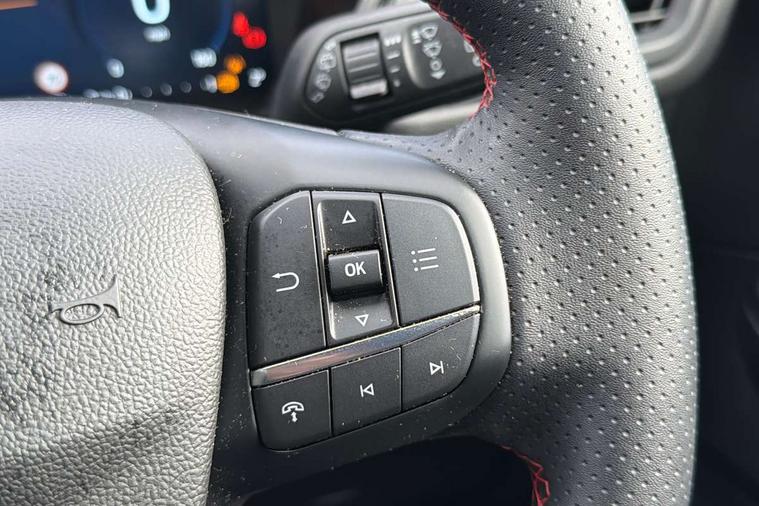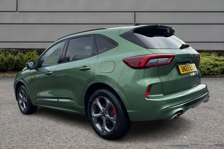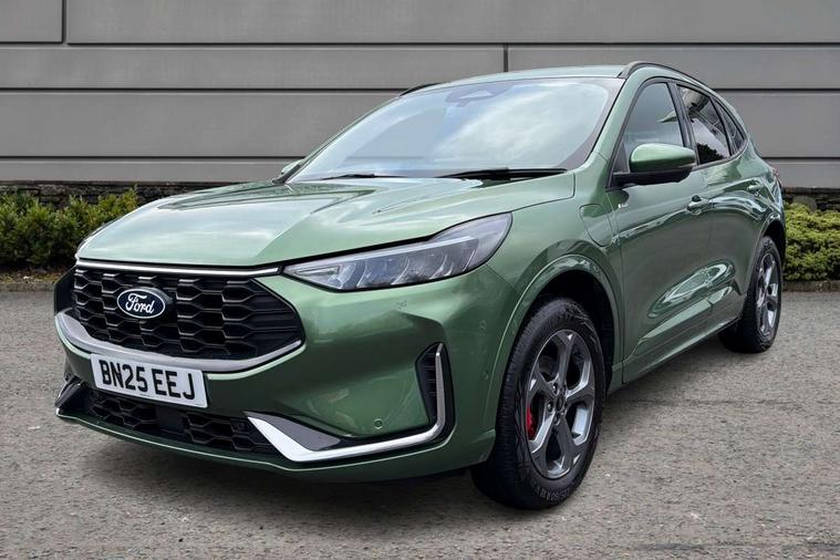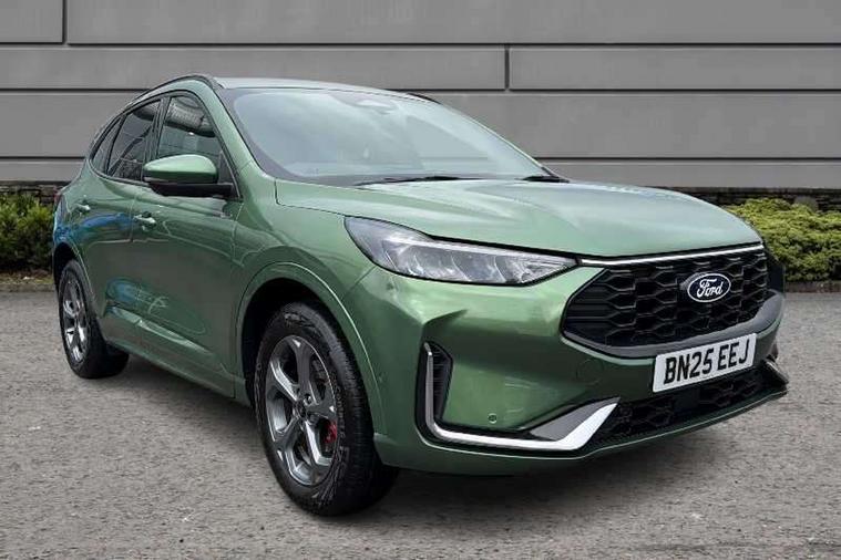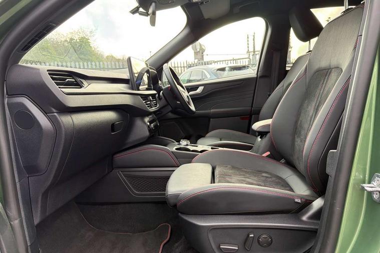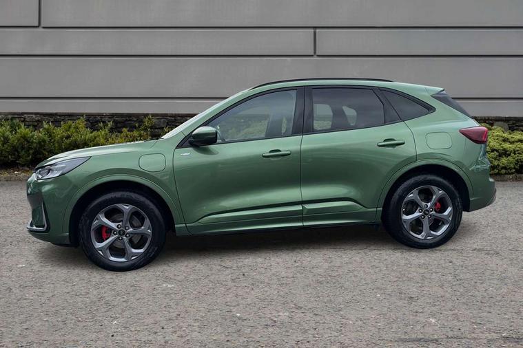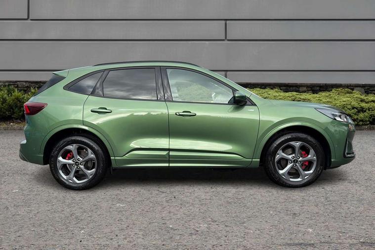 12.3" digital colour instrument cluster, 360 degree view camera, e-Call (emergency call), Ford easy fuel, Ford SYNC 4 Navigation with 13" touchscreen, DAB radio, emergency assistance, Andriod Auto/Apple CarPlay, 5G modem & Ford Pass connect, Front and rear parking sensors, Hands free power tailgate, Lane centering assist, Lane keeping aid with lane departure warning, Power assist steering, Selectable drive modes, Service interval indicator, Sports suspension, Twist beam rear suspension, B&O premium audio system with 10 speakers, subwoofer and 2 USB ports, Auto headlamps with high and low beam, Black roof rails, Body colour bumpers, Front LED fog lamps, Large rear spoiler, LED daytime running lights, LED rear lights, Pop out door edge protectors, Power front/rear windows with global close, Power heated folding door mirrors with puddle lights, memory function and camera, Quickclear heated windscreen, Rain sensing wipers, Rear privacy glass, Rear side wing doors, Rear wiper, ST-Line body styling kit, Third brake light, 12 way ergonomic power adjust driver's seat with memory (AGR certified), 12 way ergonomic power adjust passenger seat (AGR certified), 2nd row sliding seats, Electronic automatic temperature control (EATC), Front and rear head restraints, Partial premium touch sensico upholstery, Rear centre head restraint, Single front passenger seat, Sports seats, Driver assistance pack with intelligent adaptive cruise control - Kuga FHEV/PHEV, 3x3 point rear seatbelts, Airbags - front driver/passenger, front and rear curtain, Drivers knee airbag, Dynamic brake support, Electronic stability control (ESC) and ABS, Evasive steering assist, Ford MyKey Gen 2 safety system, Manual child proof rear door locks, Pre collision assist with autonomous emergency braking, Rear seat Occupancy alert, Red brake calipers, Tyre pressure monitoring system, Engine immobiliser, Keyless entry and Ford power start button (Keyless start), Locking wheel nuts, Remote powered central double locking doors, Thatcham category 1 alarm,