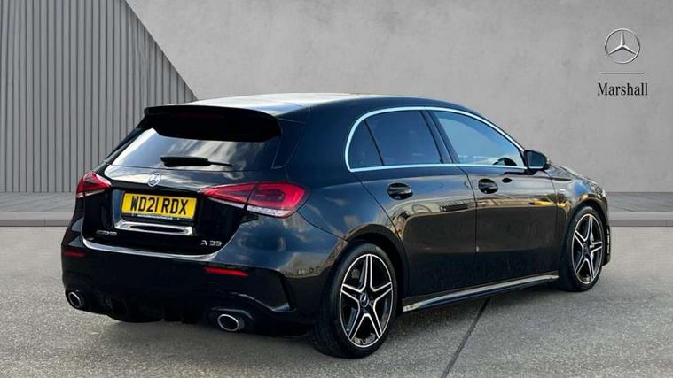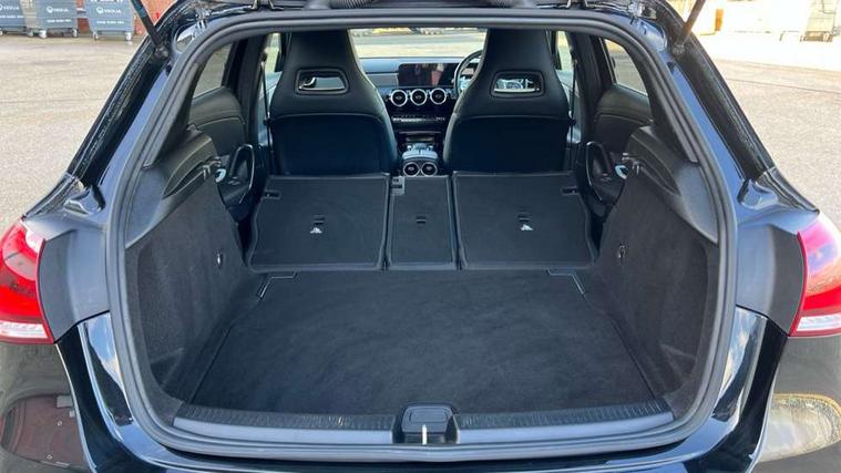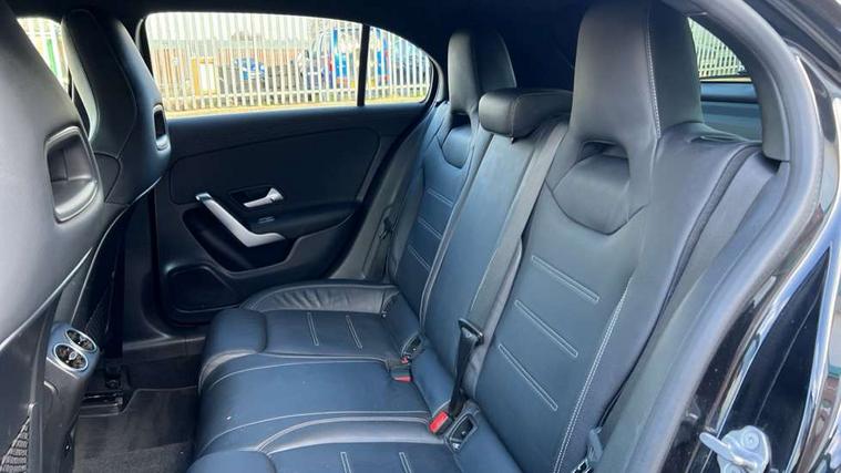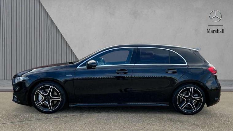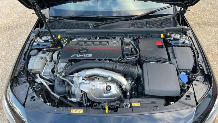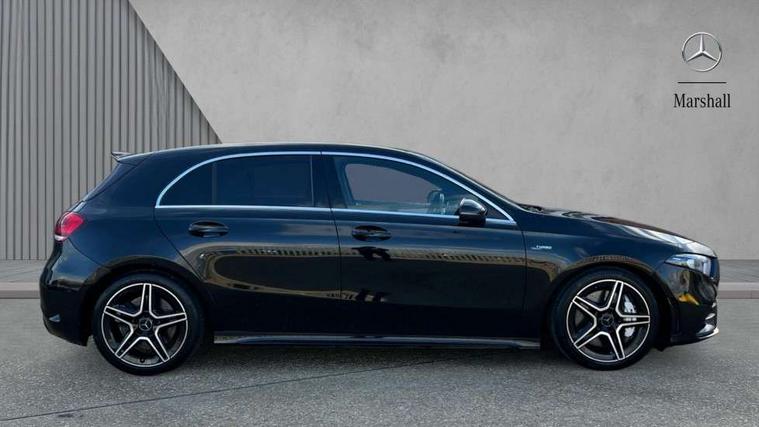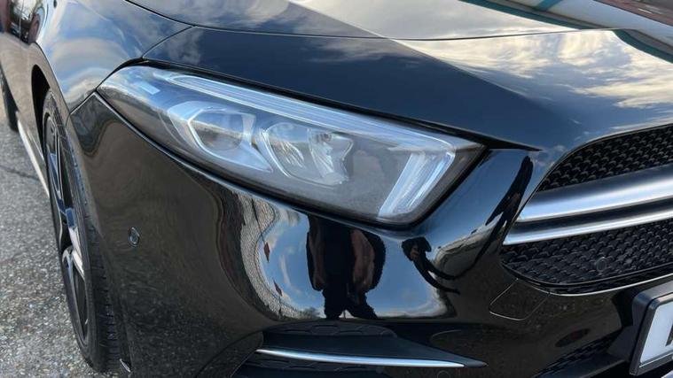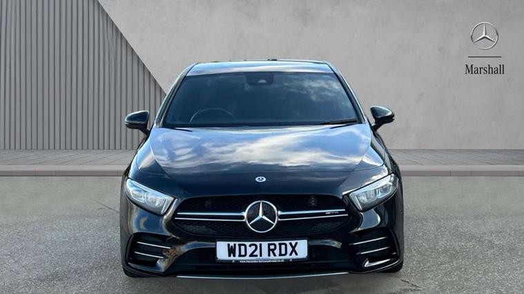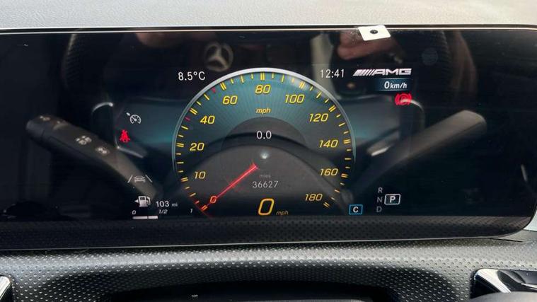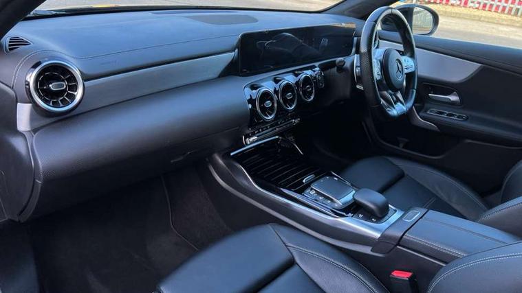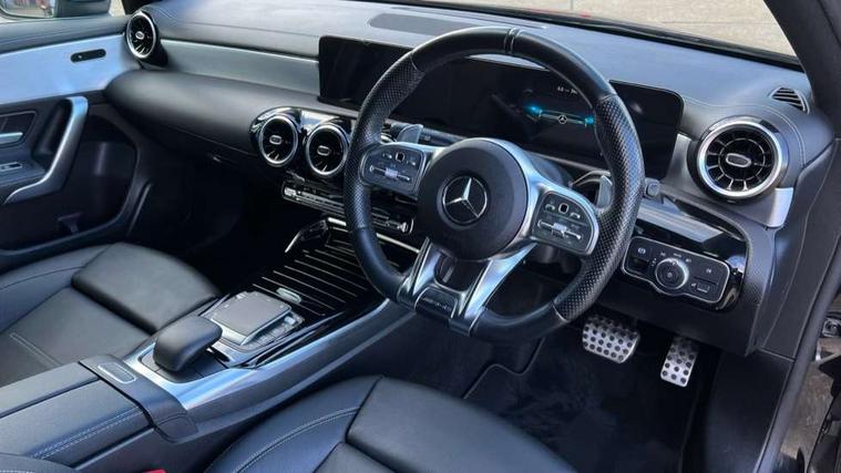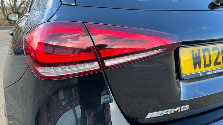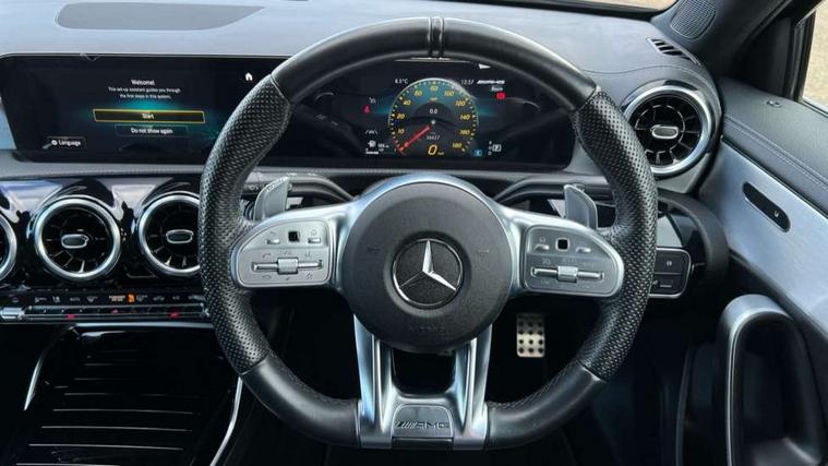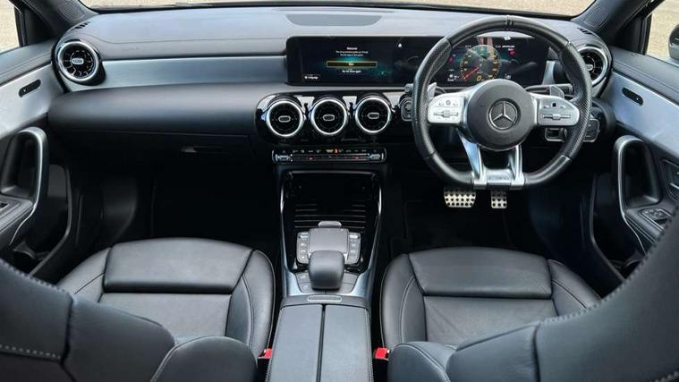 10.25" media display, 180 degree rear view camera with parking guidelines, 7" colour screen in instrument panel, Active parking assist with visual and audible warning of detected obstacles, Attention assist, Brake pad wear indicator warning light, Car wash mode, Cruise control + speed limiter, Direct steering, Dual bluetooth interfaces, DYNAMIC SELECT with driving programs (Slippery, Comfort, Sport, Sport+ and Individual), ECO start/stop function, Fluid level warning indicator for fuel, oil, coolant and washer fluid, Hard-disk navigation, Hey Mercedes Voice activation, Lamp failure indicator, Mercedes me connect including emergency call system, accident recovery, breakdown and maintenance management, Mercedes me remote services, Outside temperature gauge, Owners manual in English, Pre-installation for private car sharing, Preinstallation for Mercedes Benz link, Service indicator (ASSYST), Smartphone integration with Apple CarPlay and Android auto, Speed sensitive power steering, Trip computer, Ultrasonic sensors positioned in the front and rear bumpers, Wireless charging, AMG performance suspension, Rear axle multi-link, 2 USB ports (type C) in rear stowage compartment and one in front of center console, 6 speakers, DAB Digital radio, MBUX multimedia system with DAB digital radio and touchpad including satellite navigation, Mercedes-Benz sound system - 100W, 4 Electric Front and Rear windows, Adaptive brake lights, AMG bodystyling - Front apron with splitter in chrome, rear apron with chrome trim and chrome visible trim elements in tailpipe, AMG Front apron with flics as air deflector elements on the outer air intakes, AMG radiator grille with twin blade lamella and AMG Lettering, AMG Rear apron with specific diffuser look with four vertical fins and two round chrome plated tailpipe trim elements with a diameter of 90 mm, AMG spoiler lip on roof, AMG Sports exhaust system with two round tailpipes measuring 90 mm in diameter attached in rear apron, AMG lettering plus ribbing on the inside of the, Black weather strip, Body colour bumpers, Body colour door handles, Body colour side skirt, Body coloured door mirrors, Chrome beltline trim, Electric adjustable and heated door mirrors with integrated LED side indicators, Front wings wheel arches with TURBO 4MATIC lettering, Headlamp assist automatic headlamp activation, Heated glass rear windscreen + timer control, LED high performance headlamps with integrated LED daytime running lights, LED tail lamp, LED third brake light, Privacy glass, Radio aerial, Rain sensing windscreen wipers with two sensitivity settings, Rear fog lights, Rear wiper, Trim elements on louvres in outer air inlets in silver chrome, Wider wheel arches for AMG wheels, Window line trim strip in chrome, 40:20:40 split folding rear seats, AMG Performance steering wheel in nappa leather, Auto Mercedes-Benz child seat recognition sensor, Black air vents with surround in silver chrome, Black roof lining, Brushed stainless steel sports pedals with rubber studs, Controller on centre console with chrome surround, Floor mats with stitched edging and AMG lettering, Front centre armrest with storage compartment, Front door sills with Mercedes Benz lettering, Front seat backs luggage nets, Front seat cushion length adjustment, Heated front seats, Height/reach adjustable steering column, Interior mirror with reading lamps in black and frameless, Manual height adjustable front seats, Rear head restraints, Seat occupancy sensor for front passenger seat, Silver coloured aluminium gear shift paddles on steering wheel, Sports seats with integrated headrests, Stowage compartment in centre console with retractable cover, Sunvisors with illuminated vanity mirrors, Touchpad on center console, Twin front cupholders, Two zone thermotronic luxury automatic climate control, Light and sight pack - A Class, Mirror package - A Class, Seat comfort pack - A Class, 3 rear 3 point seatbelts, ABS with Brake Assist, Active bonnet, Active brake assist includes forward collision warning system with autonomous braking, Adaptive brake assist with hold function and hill start assist, Black seatbelts, Childproof locks manually operated for rear doors and electrically operated for rear power windows, Crash responsive emergency lighting, Driver and passenger head and side airbags, Drivers knee airbag, Dual stage driver/passenger airbags, Electronic parking brake, ESP curve dynamic assist, ESP with ASR, Front and rear seatbelt reminder, Front brake calipers with AMG lettering, ISOFIX and top tether child seat fixing points in two outer rear seats, Perforated front brake discs, Tyre pressure monitoring system, Warning triangle and first aid kit, Window airbags, Alarm system/interior protection/immobiliser, Keyless Go, Remote central locking and crash sensor with emergency opening function, Urban guard vehicle protection system with immobiliser and interior protection, Light aluminium with longitudinal grain interior trim, 18" AMG 5 twin spoke design bicolour alloy wheels, Summer tyres, Tirefit sealant kit,
