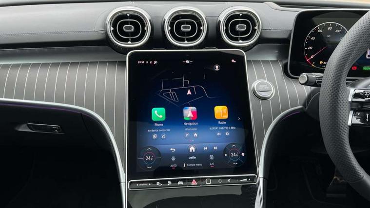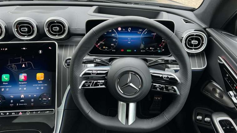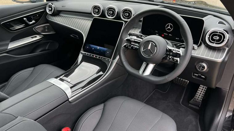 5G Communications module, Acoustic presence indicator, Active lane keeping assist, Attention assist, Bluetooth connection, Car wash mode, DYNAMIC SELECT with a choice of driving modes (ECO, Comfort, Sport, Sport+ and Individual), eCall emergency call system, Fingerprint scanner, Fluorescent jacket for driver, Fully digital 12.3" driver display screen, Hard-disk navigation, Head up Display, Hey Mercedes Voice activation, MBUX augmented reality for navigation, MBUX navigation premium, PAS, Passive person presence reminder, Portrait format 11.9" touchscreen central display with driver orientation, Remote services, Service indicator assist, Smartphone integration with Apple CarPlay and Android auto, Traffic sign assist, Wireless charging system for mobile devices in the front, 50 litre fuel tank, 9G TRONIC automatic transmission, AC charging, Charging cable for domestic socket, 5 m, straight, Comfort suspension, Integrated starter generator Gen 2, Mode 3 charging cable for wallbox and public charging stations with 5m upto 11kW, Self levelling suspension, Sporty engine sound system, Burmester 3D surround sound system with sound personalisation, Digital radio, MBUX extended functions, MBUX multimedia system, Adaptive brake lights, AMG bodystyling, AMG Line exterior, AMG specific radiator grille with vertical struts in high gloss chrome and AMG logo, Auto headlights, Electric windows, Heat insulating dark tinted glass, LED 3rd brake light, LED Day time running light, LED digital light with adaptive highbeam assist plus, LED tail lights, Panoramic sliding sunroof, Rain sensor windscreen wipers, Rear boot, Variable front intermittent wipers, 2 individual rear seats, 2 rear head restraints, Ambient lighting premium, Ambient lighting with projection of brand logo, AMG floor mats, AMG line interior, Automatic child seat recognition sensor, Belt feeder, Black fabric roof liner, Climatised massage multicontour front seats, Folding rear seat backrests, Front headrests, Heated front seats, Heated steering wheel, Illuminated door sill panels with Mercedes Benz lettering, Instrument panel and beltlines in ARTICO manmade leather in nappa look, Leather upholstery, Multifunction sports steering wheel in nappa leather, Power height and reach adjustable steering column, Single front passenger seat, THERMATIC automatic climate control, Interior light pack - CLE, Keyless-Go comfort package - CLE, Memory seat pack - CLE, Mirror pack - CLE, Parking package with 360 degree camera - CLE, Stowage space package - CLE, USB package plus - CLE, Active bonnet, Adaptive brake system with hold function and brake drying function, Anti-lock braking system (ABS), Automatic front passenger airbag deactivation, Black seat belts, Braking system with larger brake discs on the front axle, Centre airbag, Dual front airbags, Electric parking brake, Electronic Stability Programme (ESP), First aid kit and warning triangle, Front and rear seatbelt reminder, Hill start assist, ISOFIX child seat attachment points with top tether in rear, Pedestrian protection, Rear side airbags, Seat occupancy sensor for rear seats, Tyre pressure monitoring system, Anti theft alarm system, Guard 360 degree vehicle protection plus, Increased anti-theft protection, Interior monitoring system, Black open pore aluminium lines wood trim with centre console in black fine structure, 19" AMG multi spoke light alloy wheels painted in black with high sheen finish, Tirefit,