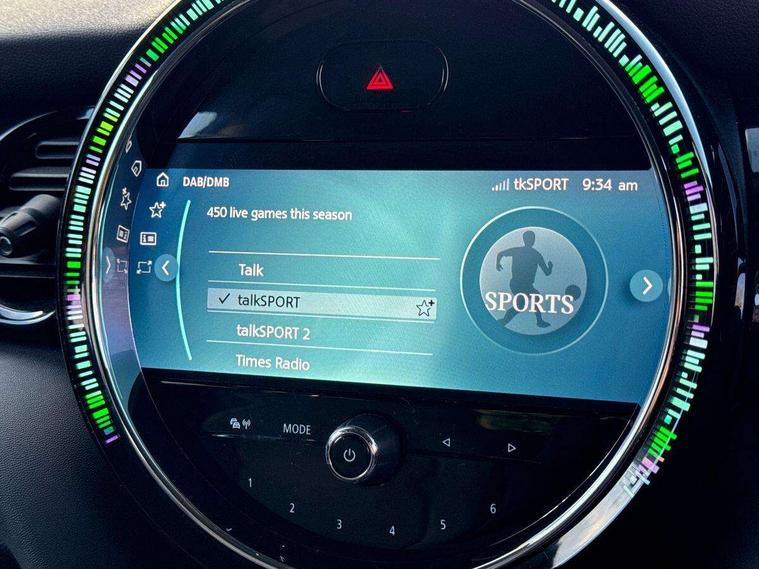 Apple CarPlay, Automatic start/stop function with brake energy recuperation, Compatible mobile phone bluetooth with audio streaming, Cruise control with brake assist, Electro-mechanical speed dependant steering assistance, Flexible car sharing preparation, Instrument cluster, Mini E-call, MINI TeleServices, On board computer, Service interval indicator, Double Vanos system, Fully variable valve control, High precision injection, Performance Control, Steptronic transmission with double clutch, 8.8" touchscreen with LED ring, FM tuner and DAB digital radio, 3rd brake light, Automatic headlight activation switch, Body colour fuel filler cap, Chrome border high gloss black slats radiator grille, Dynamic brake lights, Electric front windows, Exhaust tailpipe on left with chrome finisher, Heated rear window, Heated windscreen washer jets, LED headlight with closed ring and daytime driving lights, Metal door sill strips with MINI imprint, Model logo Cooper on right of tailgate, Rain sensor window wipers, Rear fog lights, Rear LED lights with union jack design, Rear window wiper, Side scuttle panel with integrated indicator, Sun/heat protection glass, White indicator lenses, 12V Accessory socket in centre console, 2 seat bench in 2nd row, 4 lashing eyes in luggage compartment, 60/40 split folding rear seat, Ambient lighting, Carbon black colour line - Knee roll and door armrest, Chrome interior highlights, Cupholders, Front and rear head restraints, Front and rear isofix with front passenger airbag deactivation, Front floor mats in velour, Glove compartment, Height and length steering column adjustment, Interior lighting with 12 different colours across the dashboard, underneath door bezel with illuminated laser-engraved design on central display, Leatherette gearshift lever and handbrake gaiters, LED reading lights, vanity mirror lights, front foot well light and spotlight on front seats, Manual air conditioning, Mechanical seat adjustment - forward/back & backrest for front seats and driver seat height adjust, Multifunction steering wheel, Passenger seat height adjuster, Satellite grey headlining including grab handles and clothes hooks, Single front passenger seat, Sport leather steering wheel with speed limiter and audio/communication controls, Storage compartments in doors, Sunvisors with vanity mirrors, 3 point seatbelts on all four seats, 6 Airbags - front, side, head and seat belt tensioners, Anti-lock braking system (ABS), DSC - Dynamic Stability Control, Front and rear disc brakes, Single tone fanfare horn, Tyre pressure monitoring system, Alarm system with tilt sensor, monitoring doors, bonnet interior and tailgate, Electronic vehicle immobiliser, Start/stop toggle with keyless go, Piano black interior trim, Tool kit, Tyre repair kit,