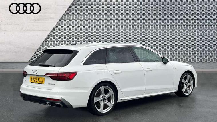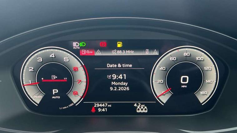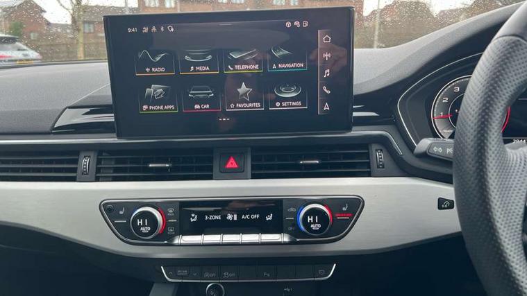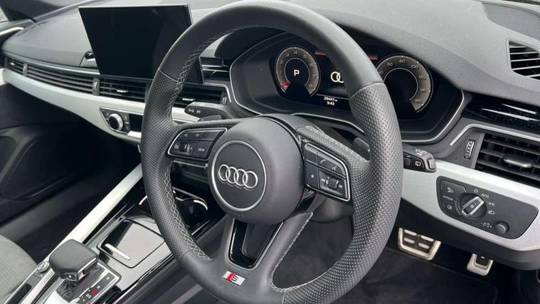 Audi connect safety and service (e-call), Audi connect with Amazon Alexa Integration, Audi drive select, Audi smartphone interface, Audi virtual cockpit, Automatic start-stop system with coasting functionality and efficiency programme, Bluetooth interface, Electromechanical power steering, Email, calendar and text messages displayed via MMI, MMI Navigation plus with MMI touch includes 10.1" high resolution colour MMI display, 3D map, Power operated tailgate, Voice control system, 54 litre fuel tank, Sports suspension lowered by 23mm, 2 USB charging ports, 8 passive loudspeakers, DAB digital radio reception, Aluminium roof rails, Auto dimming rear view mirror, Body colour door handles, Body colour front spoiler lip, Body colour side sill trim, Body coloured door mirrors, Electrically folding auto dimming/adjustable/heated door mirrors with LED side indicators and kerb view function for passenger side, Grained matt black side air inlets with matt aluminium silver inlay, High beam assistant, Honeycomb structure radiator grille in grained matt black, LED headlights with LED rear lights + dynamic rear indicators + headlight adjustment and high beam, turning light + LED daytime running lights, LED third brake light, Matt aluminium silver tailpipe trim, Privacy glass, Rain and light sensors, Rear side wing doors, Rear wiper, S Line badges on the front wings, S line front and rear bumpers with side skirts, S Line rear diffuser in matt anthracite black with trim strip in matt aluminium silver, S Line roof edge spoiler, Variable intermittent front wash/wipe, Windscreen with acoustic glazing, 3 spoke high multi-function sports leather steering wheel grips in perforated leather with S badging including paddle shift, 4 way electric lumbar support for driver and front passenger, 40/20/40 split folding 3 rear seat bench in 3 parts with rear centre armrest, Black cloth headlining, Black perforated leather gearknob, Contrast stitching on seats, steering wheel and gear lever gaiter, Deluxe 3 zone electronic climate control, Door sill trims with aluminium inlay, Electric load area cover, Front and rear head restraints, Front centre armrest, Heated front seats, Illuminated door sill trims with S logo, ISOFIX child seat mounting and top tether, Manual seat adjustment, Single front passenger seat, Stainless steel pedals and foot rest, High gloss package - A4, LED Interior light pack - A4/S4, 3 rear seatbelts, 6 airbags - Driver, front passenger, curtain and side windows, Electronic Stabilisation Control (ESC) including ABS, ASR and EDL, Hill hold assist, Multi collision brake assist, Pop-up bonnet for pedestrian protection, Pre sense city, Rear door child safety locks, Seatbelt monitoring, Warning triangle and first aid kit, Anti theft alarm, Anti theft wheel bolts, Central locking, Keyless Go, Matt brushed aluminium inlays, Tool kit, Tyre repair kit,