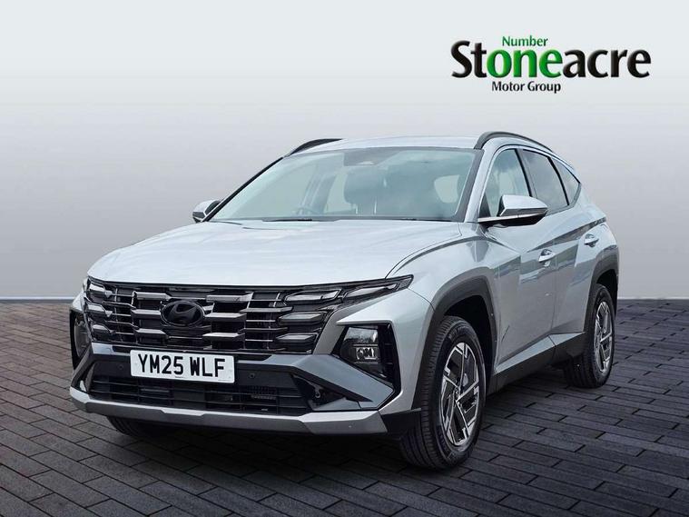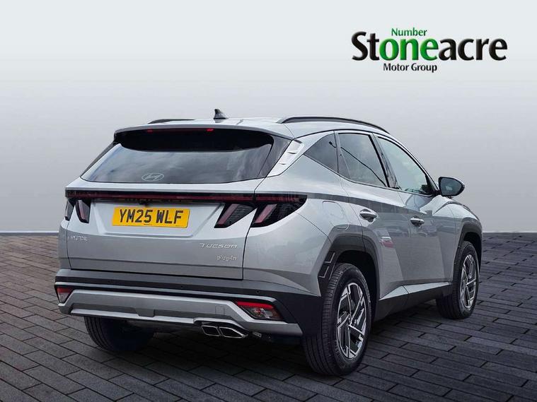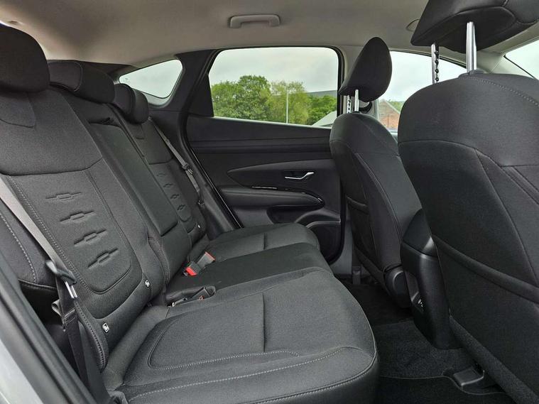 12.3" LCD display with driver's supervision instrument cluster, 12.3" widescreen navigation with bluelink and mapcare, Bluetooth system, Cruise control, Digital clock, Drive mode selector, Driver attention warning, E-call, Emergency stop signalling system, Forward Collision Avoidance Assist (FCA) - Car, Pedestrian and Cycle, Front and rear parking sensors, Hyundai road side assistance, Intelligent speed limit assist, Lane follow assist, Lane keep assist, Over the air updates(OTA), PAS, Rear camera and guidance parking system, Rev counter, Tailgate open warning light, Trip computer, Trip odometer, Voice recognition, Water temperature gauge, Windscreen washer fluid sensor and warning indicator, Wireless Apple CarPlay/Android Auto, Wireless phone charging pad, Charging cable - 7 pin type 2, Charging cable - Emergency 3 pin connector mode 2 (ICCB), 2 front and 2 rear speakers with 2 tweeters, 2 front and 2 rear USB-C ports, DAB Digital radio, Steering wheel mounted audio/phone controls, Adjustable intermittent front windscreen wipers with aero wiper blade, Auto dimming rear view mirror, Automatic defog system, Automatic headlights with dusk sensor, Automatic windscreen wipers with rain sensor, Black wheel arches, Body colour bumpers, Body colour door mirrors with integrated indicators, Body colour exterior door handles, Electrically adjustable, heated and power folding door mirrors, Follow me home headlights, Front and rear electric windows with anti-trap mechanism and one touch control, Front fog lights, LED 3rd brake light, LED daytime running lights, LED Headlights, LED rear lights, Positioning Lights - LED, Privacy glass - Rear windows and tailgate, Rear side wing doors, Rear wash/wipe with intermittent wipe setting, Roof rails, Soft touch rear door paneling, Tinted glass with windscreen shade band, Trailer stability assist, 12V power outlets in front console and luggage compartment, 3 seat bench in 2nd row, 40/20/40 split folding rear seat, 64 colours interior ambient lighting, Adjustable head restraints (Up and down), Cupholders in rear armrest, Door courtesy lights, Driver and passenger sunvisors with illuminated LED vanity mirrors, Driver's seat manual height adjust, Dual zone climate control, Front and rear door pockets, Front armrest with storage box, Front centre console and door bottle holders, Height/reach adjustable steering column, Illuminated/air conditioned glove compartment, ISOFIX child seat anchorage points attached on outer rear seats, Leather wrapped steering wheel and gear knob, LED interior lighting, Luggage compartment lighting, Luggage cover, Luggage hooks, Luggage net, Manual height adjustable front passenger seat, Map and reading lights, Premium cloth upholstery, Rear seat remote folding function, Reclining rear seats, Retractable load cover, Single front passenger seat, Sunglasses holder, Touch sensitive climate controls with temperature dials, Underfloor boot compartment, Trailer wiring package - Tucson, 3x3 point rear seatbelts, Active bonnet, Airbag - Front, front side, curtain and centre front airbags, Anti-lock brake system (ABS), Brake assist function, Childproof rear door locks, Curtain airbag roll over sensor, Downhill brake control, Electric parking brake, Electronic stability control, Front and rear seatbelt reminder, Front passenger airbag deactivation switch, Front seatbelt pretensioners, Hill start assist control (HAC), Multi-Collision braking, Outer rear seatbelt height adjustment, Seatbelt height adjustment for front seats, Traction control, Tyre pressure monitoring system with individual tyre pressure display - TPMS, Vehicle stability management, Deadlocks, Immobiliser, Locking wheel nuts, Remote control central locking, Smart key with keyless entry and engine start/stop button, Speed sensitive auto door locking, Thatcham category 1 alarm, 17" Alloy wheels, Tyre repair kit,