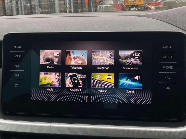 Amundsen satellite navigation with 9.2" glass colour touchscreen display, web radio, voice control and traffic sign recognition, Bluetooth system, E-call, Front assist system, Gesture control, PAS, Service indicator, Speed limiter, Wireless SmartLink for apple car play, android auto and mirrorlink, 8 Speakers, Auxiliary input socket, DAB Digital radio, Body colour bumpers, Body colour door mirrors and handles, Chrome grille surround, Dimming rear view mirror with black surround, Electrically adjustable and heated door mirrors, Front and rear electric windows, Headlight range control, Heated rear window, LED rear lights - low functionality, Light sensors, Privacy glass, Rear fog lights, Rear side wing doors, Rear wiper, 12V Accessory socket in centre console, 3 seat bench in 2nd row, Chrome inner door handles, Cloth upholstery, Front head restraints, Glove compartment with illumination, Height adjustable driver and front passenger seats - manual, Ice scraper, Isofix child seat fittings on outer rear seats, ISOFIX on front passenger seat, Manual lumbar support for front seats, Rake/reach adjustable steering wheel, Reading lights, Single front passenger seat, Sun visors with illumination on front passenger, Textile floor mats, Third rear headrest, Top tether for front passenger seat, Umbrella in driver's door, 3x3 point rear seatbelts, Airbags - driver and front passenger, ESP, Front passenger airbag deactivation switch, Front side airbags with curtain airbags, Hill hold control, Manual parking brake, Manual rear child locks, One tone horn, Rear disc brakes, Seatbelt reminder for driver an co-driver, Traction control, Tyre pressure monitor, Anti-theft alarm system with interior monitoring, backup horn, towing protection and remote central locking with SAFE system, Anti-theft wheel bolts, Electronic engine immobilizer, Silver haptic decorative insert on the dashboard with hot stamping in glossy black,