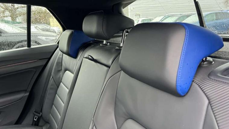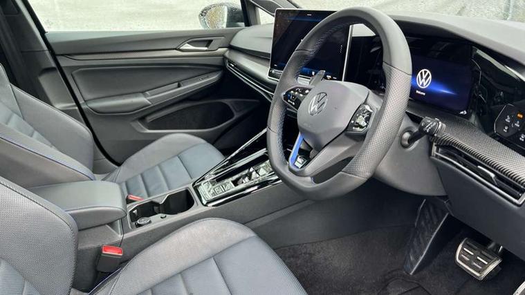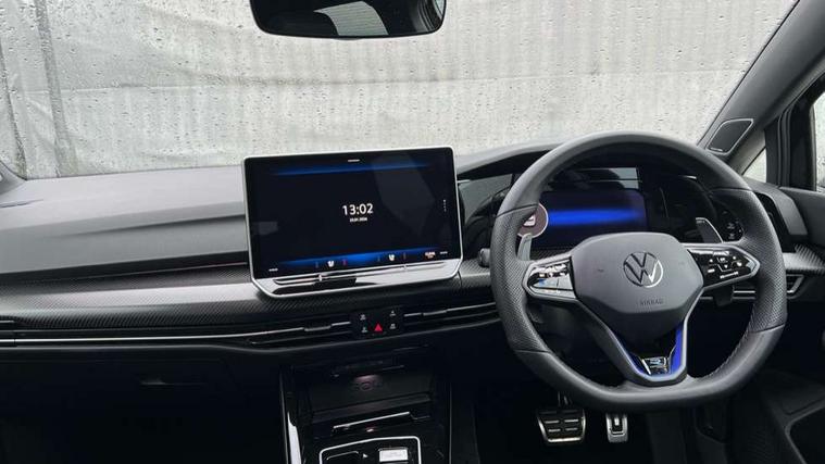 Activated carbon canister, Adaptive cruise control (ACC), Advanced driver attention and drowsiness monitor, Dynamic road sign display, E-Sim card for online connectivity, eCall emergency call system, Electronic maximum speed limit increased to 270 km/h, includes driving Modes 'drift' and 'special', larger roof spolier and GPS laptimer + G-Meter, Multi-color Digital cockpit pro, selection of different info profile possible, Multifunction front facing camera for distance control, Navigation system, Oncoming vehicle braking when turning including swerve support, Side assist blind spot lane change system, rear traffic alert and exit warning system, Speed limiter, Speedo, rev counter, electronic odometer, trip, service interval display, exterior temperature and fuel gauge, Traffic jam assist, Voice enhancer and voice control, Warning signal and warning light for front and rear seatbelts not fastened, We connect plus preparation, We connect preparation, Wireless app connect, All wheel drive - 4Motion, Petrol Particulate Filter, Start-stop system with battery regeneration (recuperation - energy recovery during braking), XDS electronic differential lock for improved traction and handling, 2 USB C ports in front, 2 USB charging sockets on the centre console in the rear charging capacity upto 45W, Digital radio reception (DAB), Diversity antenna for FM reception, Gaming platform via car app, Infotainment system with 12.9" display, Mobile phone interface with inductive charging feature, 3rd brake light, Auto dimming rear view mirror, Automatic headlamp activation with Coming home and Leaving home feature, Black badge on B-pillar, Black mirror caps, Black strips on radiator grille and headlights, Body colour door handles, Darkened headlights, Darkened R Logos and VW logos in front, rear and on fender, Exterior mirrors convex on the left and aspherical on the right, Front and rear electric windows, Front fog lamps and cornering light, Heat insulating windshield made of laminated glass, Illuminated lighting animation with wake up/goodbye scenario, LED matrix headlights with ambient light V2, advanced high beam, dynamic range contol with cornering, LED rear lamp with indicator, poor weather, LED separate daytime running light, R name plate, Rain sensor, Rear fog light on one side and reversing lights on both sides, Rear side wing doors, Rear tinted glass 65% light absorbing from B pillar backwards, Rear windscreen washer and wiper with interval delay, Remote electrically foldable door mirrors, puddle lights and reverse activated passenger's door mirror, Welcome light with surround lighting, 12V socket in front centre console, 12V socket in luggage compartment, 3 rear head restraints, 3 seat bench in 2nd row, 30 colour ambient lighting, illuminated center console storage compartment in front, Air care climatronic 3 Zone automatic climate control with rear air conditioning control panel, Aluminium gearshift handle, Brushed stainless steel pedals, Chrome plated radiator grille inserts, air vent surrounds and light switch surrounds, Entry lights, Front + rear black carpet mats, Front centre armrest, Integrated front head restraints, ISOFIX anchors for child seats on outer rear bench seats and on front passanger seat compatible for i-Size, Luggage compartment lighting, Rear cupholder and loadthough, Single front passenger seat, Soul black instrument panel, Soul black roof lining, Split folding backrest with centre armrest and unsplit rear seat bench, Sun visors with illuminated vanity mirrors, Driver assistance pack - Golf Estate/Hatchback Auto, R styling pack - Golf, Technology park and comfort pro package - Golf Hatchback, 3 point height adj front seatbelts + pretensioners, 3 rear three point seatbelts, ABS, Autonomous emergency braking front assist with pedestrian and cyclist monitoring, Child locks on rear doors, Driver and front passenger airbag with front passenger airbag deactivation, Electronic parking brake with auto hold, ESC (Electronic Stability Control), Extended pedestrian protection measures, Front and rear black brake calipers with darkened R-logo, Hill start assist, Rear disc brakes, Two tone horn, Tyre pressure loss indicator, Volkswagen roadside assistance, Anti theft wheel bolts, Preparation for alcohol interlock, 19" Estoril alloy wheels in black with progressive steering, Sporty vehicle dynamics, Tool kit for tyre mobility set, Tyre mobility kit Includes 12V compressor and tyre sealant, Wheel hub cover with darkened R-logo,