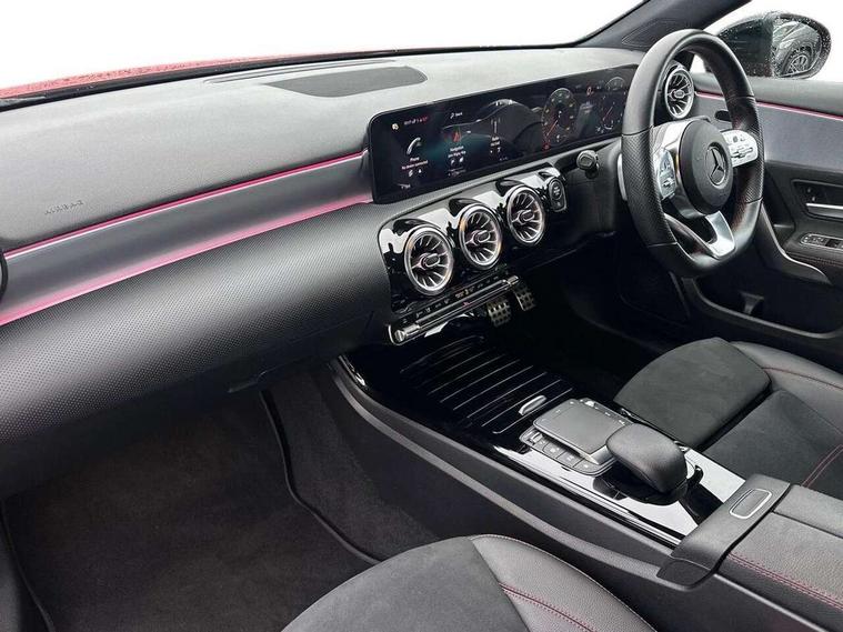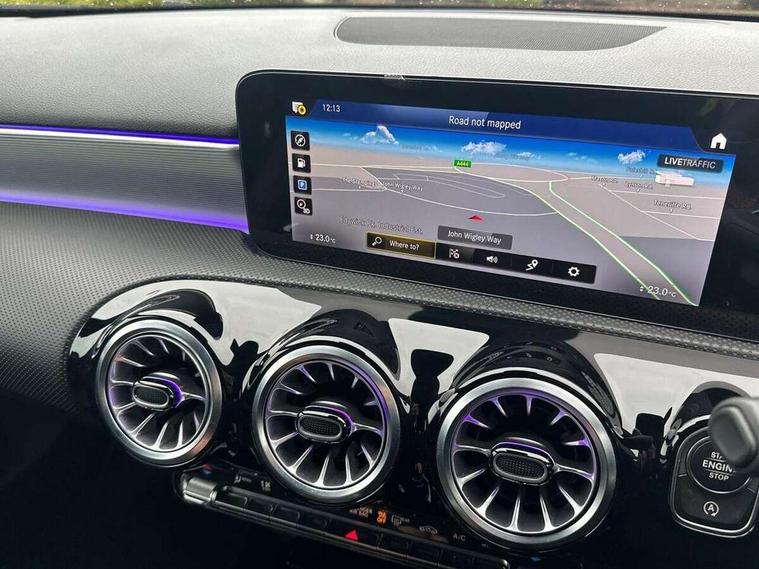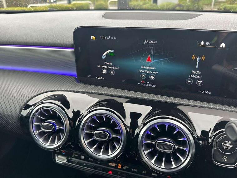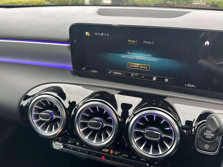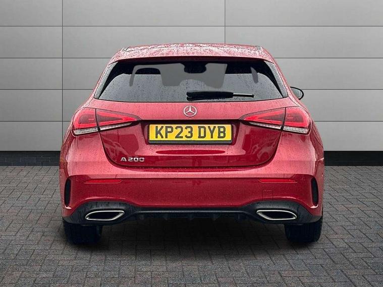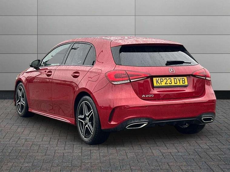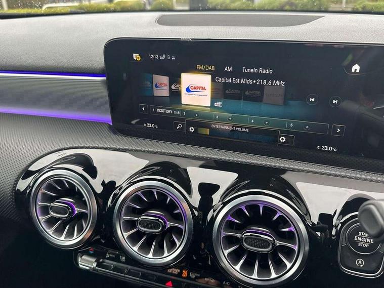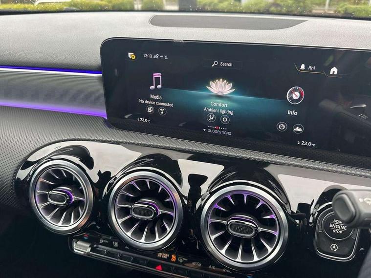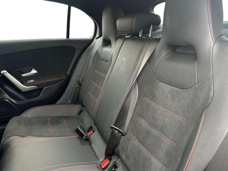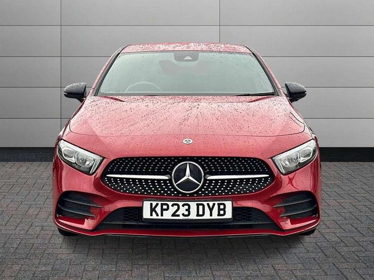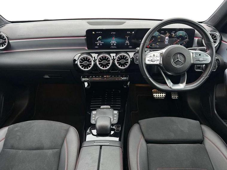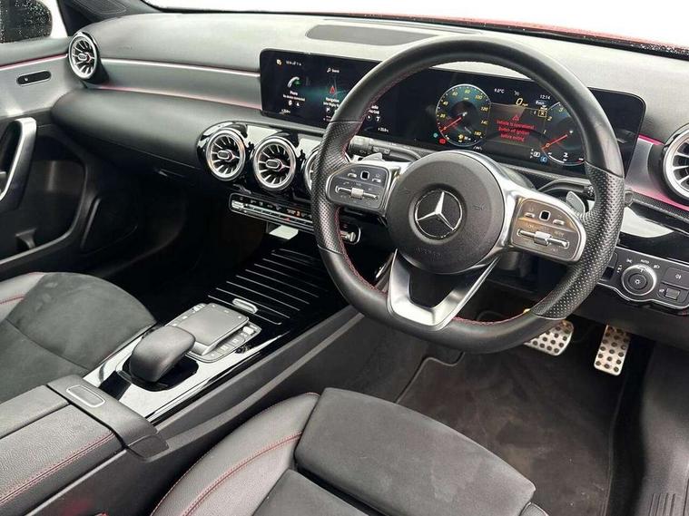 10.25" Digital instrument cluster display screen, 10.25" media display, 180 degree rear view camera with parking guidelines, Active parking assist with visual and audible warning of detected obstacles, Attention assist, Brake pad wear indicator warning light, Car wash mode, Cruise control + speed limiter, Direct steering, Dual bluetooth interfaces, DYNAMIC SELECT with a choice of driving modes (ECO, Comfort, Sport and Individual), ECO start/stop function, Fluid level warning indicator for fuel, oil, coolant and washer fluid, Hard-disk navigation, Hey Mercedes Voice activation, Lamp failure indicator, Lane keeping system, Mercedes me connect including emergency call system, accident recovery, breakdown and maintenance management, Mercedes me remote services, Outside temperature gauge, Owners manual in English, Pre-installation for private car sharing, Preinstallation for Mercedes Benz link, Service indicator (ASSYST), Smartphone integration with Apple CarPlay and Android auto, Speed limit assist, Speed sensitive power steering, Trip computer, Ultrasonic sensors positioned in the front and rear bumpers, Lowered comfort suspension, Rear axle torsion beam, 2 USB ports (type C) in rear stowage compartment and one in front of center console, 6 speakers, DAB Digital radio, MBUX multimedia system with DAB digital radio and touchpad including satellite navigation, Mercedes-Benz sound system - 100W, 4 Electric Front and Rear windows, Adaptive brake lights, AMG bodystyling - Front apron with splitter in chrome, rear apron with chrome trim and chrome visible trim elements in tailpipe, Automatic headlights, Black weather strip, Body colour bumpers, Body colour door handles with chrome inserts, Body colour side skirt, Electric adjustable and heated door mirrors with integrated LED side indicators, Exclusive diamond radiator grille, Exhaust system - Twin visible tailpipes in polished stainless steel, Headlamp assist automatic headlamp activation, Heated glass rear windscreen + timer control, LED High level third brake light, LED high performance headlamps with integrated LED daytime running lights, LED tail lamp, Privacy glass, Radio aerial, Rain sensing windscreen wipers with two sensitivity settings, Rear fog lights, Rear side wing doors, Rear wiper, 3 seat bench in 2nd row, 3 Spoke flat bottom leather multi function steering wheel with perforated leather in grip area, 40:20:40 split folding rear seats, Artico man-made leather/Microfibre Dinamica upholstery with red contrast stitching, Auto Mercedes-Benz child seat recognition sensor, Black air vents with surround in silver chrome, Black roof lining, Brushed stainless steel sports pedals with rubber studs, Controller on centre console with chrome surround, Floor mats with AMG lettering, Front centre armrest with storage compartment, Front seat backs luggage nets, Galvanished gear shift paddles on steering wheel, Heated front seats, Height/reach adjustable steering column, Illuminated Mercedes Benz lettering front door sills with changeable cover, Interior lighting - 64 colour Ambient lighting, Interior mirror with reading lamps in black and frameless, Manual height adjustable front seats, Rear head restraints, Seat occupancy sensor for front passenger seat, Single front passenger seat, Sports seats with integrated headrests, Stowage compartment in centre console with retractable cover, Sunvisors with illuminated vanity mirrors, Touchpad on center console, Twin front cupholders, Two zone thermotronic luxury automatic climate control, Light and sight pack - A Class, Mirror package - A Class, Night pack - A Class Saloon/Hatchback, Seat comfort pack - A Class, 3 rear 3 point seatbelts, ABS with Brake Assist, Active bonnet, Active brake assist includes forward collision warning system with autonomous braking, Adaptive brake assist with hold function and hill start assist, Black seatbelts, Childproof locks manually operated for rear doors and electrically operated for rear power windows, Crash responsive emergency lighting, Driver and passenger head and side airbags, Drivers knee airbag, Dual stage driver/passenger airbags, Electronic parking brake, ESP curve dynamic assist, ESP with ASR, Front and rear seatbelt reminder, Front brake callipers with Mercedes Benz lettering, ISOFIX and top tether child seat fixing points in two outer rear seats, Tyre pressure monitoring system, Warning triangle and first aid kit, Window airbags, Alarm system/interior protection/immobiliser, Keyless Go, Remote central locking and crash sensor with emergency opening function, Urban guard vehicle protection system with immobiliser and interior protection, Matrix look light longitudinal grain aluminium trim element, 18" AMG 5 twin spoke light alloy wheels aerodynamically optimised painted in black with highsheen finish, Summer tyres, Tirefit sealant kit,