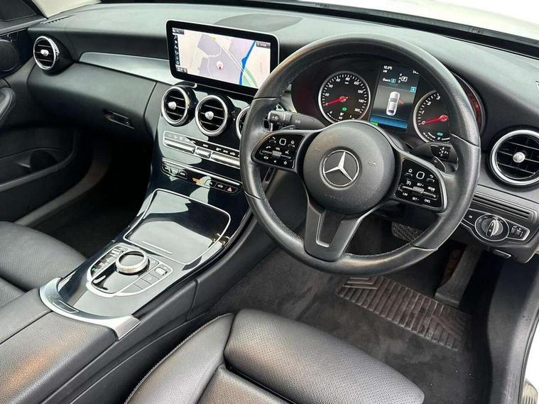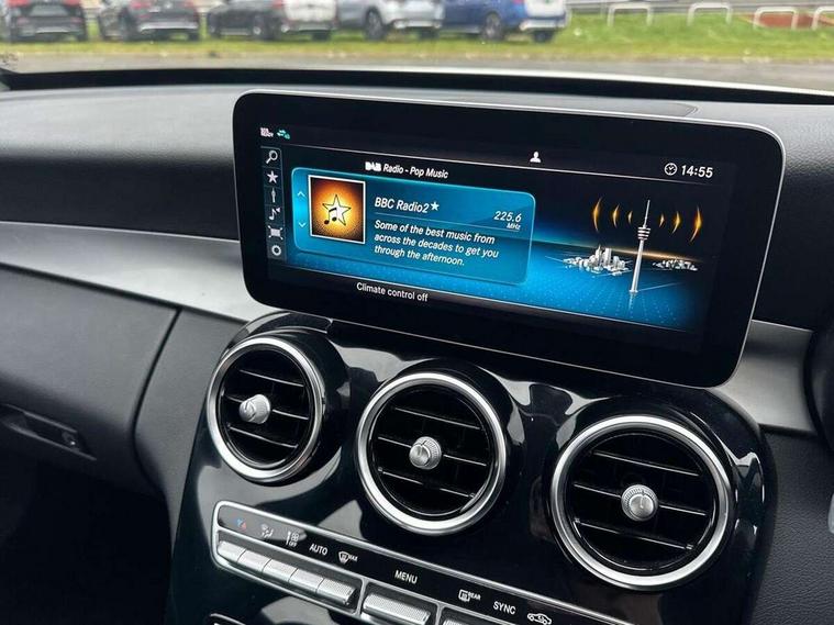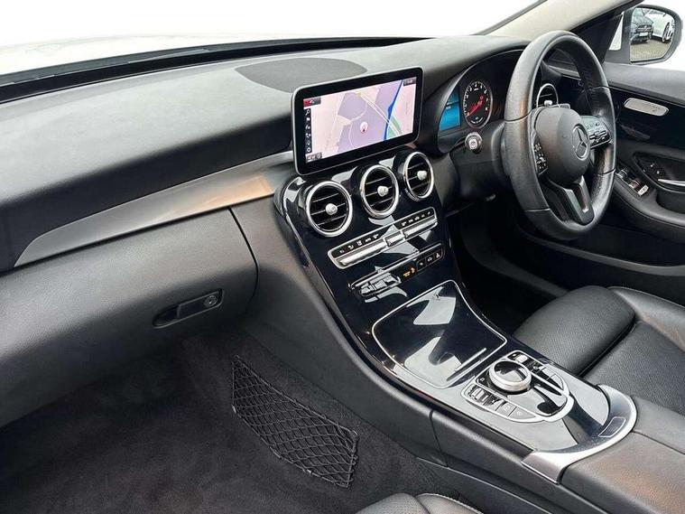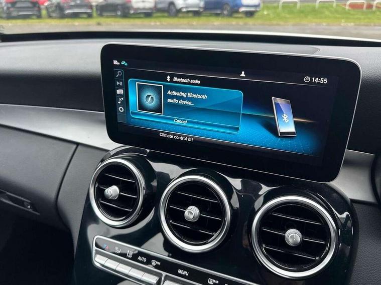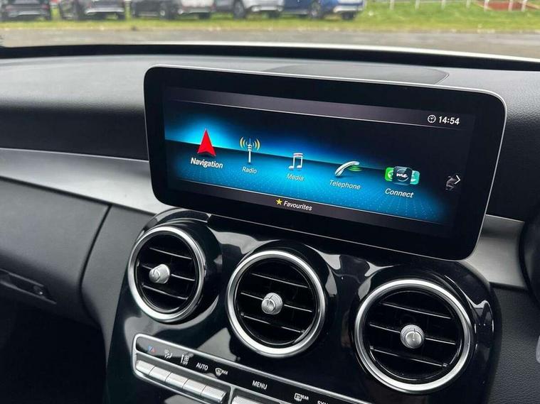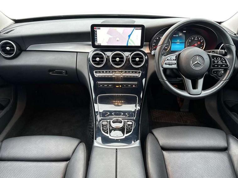 10.25" display screen, Active park assist with parktronic system, Attention assist, Bluetooth system, Collision prevention assist plus, Cruise control with speedtronic variable speed limiter, DYNAMIC SELECT with a choice of driving modes (ECO, Comfort, Sport, Sport+ and Individual), Instrument cluster with display, Multi function trip computer, Multifunction colour display, Navigation system, Outside temperature gauge, Pre-wiring for SD navigation system, Remote boot release, Reversing camera, Service indicator (ASSYST PLUS), Speed sensitive steering, Agility control comfort suspension, Petrol Particulate Filter, 2 USB ports in centre console, DAB Digital radio, Frontbass loudspeakers, Mercedes Audio 20 radio/single CD + telephone keypad, SD card slot, Steering wheel mounted audio controls, Adaptive brake lights, Aerial in rear window, Body coloured bumpers, Body coloured door mirrors, Electric windows one touch open/close, Electrically adjustable and heated door mirrors, Green tinted glass, Halogen headlights, Heated windscreen washers, LED daytime running lights, LED Indicators, LED tail lights, LED third brake light, Radiator grille with integral star and 2 louvres in matt iridium silver, Rain sensor windscreen wipers, Side windows surround in matt black, 2 cupholders in front centre console, 3 spoke leather steering wheel, 40:20:40 split folding rear seats, Artico man-made leather upholstery, Auto Mercedes-Benz child seat recognition sensor, Black floor mats, Dual zone automatic climate control, Electric front seat height adjustment, Front and rear head restraints, Front centre armrest with storage compartment, Front door sills with Mercedes Benz lettering, Gearshift paddles, Heated front seats, Illuminated glovebox, Multifunction steering wheel, Rear top tether child seat ISOFIX attachment, Lighting pack - C class, Mirror pack - C Class, Seat comfort pack - C Class, Stowage space pack - C Class, 3 rear 3 point seatbelts, ABS with Brake Assist, Active bonnet, Adaptive brake system, Black seat belts, Child proof door locks, Crash sensor, Drivers knee airbag, Drivers pelvis airbag, Dual stage driver/passenger airbags, Electronic parking brake, ESP with ASR, Front passenger seat occupancy sensor, Front side airbags, Hill start assist, Rear seatbelt warning indicator, Tyre pressure monitoring system, Warning triangle and first aid kit, Window airbags, Alarm system/interior protection/immobiliser, Chrome surround in electric key, Black high gloss trim, 17" 5 twin spoke aero alloy wheels in Silver, Tyre inflation kit,