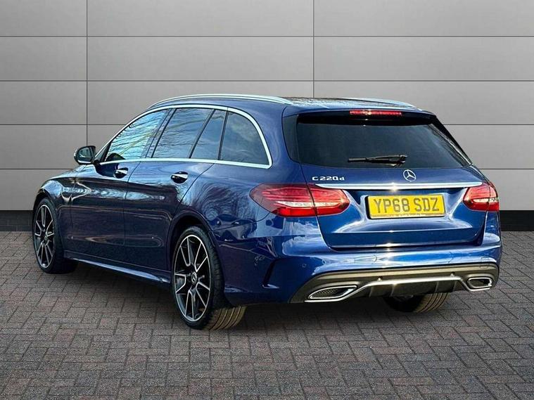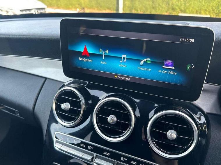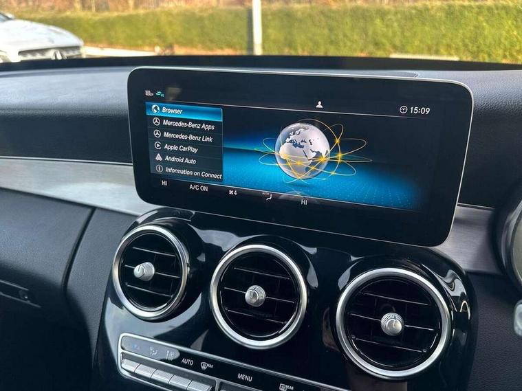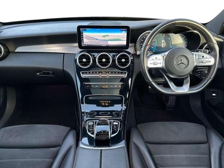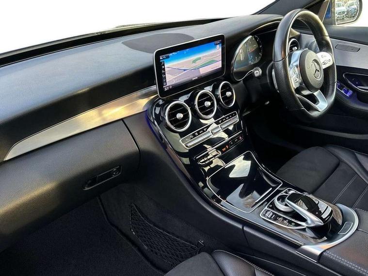 12.3" digital instrument cluster display, 360 degree parking camera, Active park assist with parktronic system, Attention assist, Bluetooth system, Collision prevention assist plus, Comand Online HDD Nav with media interface, radio/CD/DVD/MP3, 10.25 screen, linguatronic voice control, DYNAMIC SELECT with a choice of driving modes (ECO, Comfort, Sport, Sport+ and Individual), Multi function trip computer, Outside temperature gauge, Power opening/closing tailgate, Remote boot release, Service indicator (ASSYST PLUS), Smartphone integration with Apple CarPlay and Android auto, Wireless charging, Diesel particulate filter, 2 USB ports in centre console, Burmester surround sound system, DAB Digital radio, SD card slot, Steering wheel mounted audio controls, Adaptive brake lights, Aerial in rear window, AMG body styling, Body coloured bumpers, Body coloured door mirrors, Chrome pins diamond radiator grille with integrated stars, Chrome roof rails, Electric front sliding and fixed rear panoramic glass sunroof, Electric windows one touch open/close, Electrically adjustable and heated door mirrors, Green tinted glass, Heated windscreen washers, LED daytime running lights, LED Indicators, LED tail lights, LED third brake light, Multi beam LED headlights, Rain sensor windscreen wipers, Rear wiper, Side windows surround in polished aluminium, Twin exhaust pipes, 2 cupholders in front centre console, 3 spoke flat bottom AMG steering wheel in nappa leather, 40:20:40 split folding rear seats, AMG floormats, AMG sports seats, Auto Mercedes-Benz child seat recognition sensor, Dual zone automatic climate control, Electric front seat height adjustment, Front and rear head restraints, Front centre armrest with storage compartment, Front door sills with Mercedes Benz lettering, Gearshift paddles, Heated front seats, Illuminated glovebox, Interior lighting - 64 colour Ambient lighting, Load compartment cover, Multifunction steering wheel, Rear top tether child seat ISOFIX attachment, Sports pedals with stainless steel surfaces and rubber studs, Sunvisors with illuminated vanity mirrors, Lighting pack - C class, Mirror pack - C Class, Seat comfort pack - C Class, Stowage space pack - C Class, 3 rear 3 point seatbelts, ABS with Brake Assist, Active bonnet, Adaptive brake system, Black seat belts, Brake calipers with Mercedes-Benz lettering + perforated brake discs, Child proof door locks, Crash sensor, Drivers knee airbag, Drivers pelvis airbag, Dual stage driver/passenger airbags, Electronic parking brake, ESP with ASR, Front passenger seat occupancy sensor, Front side airbags, Hill start assist, Rear seatbelt warning indicator, Tyre pressure monitoring system, Warning triangle and first aid kit, Window airbags, Alarm system/interior protection/immobiliser, Chrome surround electric key, Keyless entry and keyless start, Remote central locking, Tyre inflation kit,