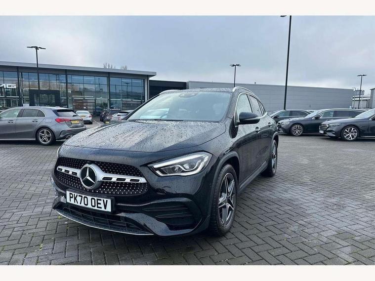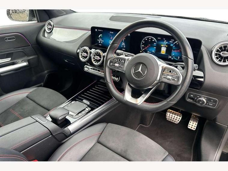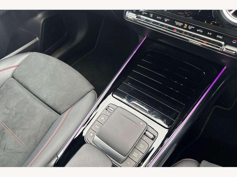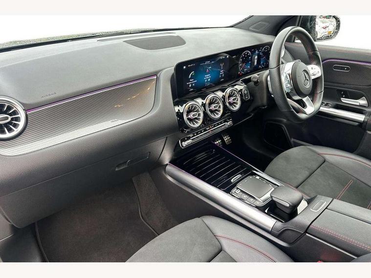10.25 inch touchscreen central media display, 10.25" Digital instrument cluster display screen, Active lane keeping assist, Attention assist, Augmented reality navigation, Cruise control + speed limiter, Direct steering, DYNAMIC SELECT with a choice of driving modes (ECO, Comfort, Sport, Sport+ and Individual), Easy-pack tailgate, ECO start/stop function, Fluid level warning indicator for fuel, oil, coolant and washer fluid, Hard-disk navigation, Hey Mercedes Voice activation, Lamp failure indicator, Mercedes me connect including emergency call system, accident recovery, breakdown and maintenance management, Multi function trip computer, Outside temperature gauge, Owners manual and service booklet in English, Pre-installation for Vehicle Monitoring, Pre-installation for Vehicle set up, Pre-installation of private car share, Radio aerial integrated into front and rear windshields, Service indicator (ASSYST), Smartphone integration with Apple CarPlay and Android auto, Speed limit assist, Status display for rear seat belts in instrument cluster, Wireless charging, Lowered comfort suspension, Rear axle multi-link, 2 USB ports (type C) in rear stowage compartment and one in front of center console, Bluetooth connectivity including audio streaming, DAB Digital radio, MBUX multimedia system with DAB digital radio and touchpad including satellite navigation, Media interface, Mercedes-Benz advanced sound system - 225W, Adaptive brake lights, Aerial for GPS, Aluminium roof rails, AMG front and rear apron, AMG specific/dual flow exhaust pipes in chrome (non-functional), Automatic headlamp activation, Beltline strips and weather strip in chrome, Black grained claddings with chrome parts, Body colour bumpers, Body colour door mirrors, Body coloured door handles with chrome insert for keyless entry, Car wash function, Dark privacy glass from B-pillar backwards, Electric front windows, Electric rear windows, Electrically adjustable and heated door mirrors with integrated LED indicators, Heated glass rear windscreen + timer control, Heated windscreen wash system, Interior mirror with black reading lamps and frameless, LED high performance headlamps with integrated LED daytime running lights, LED tail lights in two piece design, LED third brake light, Matt titanium grey front and rear apron trim, Pre-installation for trailer coupling, Rain sensor windscreen wipers, Rear fog lights, Roof spoiler, Single lamella raditor grille with chrome dotted diamond grille and inlay, 12V power socket in centre console, 3 spoke multifunction sports steering wheel in nappa leather with flattened bottom and perforated grip area, 40:20:40 split folding rear seat backrests, Adjustable head restraints, Air conditioning - Two zone thermotronic luxury automatic climate control with display, Ambient lighting in front headrests, AMG floor mats with AMG lettering and stiched edging, Artico man-made leather/Microfibre Dinamica upholstery with red contrast stitching, Auto Mercedes-Benz child seat recognition sensor, Black roof lining, Brushed door pulls in silver chrome, Courtesy light in boot, Front centre armrest with stowage, Galvanished gear shift paddles on steering wheel, Heated front seats, Illuminated door sills, Illuminated glovebox, Interior lighting - 64 colour Ambient lighting, Leather trimmed gearknob, Luggage net on driver/front passenger seat backrest, Manually height and reach adjustable steering column, Multi-gesture touchpad control on center console, Net in front passenger footwell, Sports pedals in brushed stainless steel with black rubber studs, Sports seats, Stowage compartment in centre console, Stowage compartment with retractable cover, Sunvisors with illuminated vanity mirrors, Twin front cup holders, Two outer rear seat isofix and top tether child seat fixing points, AMG body styling pack - GLA, Comfort seat pack - GLA Class, Interior lighting with light and sight pack - GLA, Load compartment pack - GLA, Mirror pack - GLA Class, Parking pack - GLA, 3 rear 3 point seatbelts, ABS with Brake Assist, Active bonnet pedestrain safety measure which detects an impact and raises bonnet by 65mm, Active brake assist includes forward collision warning system with autonomous braking, Adaptive brake assist with hold function and hill start assist, Bonnet with power domes, Brake pad wear warning indicator, Childproof locks manually operated for rear doors and electrically operated for rear power windows, Crash responsive emergency lighting, Driver and passenger head and side airbags, Drivers knee airbag, Dual stage driver/passenger airbags, Electronic parking brake, ESP curve dynamic assist, ESP with ASR, Front and rear seatbelt reminder, Front brake callipers with Mercedes Benz logo lettering on front, Front brake discs internally ventilated and perforated, Front passenger seat occupancy sensor, Tyre pressure monitoring system, Warning triangle and first aid kit, Window airbags, Alarm system with immobiliser and interior protection -Thatcham category 1, Keyless Go Lock/Unlock function, Keyless Go starting function, Remote central locking and crash sensor with emergency opening function, Vehicle key with decorative surround in chrome, Carbon structure trim, Chrome air vent surrounds, 19" AMG 5 twin spoke light alloy wheels aerodynamically optimised painted in tantalite grey with a high sheen finish, Summer tyres, Tirefit tyre sealant kit,