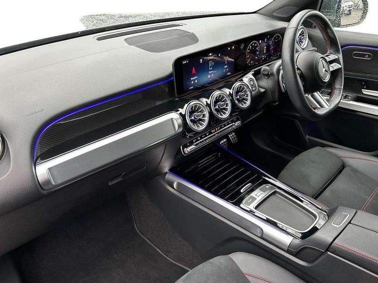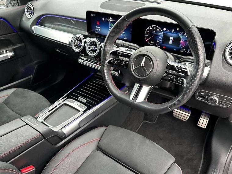 10.25 inch touchscreen central media display, 10.25" Digital instrument cluster display screen, 12 ultrasonic sensors in front and rear bumpers, 180 degree reversing camera with parking guidelines, Additional drive program "OFF-ROAD", Assisted parking: reversing backwards into perpendicular and parallel parking spaces, Attention assist - Monitors steering behaviour and long journey fatigue, Blind spot assist, Bluetooth connection, Brake pad wear indicator warning light, Car wash mode, Convenience opening and closing, Direct steering, DYNAMIC SELECT with a choice of driving modes (ECO, Comfort, Sport and Individual), ECO start/stop function, Engine start/stop button, Exit warning function, Fluid level warning indicator for fuel, oil, coolant and washer fluid, Hard disk navigation, Hey Mercedes Voice activation, Lamp failure indicator, Lane keep assist, MBUX navigation premium, Mercedes me connect including emergency call system, accident recovery, breakdown and maintenance management, Mercedes me remote services, Outside temperature gauge, Owners manual and service booklet in English, Pre-installation of private car share, Preinstallation for parking damage notification, Radio aerial integrated into front and rear windshields, Remote boot closing, Service indicator (ASSYST), Smartphone integration with Apple CarPlay and Android auto, Speed limit assist, Tailgate, Trip computer in multifunction display with current consumption indicator, Ultrasound sensors - positioned in the handle of the tailgate, Wireless charging, Comfort suspension with ride height lowering, Rear axle multi-link, 1 USB-C port in the oddments compartment (Charge + Data transfer), 2 USB-C ports for the rear on the centre armrest (Charge only), 2 USB-C ports under the front centre armrest (Charge + Data transfer), DAB digital radio tuner, MBUX multimedia system, Mercedes Benz sound system (225 W) with 10 speakers, 1 central speaker, speakers on doors, a tweeter on door, one sub woofer + boost amplifier, Pre installation for Mercedes Benz Link, Adaptive brake lights, Adaptive high beam assist, AMG front apron with front splitter in the colour of the vehicle with chrome trim element, AMG rear apron with visible tailpipe trim and chrome trim element, AMG specific/dual flow exhaust pipes in chrome (non-functional), Auto dimming rear view mirror, Beltline trim and window line trim strip in high gloss aluminium, Black grained side sill trim with chrome inlay, Body coloured door handles, Electric adjustable and heated door mirrors with integrated LED side indicators, Electric folding door mirrors, Front and rear electric windows, Headlamp assist automatic headlamp activation, Heat insulating dark-tinted glass starting from B-pillar, Heated glass rear windscreen + timer control, High level LED third brake light, Illuminated door sill panels with Mercedes-Benz lettering, Interior mirror with black reading lamps and frameless, LED high performance headlamps with integrated LED daytime running lights, LED tail lamp, Polished aluminium roof rails, Radiator grille as a diamond grille with chrome pins and central Mercedes star, Rain sensor windscreen wipers, Rear fog lamp, Rear side wing doors, Rear wiper, Single louvre in matt grey with chrome inserts and black highlights, Two visible tailpipe trim elements exhaust, Ultrasonic sensors - positioned in the front and rear bumpers, Wheel arch liners in the colour of the vehicle, 12V socket in the oddments compartment, 3 seat bench in 2nd row, 3 twin spoke flattened multifunction steering wheel in nappa leather - horizontal twin spoke in high gloss black, vertical twin spoke in silver chrome, 4 way adjustable lumbar support, 40:20:40 split folding rear seats, Air conditioning - Two zone thermotronic luxury automatic climate control with display, Air vents with silver chrome surrounds, AMG floor mats, AMG sports pedals with brushed stainless steel surfaces and black rubber studs, Automatic child seat recognition sensor, Black roof lining, Door handles with chrome inserts, Fluorescent jacket, Front and rear headrests, Front centre armrest with stowage, Galvanised steering wheel gearshift paddles in silver chrome, Handle recess lighting, Heated front seats, Height adjustable head restraints, Height/reach adjustable steering column, Interior lighting - 64 colour Ambient lighting, Luggage net on driver/front passenger seat backrest, Single front passenger seat, Sports seats, Stowage compartment with retractable cover, Sun visors with illuminated vanity mirrors, Third row of seats for two people on rear seat, Twin front cup holders, Two outer rear seat isofix and top tether child seat fixing points, Easy pack tailgate, Interior lighting with light and sight pack - GLB, Seat comfort package - GLB, 3 rear 3 point seatbelts, Active bonnet pedestrain safety measure which detects an impact and raises bonnet by 65mm, Active brake assist includes forward collision warning system with autonomous braking, Adaptive brake assist with hold function and hill start assist, Airbags - kneebag for driver, Anti-lock braking system (ABS) with brake assist, Black seatbelts, Bonnet with power domes, Childproof locks manually operated for rear doors and electrically operated for rear power windows, Crash responsive emergency lighting, Curve dynamic assist, Downhill speed regulation (DSR), Driver and front passenger head and sidebags, Driver and front passenger windowbags, Dual stage driver and front passenger airbags, Electric parking brake, Electronic stability programme with acceleration skid control, Front and rear seatbelt reminder, Front brake callipers with Mercedes Benz lettering, Front passenger seat occupancy sensor, Perforated front brake discs, Tyre pressure monitoring system, Warning triangle and first aid kit, Guard 360 degree vehicle protection - Anti theft alarm system, tow away protection with visual, acoustic warning and alarm, Interior monitoring system, Keyless Go Access and drive authorisation sy