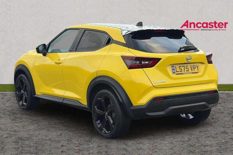 12.3" full colour TFT screen combimeter, Drive modes select (Eco, normal and sport), Emergency and breakdown call, Front parking sensor, Idle start/stop system, Intelligent driver alert system, Intelligent lane intervention, Lane departure warning system, Nissan connect 12.3" touch screen entertainment system, Nissan connect nav with TomTom traffic, Nissan connect services, Outside temperature sensor, Power Steering, Rear parking sensor, Stop/start button, Traffic sign recognition, Trip computer, Voice recognition, WiFi connectivity, Wireless Apple CarPlay and Google Android auto, Wireless Smartphone charger, 10 Bose speakers 8 speakers and 2 headrest speakers for driver/passenger seats, 2 X Rear console USB port, Bluetooth system, USB, Aux-in and 12V socket, Bose personal plus audio system, DAB Digital radio, Auto dimming frameless rear view mirror, Automatic hazard signal with emergency stop signal, Body colour door handles, Electrically adjustable door mirrors with integrated indicators, Follow me home headlights, Front and rear electric window with one touch driver window, High beam assist, LED 3rd brake light, LED daytime running lights, LED headlamps, LED rear fog lamp, LED rear lamps, One touch passenger window, Rear privacy glass, Rear side wing doors, Rear wiper, Roof spoiler, Shark fin roof antenna in solid Black, Solid black door mirrors, Three blink turn signal, 3 height adjustable rear headrests, 3 seat bench in 2nd row, 60/40 split folding rear seat, Card holder on driver sunvisor, Door ambient lighting, Driver seat back pocket, Driver side rear coat hanger, Driver/passenger sunvisors and vanity mirrors, Front and rear cabin lights, Front armrest, Front door pockets with bottle holders, Front head restraints, Front/rear passenger grab handles, Gear console ambient circle lighting, Height adjustable driver's seat, Internal chrome door handles, Luggage board, Luggage space lighting, Monoform sporty seats, Multifunction steering wheel, Passenger seat back pocket, PVC fabric upholstery, Rear door bottle holders, Single front passenger seat, Smooth synthetic leather steering wheel, Steering wheel mounted gearshift paddles, Synthetic leather kneepad, Synthetic leather shift knob, Telescopic steering wheel adjustment, Two cupholders in front centre console, Two rear isofix child seat anchorage points with top tether, Welcome light and console tray ambient lighting, Comfort pack - Juke, Heat pack with height adjustable passenger seats - Juke, ProPilot pack - Juke Auto, ABS with EBD and brake assist, Active ride control, Active Trace Control, Driver and passenger airbags, Driver and passenger side airbags, Electric handbrake with auto hold function, Electronic Stability Programme (ESP), Front and rear curtain airbags, Height adjustable seatbelts, Hill start assist, Intelligent emergency braking with pedestrian and cyclist recognition, Rear door child safety locks, Seatbelt reminder for driver/front passenger and rear seats, Three 3 point rear seatbelts, Traction control, Tyre pressure monitoring system, VDC Dynamic Vehicle Control, Alarm, Immobiliser, Intelligent key and start push button with walk away lock and approach unlock functions, Remote central locking, 19" Alloy wheels, Tyre puncture repair kit,