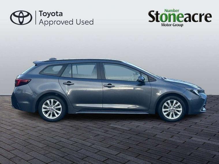 10.5" Multimedia display screen, Attention assist, Bluetooth telephone connectivity, Connected car functionality upgrade, tracker, remote status and e-care, Drive mode select (Eco, Normal), E-call, Electrically assisted power steering, EV drive indicator, Front and rear parking sensors with auto brake, Full Digital 12.3" TFT Digital Combimeter, Key reminder warning, Lane Departure Alert (LDA) switch on steering wheel, Memory on adjustable speed limiter, MyT connected services, Proactive driving assist (PDA), Reversing camera, Smart entry and push button start, Smartphone integration with Apple CarPlay and wired android auto, Tailgate, Toyota remote services, Toyota smart connect navigation, Wireless charger, Gasoline particulate filter, Vehicle Stability Control (VSC), 6 speakers, AM/FM radio, DAB Digital radio, Front USB-C in dashboard, Smart voice assist/ Voice recognition, USB and Aux in connectors + 12V front outlet, Anti-jam protection on power windows, Auto up and down function on all power windows, Automatic headlights with high beam assist, Black centre and side air vents, Black meshed front grille, Black roof rails, Black toyota logo in front, Body coloured bumpers, Body coloured door mirrors, Body coloured front spoiler, Body coloured outside door handles, Body coloured rear under guard, COROLLA alloy door scuff plates, Follow me home headlights, LED daytime running lights, LED front fog lights, LED High mounted stop light, LED multi beam headlights, LED multi reflector in headlights, LED rear combi lights with LED lightguide, Manual day/night rear view mirror, Manual headlight levelling system, New grille pattern, Noise reduction layer on front windows, Noise reduction layer on windscreen, Piano black diffuser, Power adjustable heated door mirrors, Power front windows, Power rear windows, Rain sensor, Rear side wing doors, Rear window defogger, Rear window wiper, Roof spoiler, Satin chrome insert on front air vents, Satin chrome insert on front door assist grips, Satin chrome inserts on rear passenger air vents, Shark fin antenna, Time adjustment on intermittent wiper, Turning signal integrated indicators in door mirrors, Unique lower skirt, Unique side rocker with black insert, UV-filter on driver and passenger windows, 12v power outlet - luggage side, 2 Shopping bag hooks in luggage compartment, 3 rear headrests, 3 seat bench in 2nd row, 3 spoke leather steering wheel with satin insert + gear knob, 4 tie down hooks in luggage compartment, 60/40 split folding rear seat, Adaptive cruise control (ACC) switch on steering wheel, Adjustable speed limiter switch on steering wheel, Audio, multimedia and telephone switches on steering wheel, Black armrest on centre console box, Black gear shift console, Boot light, Boot underfloor storage, Driver and front passenger personal light, Driver and passenger assist grip, Driver and passenger sun visor with mirror and light, Dual level boot floor, Dual sided deck board in boot, Dual zone automatic air conditioning with ECO mode switch, Fabric upholstery, Front and rear cup and bottle holders, Front and rear door pockets, Front head restraints, Front passenger seat, Front sliding fabric armrest, Heated seats, Illuminated entry system in room lamp, ISOFIX seat fixing (2 fixings on rear outer seats), Leather gear shift with satin chrome on gear shift console, Manual height adjustable for driver and front passenger seat, Manually tilt with sliding driver and front passenger seat, Passenger seat back pocket, Pollen filter, Power adjustable lumbar support on driver seat, Power window switches with satin chrome inserts, Rear armrest with 2 cupholders, Rear passenger coat hooks (2), Rear passenger personal lights, Remote air conditioning, Retractable tonneau cover with luggage partition net, Satin chrome inside door handles, Satin chrome surround on heater control panel, Satin chrome surround on speedometer, Side storage in boot, Sliding armrest on centre console box, Slow opening glovebox with lights, Textile floor mats, Tilt/telescopic steering column, Tonneau cover with under floor storage, Toyota easy flat system, Voice recognition switch on steering wheel, Whiplash Injury Lessening (WIL) feature (active headrest) for seats, Toyota safety sense 3 pack - Corolla, 3x3 point rear seatbelts, Adjustable driver and front passenger seat belt extender to top anchor point, Anti lock braking system + Electronic brake force distribution, Brake assist function, Child locks on rear doors, Downhill Assist Control (DAC), Electronic parking brake, Emergency brake light signal (EBS), Front passenger airbag on/off switch, Front seatbelt reminder, HAC - Hill start assist control, Rear seat belt reminder, Seatbelt pretensioners and force limiters, Supplemental restraint system (SRS) 7 airbags - dual driver, dual side curtain, side impact and driver knee airbags, Traction control, Tyre pressure warning system, Acoustic vehicle alert system (AVAS), Alarm with motion sensor and immobilizer, Power passenger window lock, Remote central locking + deadlocks, Satin chrome dash trim, Soft touch texture on upper dashboard, Stitching on lower dashboard, 16" 5 double spoke alloy wheels, Tyre repair kit, Unique wheel finish with red wheel cap,