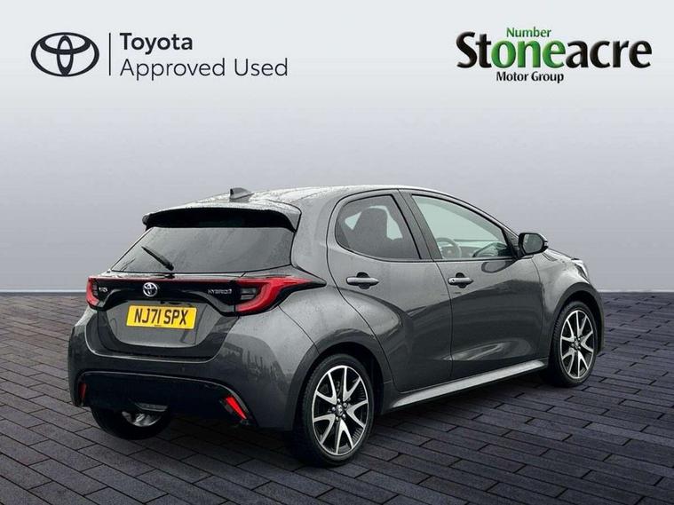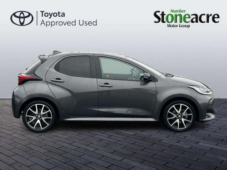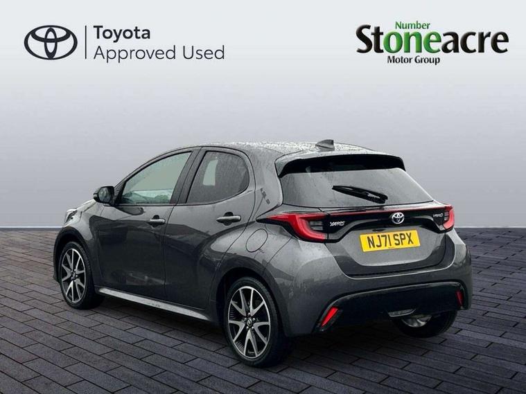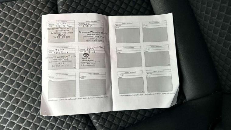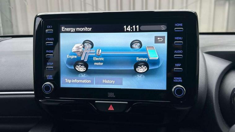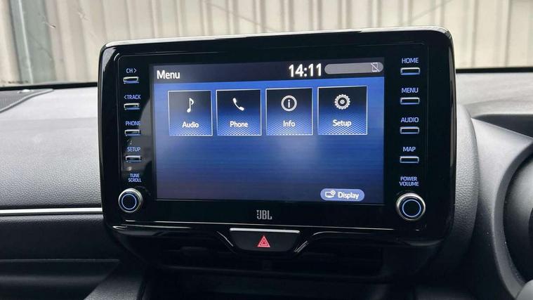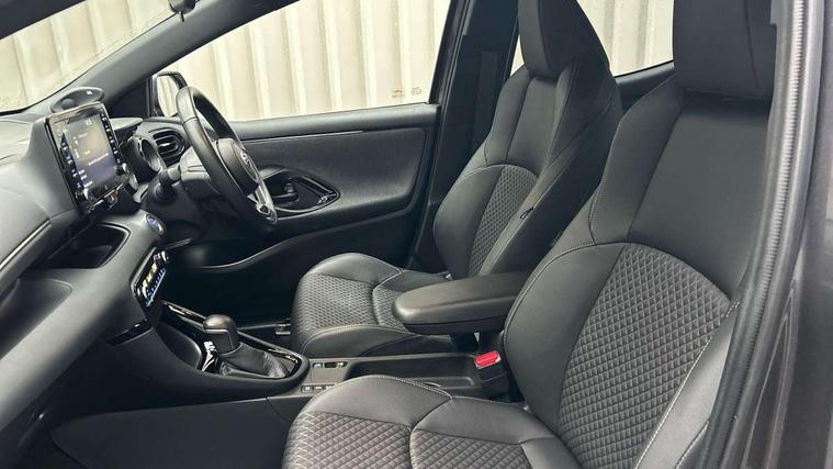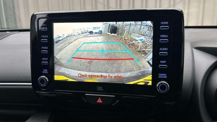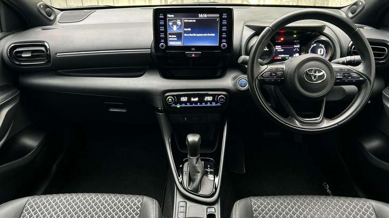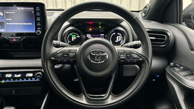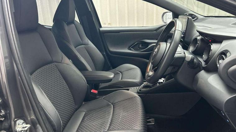Adaptive cruise control, Adjustable speed limit with speed warning, Bluetooth connectivity, Colour binocular inspired displays with digital speedometer, E-call, Electric power steering, Hybrid energy display, Multi information display switches on steering wheel, Reversing camera, Smartphone integration with Apple CarPlay and Android auto, Vehicle Stability Control (VSC), 8" Multimedia display touch screen, JBL Premium sound system with 8 speakers, Toyota Touch 2 with DAB, USB connection, Acoustic windscreen glass, Automatic headlights, Automatic windscreen wipers with rain sensor, Body coloured door mirrors, Electric adjustable heated door mirrors, Follow me home headlights, Front auto power windows with anti jam protection, Full LED rear lights, LED daytime running lights, LED front fog lights, LED Headlights, LED High mounted stop lamp, Painted front grille, Rear auto power windows with anti jam protection, Rear privacy glass, Rear side wing doors, Rear spoiler, Rear wiper, Shark fin antenna, Turning signal integrated indicators in door mirrors, 3 adjustable rear headrests, 3 spoke leather steering wheel, 60/40 split folding rear seat, Active headrests, Adjustable boot height, Coat hooks in rear grab handles, Cup holders (2 front & door), Data Communication Module (DCM) connected services, Dual zone automatic air conditioning, Fabric seat with partial synthetic leather upholstery, Front armrest, Front sport seats, Glovebox, Height adjustable driver's seat, Height adjustable passenger seat, Isofix seat fixing, Leather gearshift, Map pockets on the backs of the front seats, Pollen filter, Shopping bag hooks, Single front passenger seat, Tilt/telescopic steering column, 3 point seatbelts on all rear seats, ABS+EBD+Brake assist, Electronic parking brake, Emergency brake light system (EBS), Front passenger airbag on/off switch, Front seatbelt reminder, Hill start assist control (HAC), Rear child proof door locks, Rear seat belt reminder, Supplemental Restraint System (SRS) 8 airbags: Driver & passenger's airbags, dual side curtain airbags, side impact airbags, front centre airbag, Toyota Safety Sense 2, Precollison + Night time Pedestrian & Cyclist Detection, Lane Trace Assist, Auto High Beam, Intelligent ACC & Road Sign Assist, Tyre pressure warning system, Alarm/immobiliser, Keyless smart entry with push button start, Remote powered central double locking doors, Piano black interior trim, Soft touch instrument panel, Space saver spare wheel,