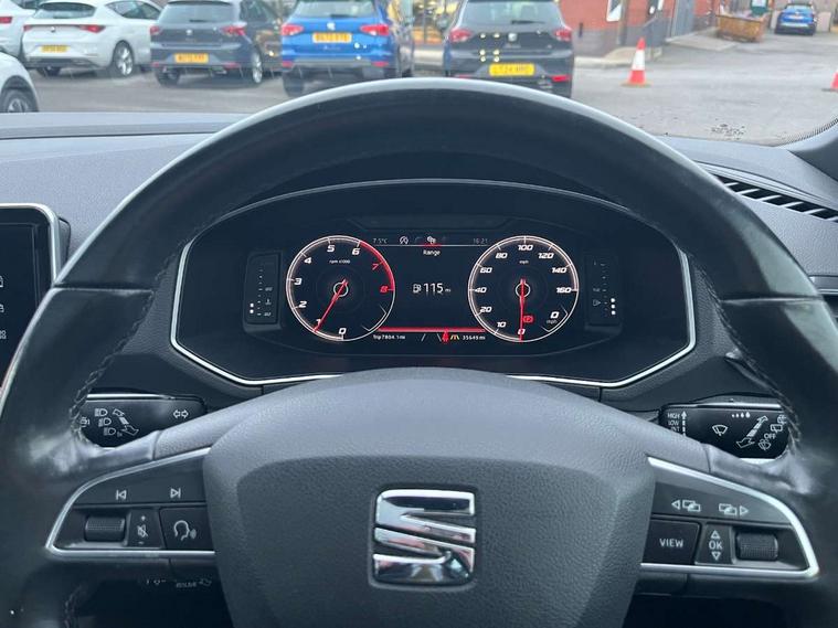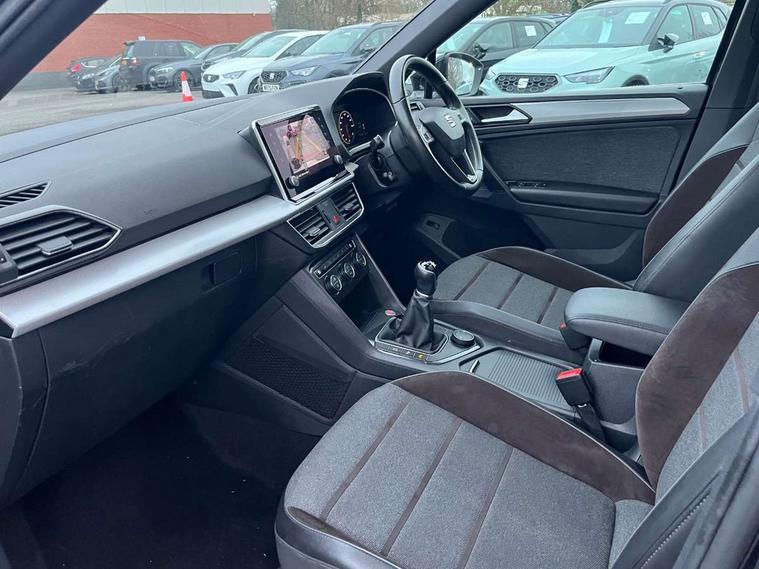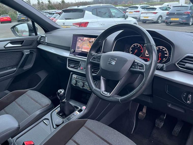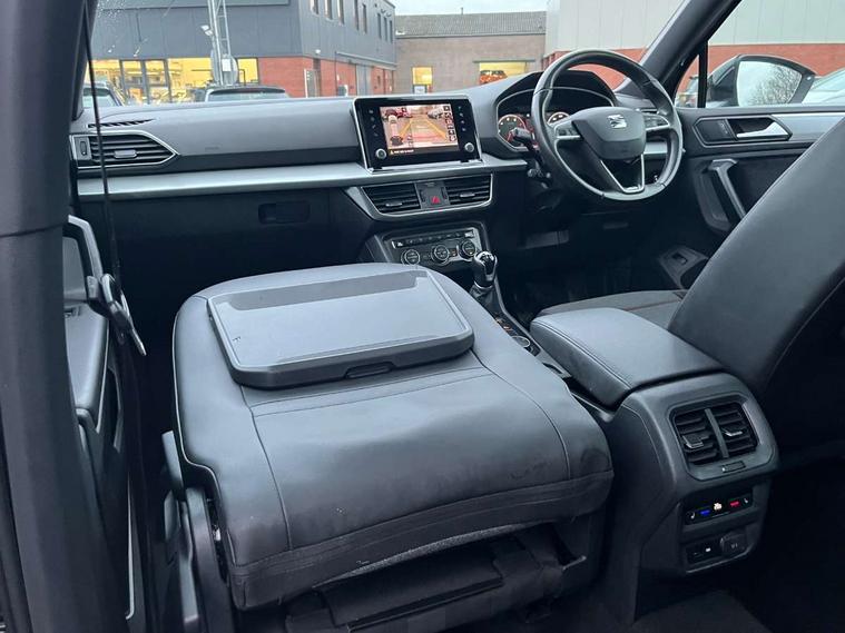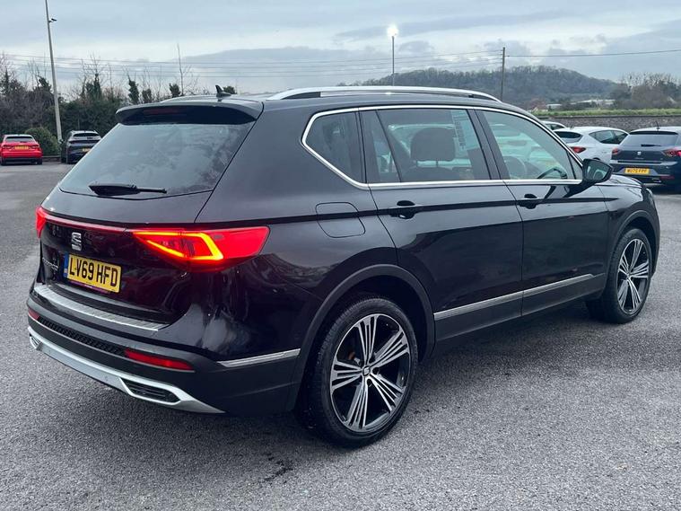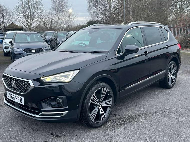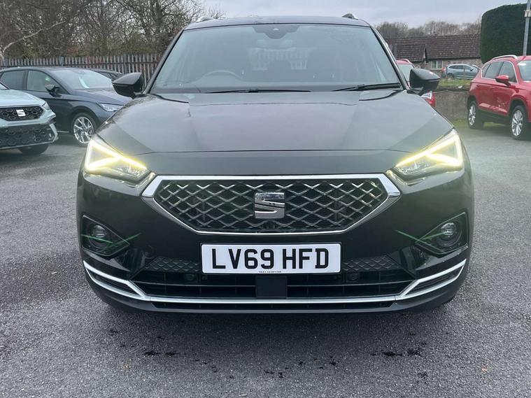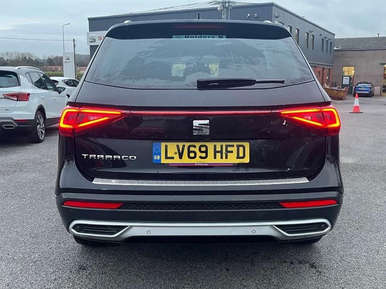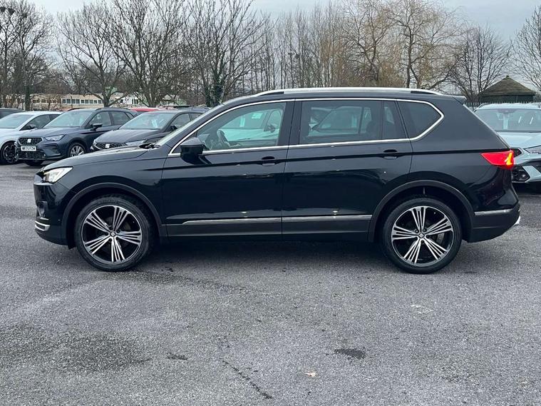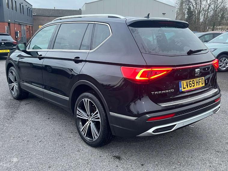 'Lights On' Reminder warning buzzer, Adaptive cruise control with speed limiter, Digital clock, Digital cockpit, e-Call (emergency call), Front assist city emergency braking and pedestrian protection, Full Link Smartphone Integration with Mirror Link, Apple Car Play, Google Android Auto, Gear recommendation indicator, Lane assist, Low fuel warning light, Outside temperature gauge, Park assist system, Rear view camera, RPM counter, SEAT Drive profile - 4 different modes, progressive steering, 4Drive versions with off-road/snow, steering response, throttle response, gear shifts, Top view camera, Trip computer, Wash water level indicator, Wireless Smartphone charger, Comfort suspension, XDS electronic differential lock, Beats audio system, Navigation system with 8" colour touchscreen with proximity sensor, 3D Map display, DAB, AM/FM Radio, 3 USB, Aux-in, 8 speakers, SD card, Auto dimming rear view mirror, Auto headlights with automatic coming and leaving home function, Automatic headlight adjustment, Body colour door mirrors and handles, Body coloured bumpers, Chrome front grille frame, Chrome roof rails, Chrome window surround, Dark tinted windows and white ambient light in front and rear door panels, Electric front/rear windows, Front halogen fog lights with cornering function, Fuel door linked to central locking, Hidden exhaust pipe, Illuminated aluminium front door sill with XCELLENCE logo, LED daytime running lights, LED headlights with lens and taillights, Panoramic sunroof includes LED ambient lights in roof, Power folding and adjustable door mirrors, Rain sensing wipers, Rear fog lights, Rear wash/wipe, 12V socket, 12V socket in front, 3 zone climate control, Ambient spot lighting and front footwell illumination, Black interior roof, Centre armrest in front with air outlet in rear, Chrome dashboard detailing, Driver and passenger sunvisor with covered and illuminated mirror, Driver/passenger lumbar adjustment, Easy fold rear seat system - second and third row, Folding table on front seat breakrests, Forward and backward adjustable seats 2nd row, Four cargo rings in the boot, Front courtesy light with front reading lights, Front cupholders, Front seat back storage pockets, Height adjustable driver's seat, Height adjustable front headrests, Height adjustable passenger seat, Illuminated boot, Instrument lighting with brightness control, ISOFIX points in outer 2nd row seats and front passenger seat with top tether anchorage points, Leather gear knob, Leather steering wheel, Leather wrapped multifunction steering wheel, Luggage compartment floor with split function, Overhead storage compartment, Rear armrest and easy back seat release mechanism from boot, Rear reading lights, Sliding boot cover, Sport seats in alcantara, Under front seats storage tray, Driving assistance and safety pack - Tarraco, Winter pack - Tarraco, Active front head restraints, Anti-lock brakes, Drivers knee airbag, Electronic parking brake with auto hold, Electronic stability control, Front passenger airbag deactivation, Front side airbags, Hill hold control, Seatbelt reminders for all seats, Tiredness recognition system, Traction control, Two curtain airbags, Tyre pressure monitoring system, Alarm, Keyless enter and go with electric tailgate with virtual pedal, Locking wheel bolts, Power locking and remote control with two foldable keys and opening boot selector, 20" Supreme machined alloy wheels 37/1, Tool kit,