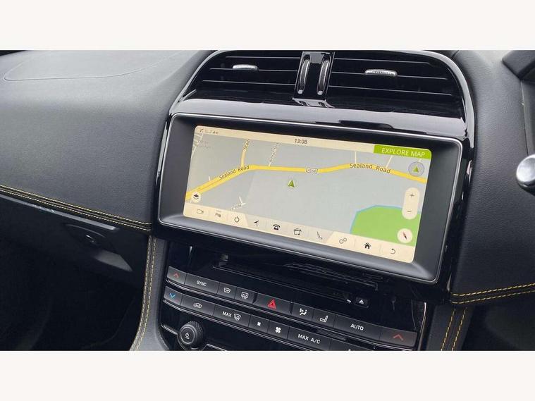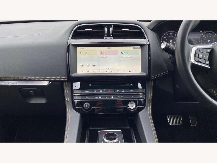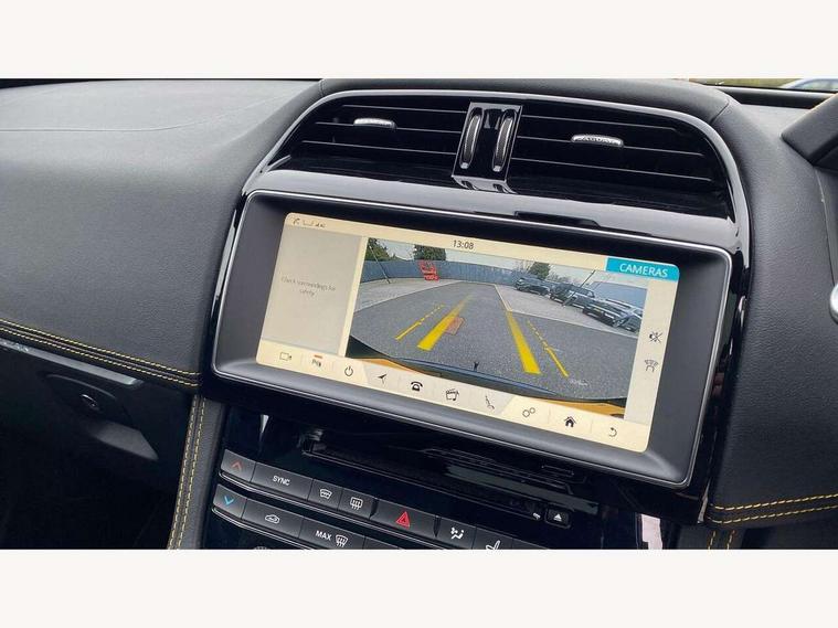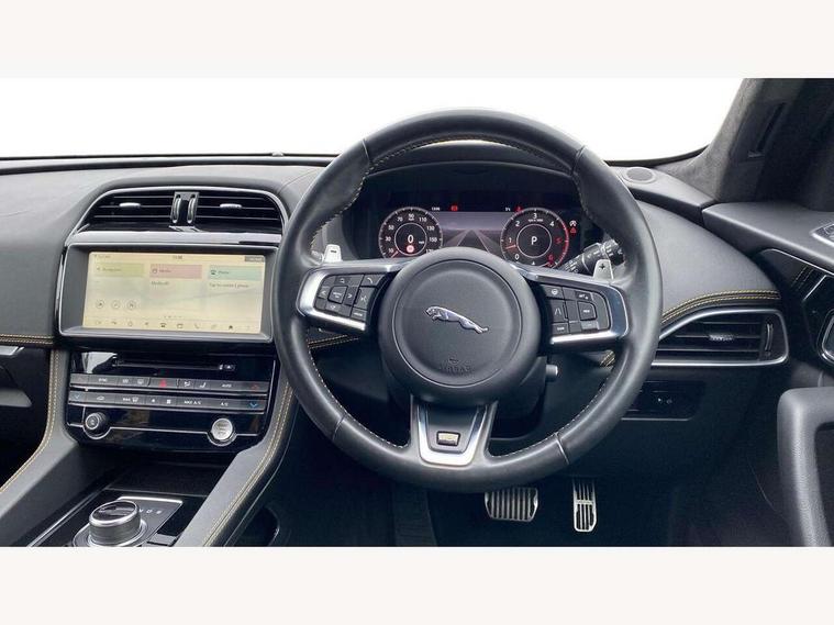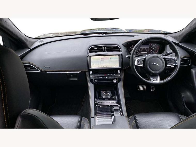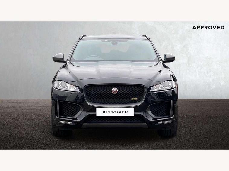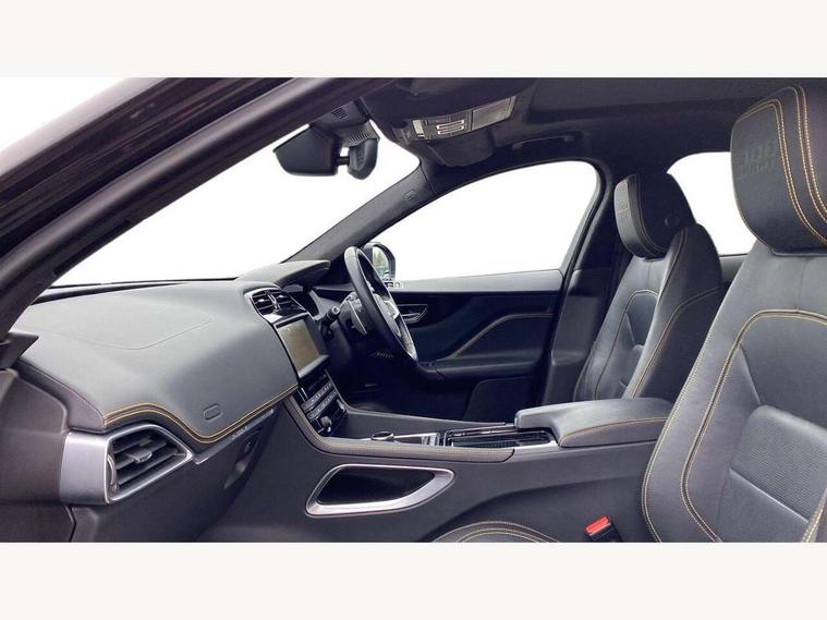 Android Auto, Apple car play, Driver condition monitor, Eco driving style assistant, Electric power assisted steering, InControl remote premium, Interactive Driver display instrument cluster, JaguarDrive control, Lane departure warning system, Lane keep assist with driver alert control, Outside temperature gauge, Pro services and wifi hotspot, Push button starter, Rotary shifter, Service interval indicator, Speed proportional steering, Start up sequence with movement in dials and lighting, Traffic sign recognition with adaptive speed limiter, Trip computer, Voice control system, 8 speed automatic transmission, All terrain progress control, All Wheel Drive (AWD), Open differential with torque vectoring by braking, AM/FM radio, Bluetooth connectivity including audio streaming, CD/DVD player, DAB Radio (Digital Audio Broadcasting), Dynamic volume control, InControl apps, InControl protect, 3 flash lane change indicators, 300 Sport badge, Antenna roof pod in gloss black, Approach Illumination, Auto dimming rear view mirror, Automatic headlights, Body coloured 300 Sport door claddings with dark satin grey finishers, Dark satin grey mirror caps, Dark satin grey side vents, Dark satin grey side window surround, Dual tailpipes with 84mm finishers, Electric folding, auto dimming, heated door mirrors with memory + approach lights, Electric front/rear windows with one touch/auto up/down, F-Pace badge, Front fog lights, Gloss black grille with dark satin grey surround, Gloss black roof rails, Green tinted heat insulating glass, Headlight power wash, Heated front windscreen, Heated rear window with timer, Heated washer jets, LED tail lights, Metallic paint, R-sport body kit, Rain sensor windscreen wipers, Rear fog lights, Rear metal tread plates, Rear wiper, S front bumper with dark satin grey inserts, S rear bumper with dark satin grey valance, Trailer stability assist, Variable front intermittent wipers, 12V power point front, 3 rear headrests, 300 Sport branded soft grain leather steering wheel, 4 way electric lumbar adjust for front seats, 40:20:40 split folding rear bench seat, Aluminium gear shift paddles, Bright metal foot pedals, Centre armrest console, Door sill tread plates, Electrically adjustable steering column, Fold flat front seats, Front centre armrest with storage compartment, Front headrests with 300 Sport embossing, Glovebox finisher with jaguar script, Heated steering wheel, Hooks in loadspace, Illuminated glovebox, Illuminated luggage compartment, Interior front door handles with separate locking switches, ISOFIX on outer rear seats, Jaguar sense, Luggage tie downs in loadspace, Multifunction steering wheel, Overhead lighting console, Passive front head restraints, Perforated grained leather upholstery with yellow contrast stitching, Rear air vents, Rear armrest with twin cupholders, Rear centre headrest, Reversible boot floor, Sports carpet mats, Sunvisors with illuminated vanity mirrors, Twin front cupholders with cover, 300 Sport black brake calipers, 350mm front brakes, 3x3 point rear seatbelts, ABS, All surface progress control (ASPC), Anti-whiplash front headrests, Autonomous emergency braking (AEB) with forward facing camera, Brake pad warning light, Driver/Front Passenger airbags, DSC - Dynamic Stability Control, Electronic parking brake, Front and rear curtain airbags, Front and rear seatbelt reminder, Front passenger seat occupancy sensor, Front side airbags, Hill launch assist, Power operated child locks, Torque vectoring brake, Traction control, Tyre pressure monitoring system, Immobiliser, Keyless start, Perimeter alarm, Remote central locking, Valet mode, Luxtec door trim, Luxtec wrapped instrument panel topper with yellow contrast stitching, Satin chrome centre console storage surround finishers, Satin chrome touchscreen surround,