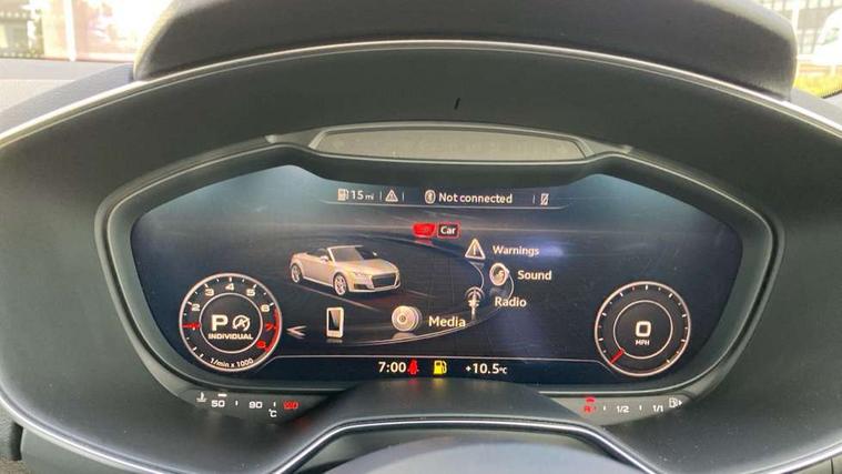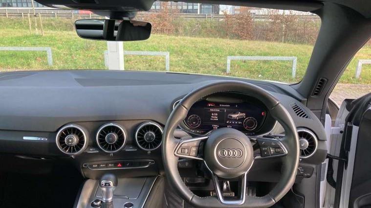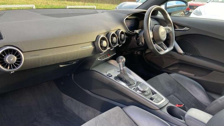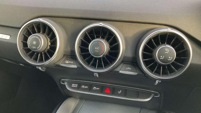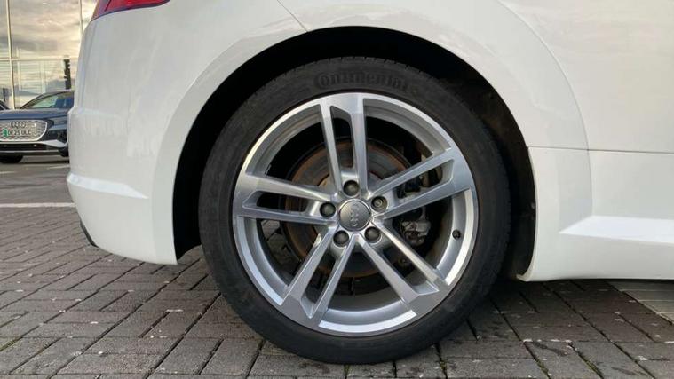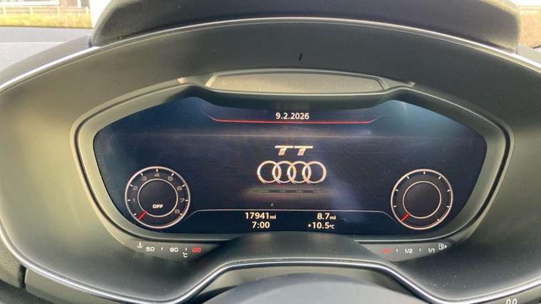 Audi drive select with 4 Pre configured modes, Audi smartphone interface, Audi virtual cockpit - 12.3" high-resolution LCD display with fully customisable instrument cluster, Cruise control + speed limiter, Emergency call service, MMI touch panel, Mobile phone preparation with bluetooth interface, Progressive power assisted steering, Seat belt microphone, Service interval indicator, Start/Stop system with energy recuperation, TP memo, Sports suspension, AM/FM radio, Bluetooth audio streaming, DAB Digital radio, MMI Radio with CD player and SD/XC card slot, Auto dimming rear view mirror, Body colour bumpers, Body colour door mirrors, Electric folding door mirrors, Electric front windows, Electrically adjustable and heated door mirrors with integrated LED side indicators, Front fog lights, Fully automatic acoustic hood, Green tinted heat insulating glass, LED 3rd brake light, Light and rain sensors, Rear boot, Retractable rear boot spoiler, Sunband for windscreen, Xenon headlights with LED daytime running lights with automatic headline range control + LED rear lights, brake lights and rear indicators, 12V socket, 3 spoke flat bottomed high multi-function leather sport steering wheel with gearshift paddles, Alcantara/Leather upholstery includes seat centre panels, door trim inserts in black Alcantara with side bolsters, head restraints in black leather, Aluminium door sill trims, Front centre armrest, Front passenger seat, Front sports seats, Heated front seats, Height/reach adjust steering wheel, Integrated head restraints, ISOFIX child seat mounting for front passenger seat with airbag deactivation, Manual adjustment of seat height, fore/aft position, seat angle, seat depth and backrest angle, Non smoking pack - TT/TT RS, 3 point front seat belts, ABS, ASR traction control, Curtain airbags, Driver and front passenger airbag with front passenger airbag deactivation, EDL traction control, Electromechanical parking brake, ESP, First aid kit, Front side airbags, Hill hold assist, Roll over bars, Seatbelt warning, Tyre pressure loss indicator, Warning triangle, Anti theft alarm, Anti theft wheel bolts, Immobiliser, Keyless Go, Remote central locking, Aluminium design inlays, Tool kit, Tyre repair kit,